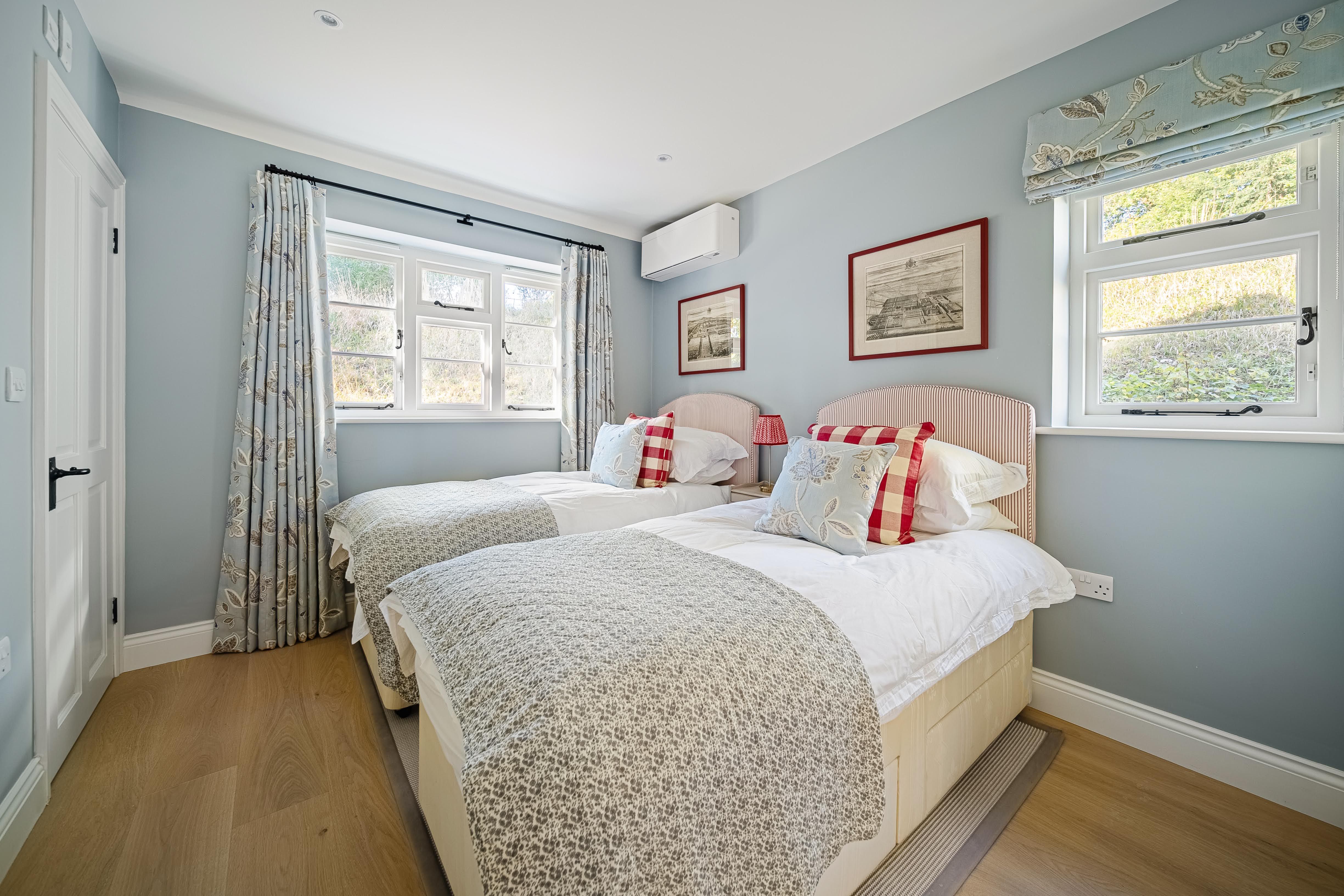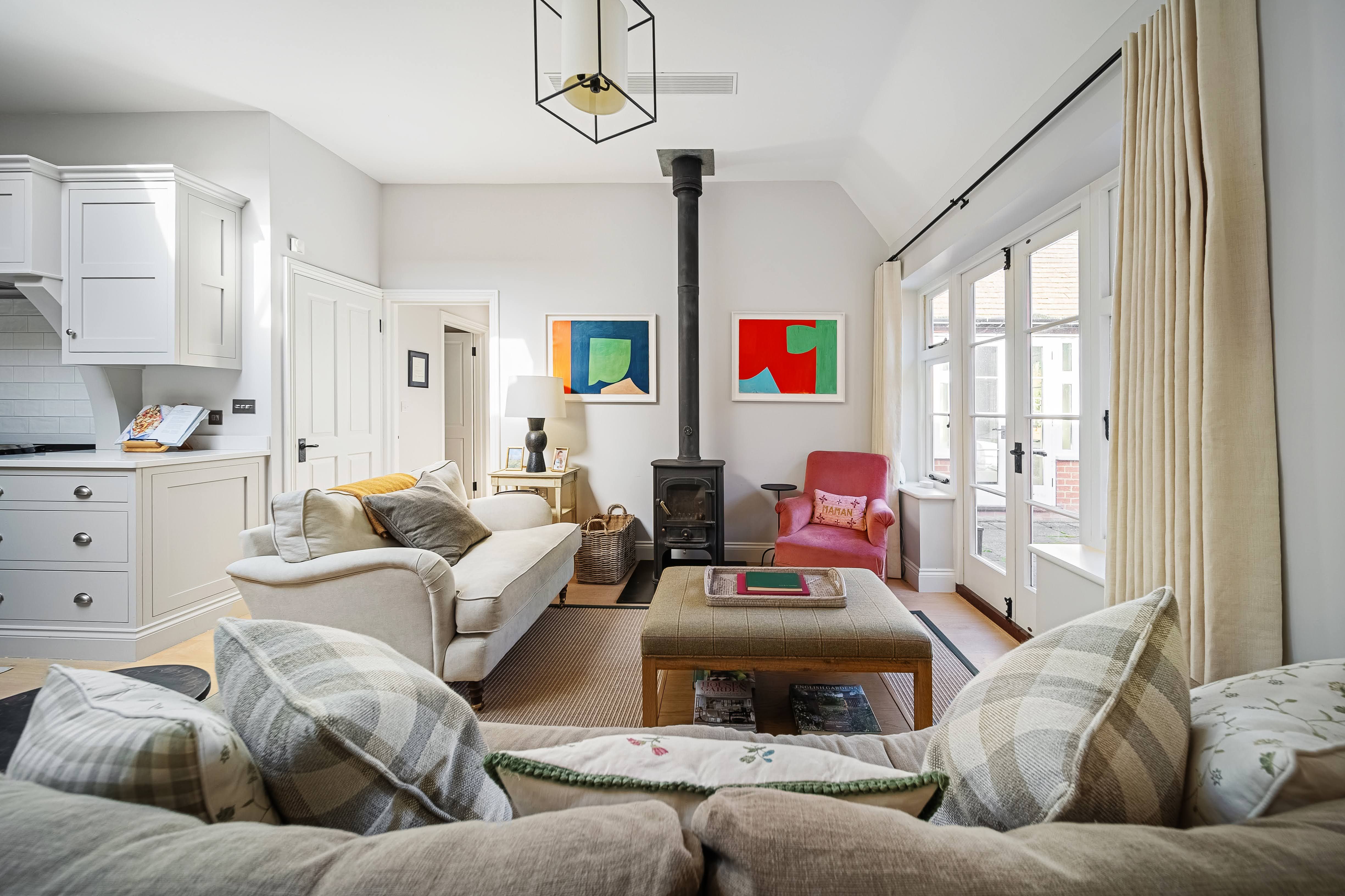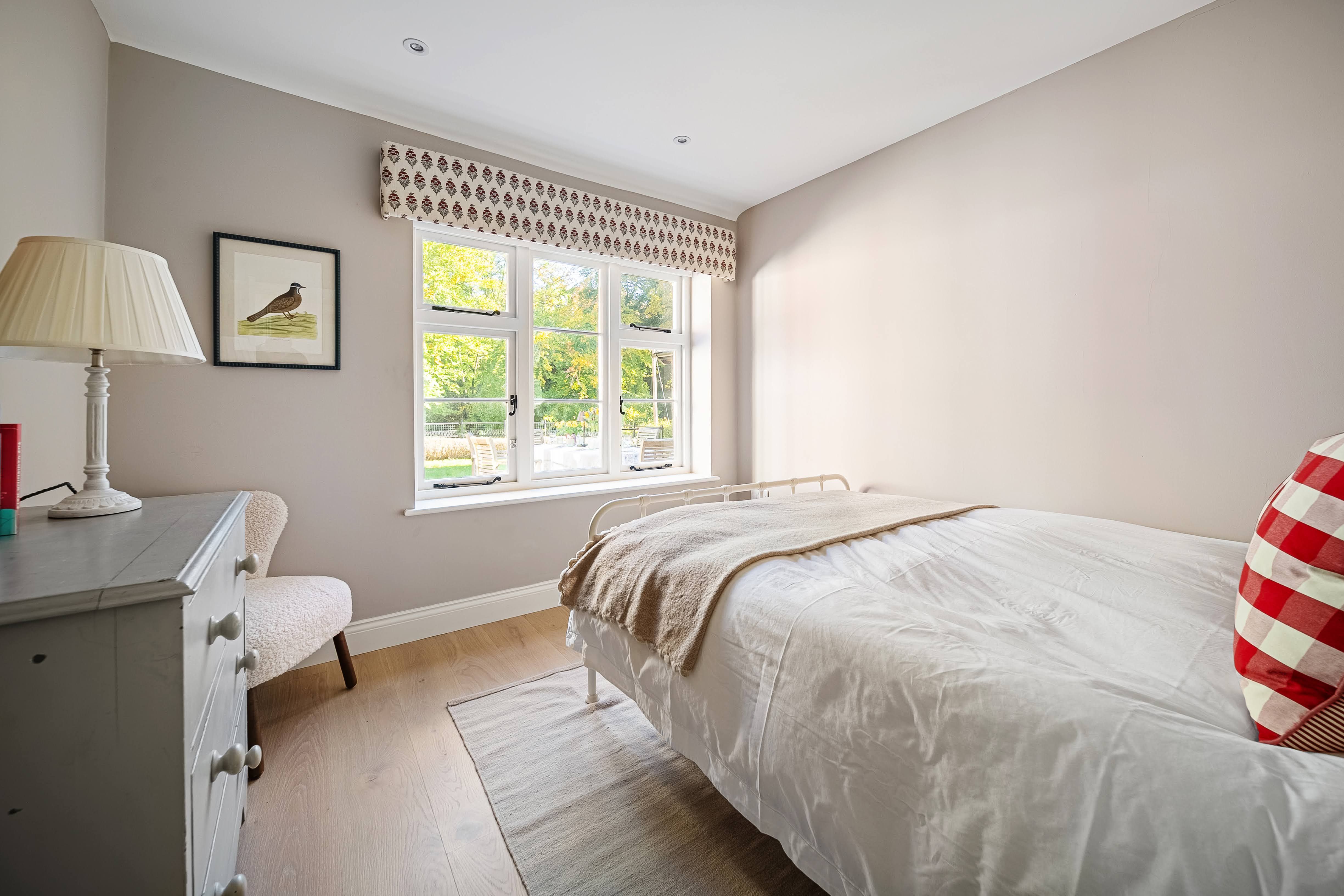 From the outside, this home appears to be a traditional country cottage. It’s nestled between rolling fields in the Chilterns AONB, just three minutes from Henley-on-Thames – easily reached after an amble through a sheep field. Positioned on just over an acre of private grounds, you'll be treated to stunning countryside views here. Idyllic doesn't even begin to describe it, though there are plenty of surprises inside, too. The interior is light-filled, stylish, and equipped with all the modern amenities you could ask for – including underfloor heating to keep you cosy. We think it's a great option for families, as one of the bedrooms can be set up with a cot for little ones or with twin beds to accommodate guests seven and eight.