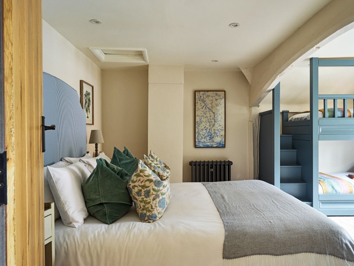 This characterful home feels as if it’s straight out of a period drama, with exposed beams and shopfront windows. That’s not to say it’s old-fashioned — the interiors are bright and airy, more country chic than dingy pub. Though if it’s pints you’re after, the Bull next door is a great spot for a lazy afternoon. Or settle into the private courtyard, where there are no queues for the next round. A mix of double and twin rooms, with the cute addition of bunk beds, makes this place ideal for families. Just note that if you’re hitting maximum capacity, two of you will need to cosy up on the sofa bed in the living room — but if you ask us, it’s all part of the fun.