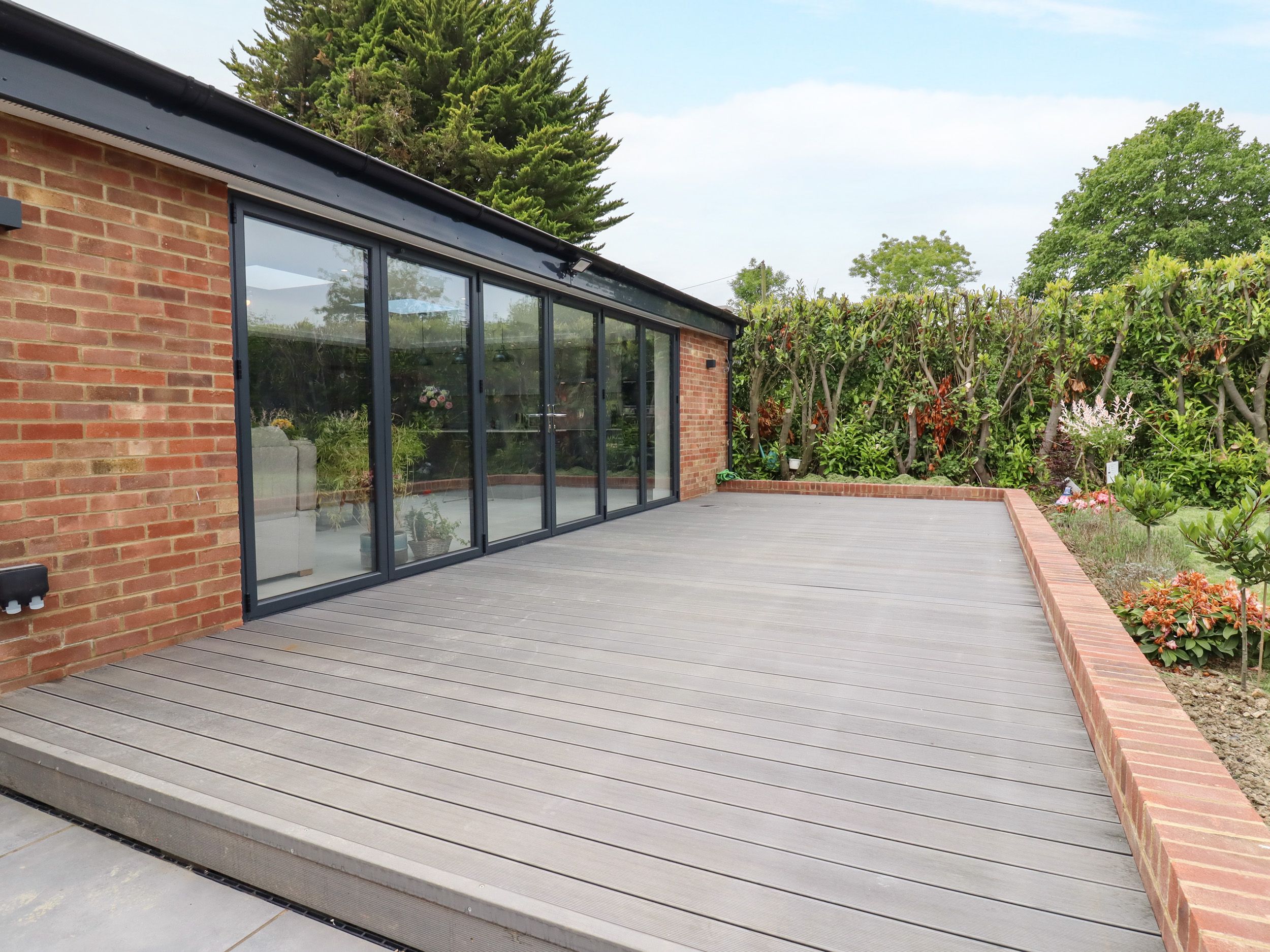 Holiday home The living areas in the property consist of an open-plan living space with kitchen equipped with electric oven and hob, microwave and fridge/freezer, a dining area with seating for eight guests and a sitting area with Smart TV. The bedrooms consist of a ground-floor double with en-suite shower room, a double with en-suite shower room, a double and a twin, along with a bathroom. Outside there is an enclosed rear garden with lawn, patio and furniture, as well as off-road parking for four cars. Within 0.3 miles you will find a shop and within 0.1 miles, a pub. Sorry, no smoking. WiFi, fuel, power bed linen and towels are all included in the price. Kite View Cottage is a lovely base from which to begin your adventure in the South of England. Please enquire with the reservation team for a smaller group, as the owner will be able to offer a discount. Please note: Hen/Stag/or Similar parties are not allowed. Please note; one well-behaved pet allowed with pet supplement of £50.