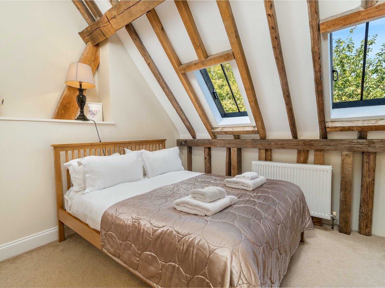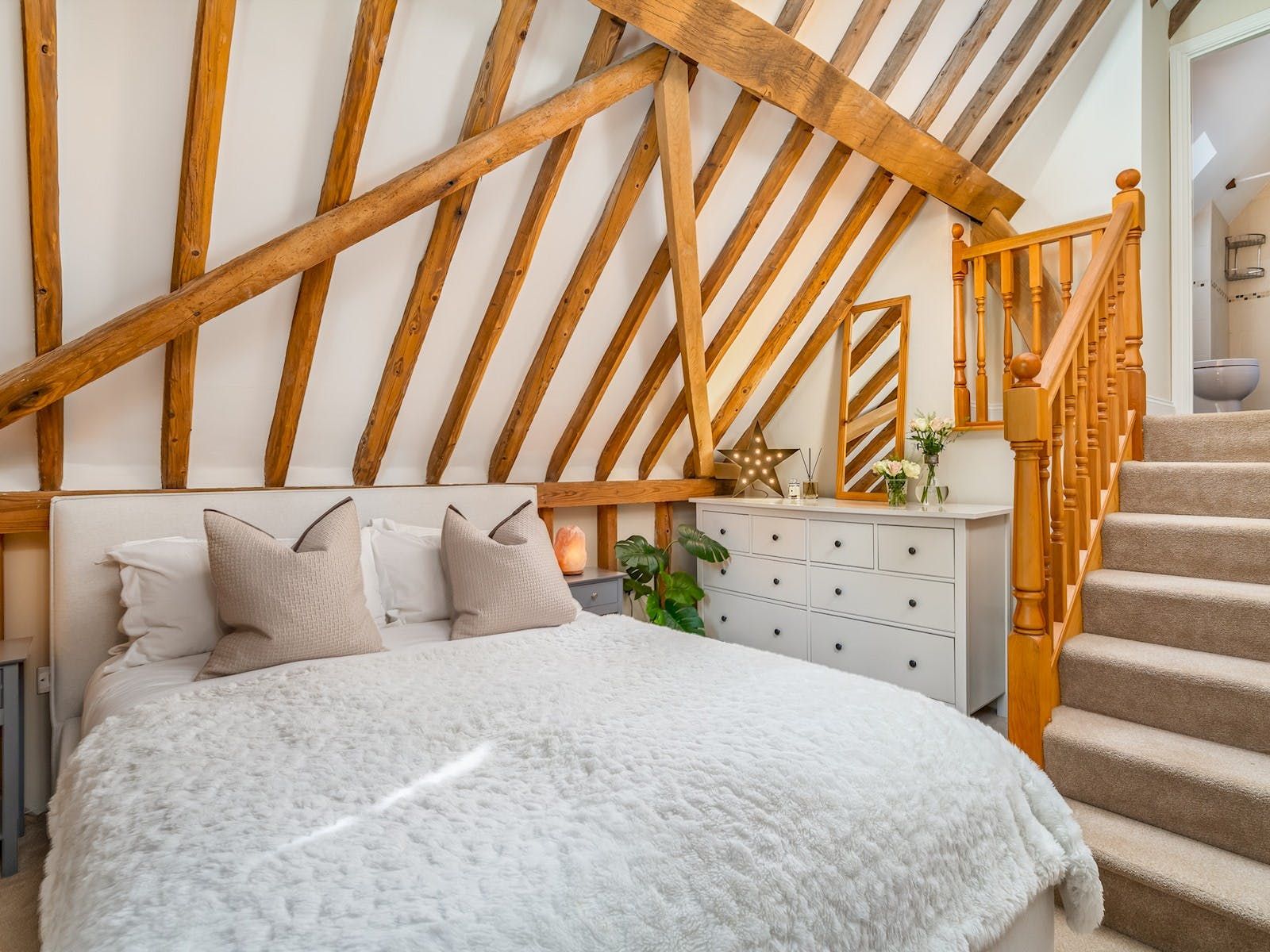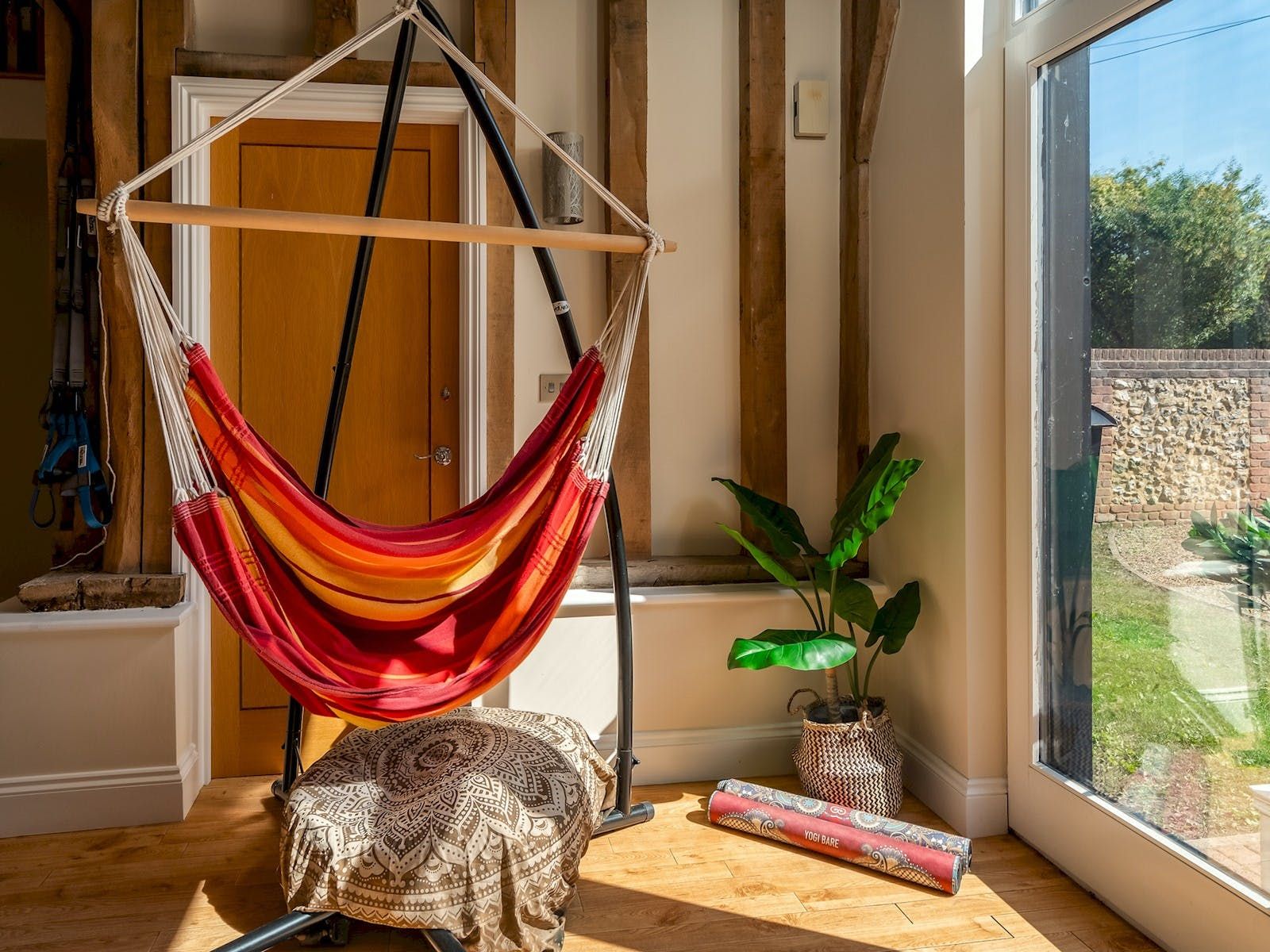 Dating back to the 1800s, this Grade II-listed barn is now a comfortable home-from-home. Underfloor heating keeps toes warm for visits during the cooler months, and the indoor climbing wall and gym equipment will keep active types occupied. When the sun does shine, there’s a dining table and chairs on the decking for alfresco lunches. The Chiltern Hills are on the doorstep, and the Black Lion pub is a fifteen-minute walk away. If you’d like to swap the countryside for some hustle and bustle, High Wycombe is reached in less than twenty minutes by car.