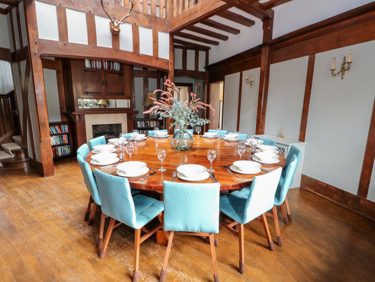 Six bedrooms: 1 x super-king-size (zip/link, can be made into twins on request) with sofa bed and en-suite walk-in shower, basin and WC, 1 x super-king-size (zip/link, can be made into twins on request) with en-suite walk-in shower, separate slipper bath, basin and WC, 2 x super-king-size (zip/link, can be made into twins on request), 1 x ground-floor double bedroom with en-suite walk-in shower, basin and WC, 1 x twin. Bathroom with walk-in shower, separate freestanding bath, double basin and WC. Cloakroom with basin and WC. Kitchen with woodburning stove. Dining room with gas fire. Sitting room with gas fire and slide to basement. Lower-ground-floor basement with cinema room. Conservatory with air hockey, pool and table tennis "