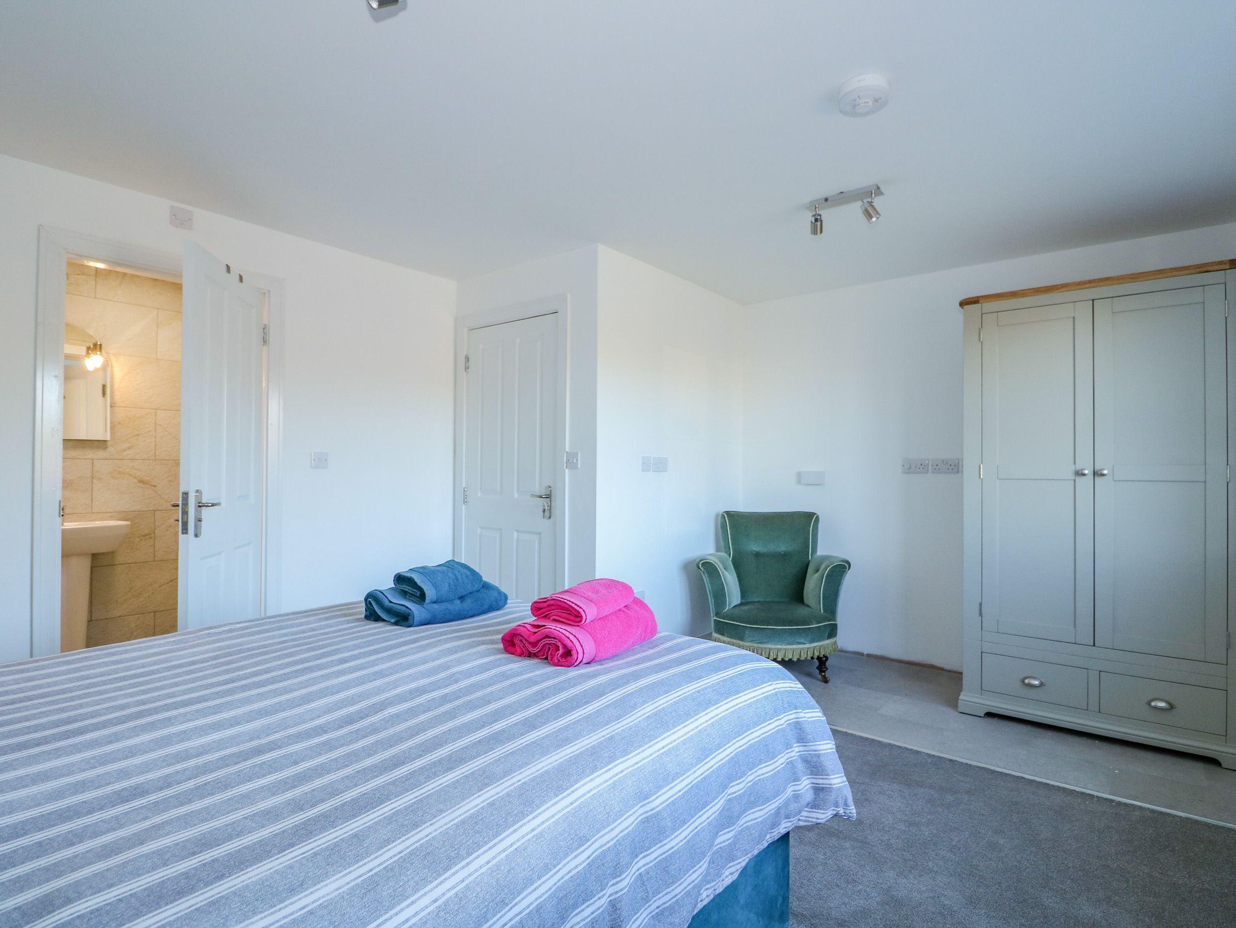 Accomodation Details Single-storey. Three bedrooms: 2 x king-size with en-suite wetroom with shower, basin, heated towel rail and WC, 1 x twin (zip/link, can be super-king-size on request) with en-suite walk-in shower, basin and WC. Open-plan living space with kitchen, dining and sitting area