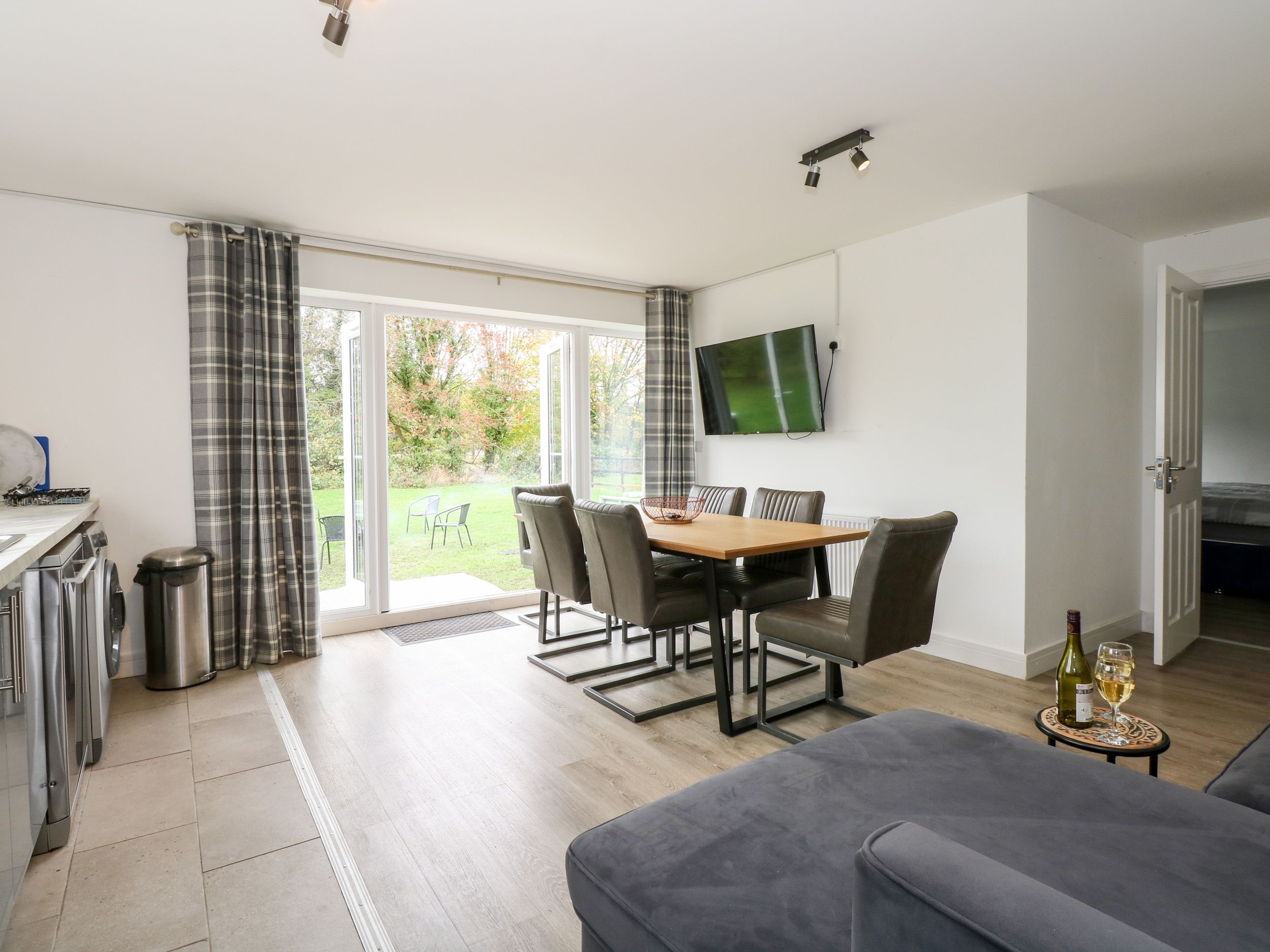 Holiday home This single-storey property consists of an open-plan living space with an electric oven and hob, microwave, fridge/freezer, washing machine, dishwasher, dining seating for four and a sitting area with Smart TV. There are Three bedrooms: 2 x king-size with en-suite wetroom with shower, basin, heated towel rail and WC, 1 x twin (zip/link, can be super-king-size on request) with en-suite walk-in shower, basin and WC.. Outside, there is a large garden with furniture and off-road parking. WiFi, fuel, power, bed linen and towels are all included in the price. There is a highchair available, and two dogs are welcome. Sorry, smoking is not permitted. Within 1.8 miles there is a shop and within 0.3 miles a pub. For a rural break like no other, getaway to The Apple Shed. Please note: This is a working farm so there may be some farm noise and there might be a gardener close-by.