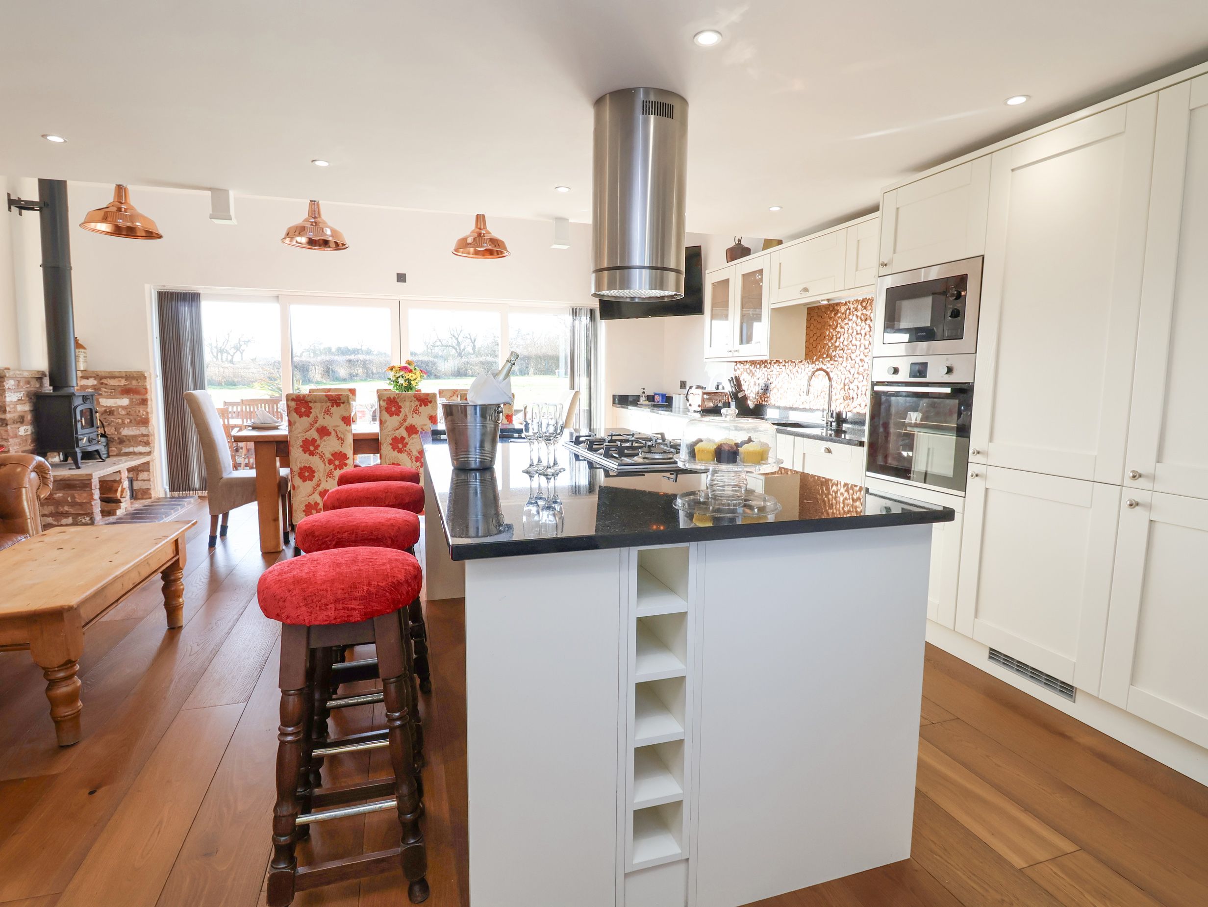 This is the best large accommodation I have ever stayed at, gorgeous open plan kitchen with great views over the expansive, manicured lawns, comfy beds, quiet location, plenty of fluffy bath towels, great sound system.