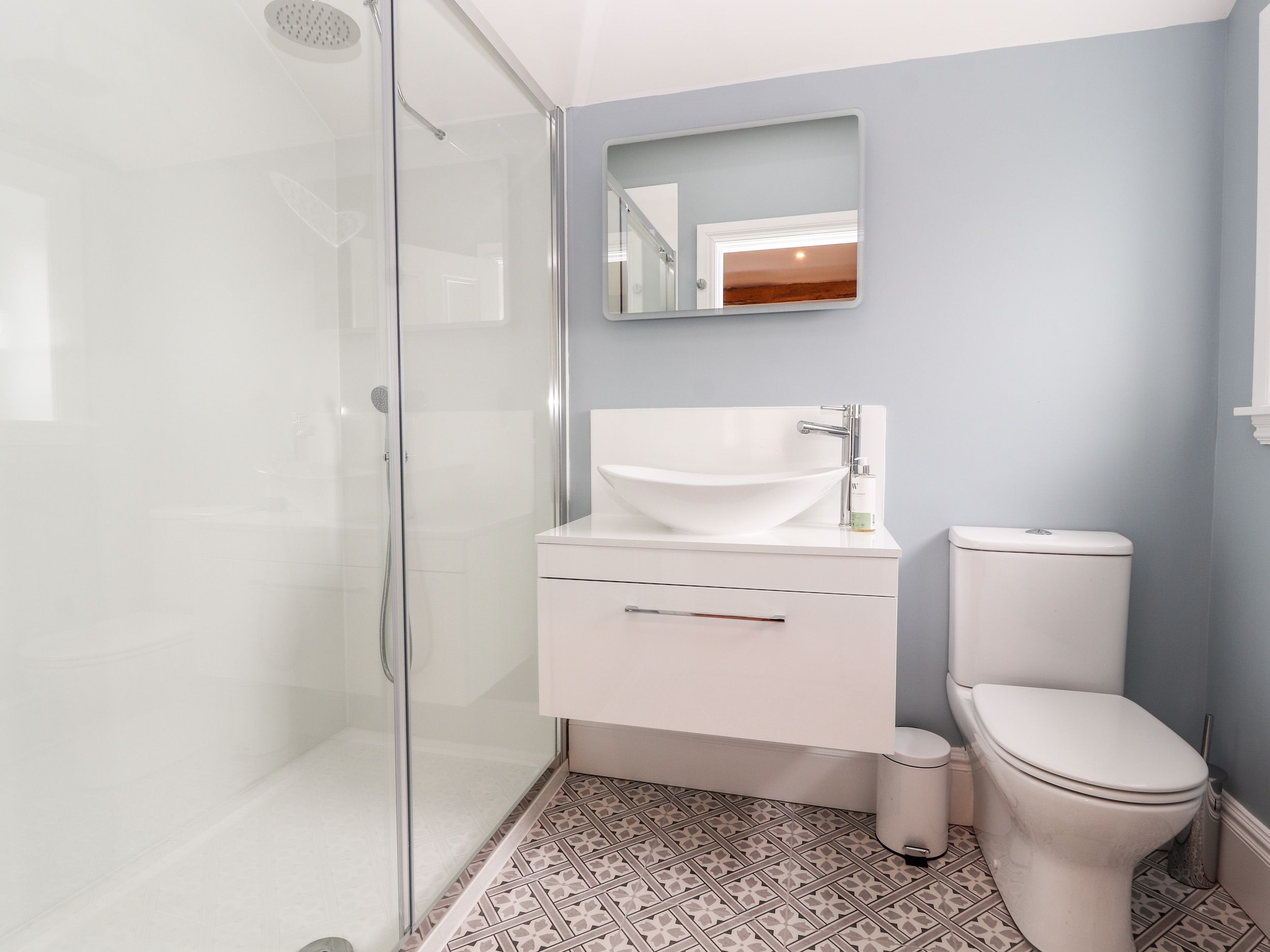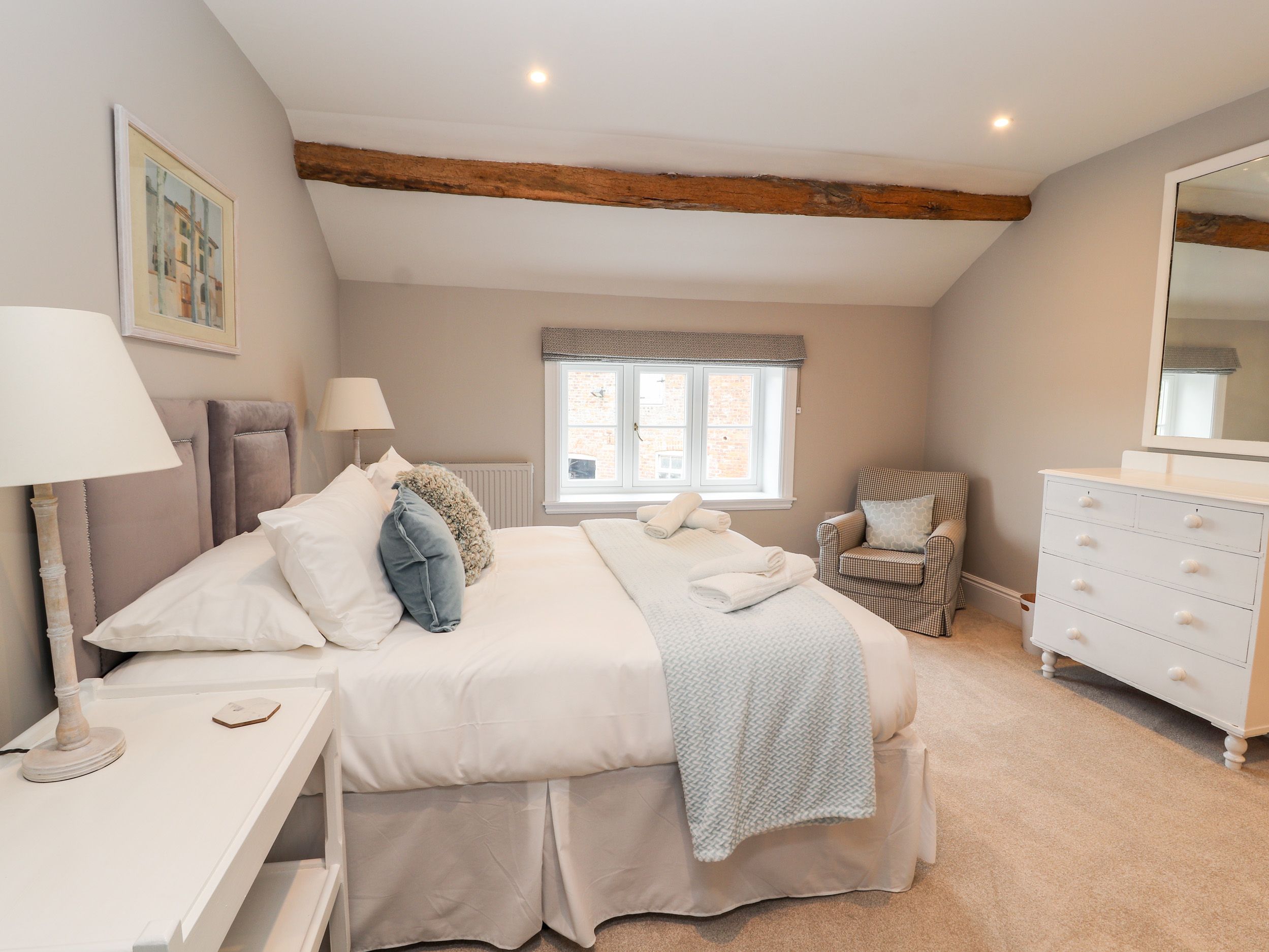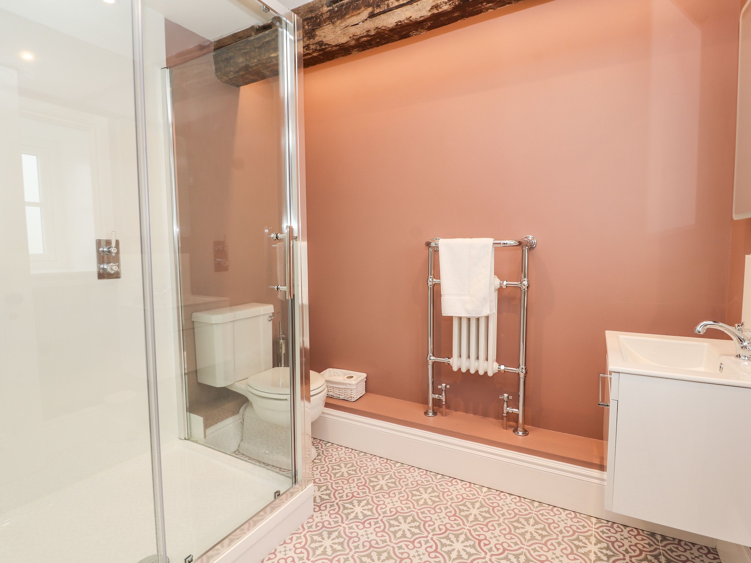 Accomodation Details Five bedrooms: 1 x king-size with TV and en-suite bath, handheld shower, walk-in shower, double sink, heated towel rail and WC, 1 x super-king-size with en-suite shower, basin and WC, 1 x ground-floor super-king-size with en-suite shower, basin and WC, 1 x king sized bed (zip/link can be made twin on request) with en-suite shower, basin and WC, 1 x twin. Bathroom with P-shaped bath, shower over, basin and WC. Cloakroom with basin and WC. Kitchen/diner. First-floor utility cupboard. Living/dining room with woodburning stove. Snug. Bar area