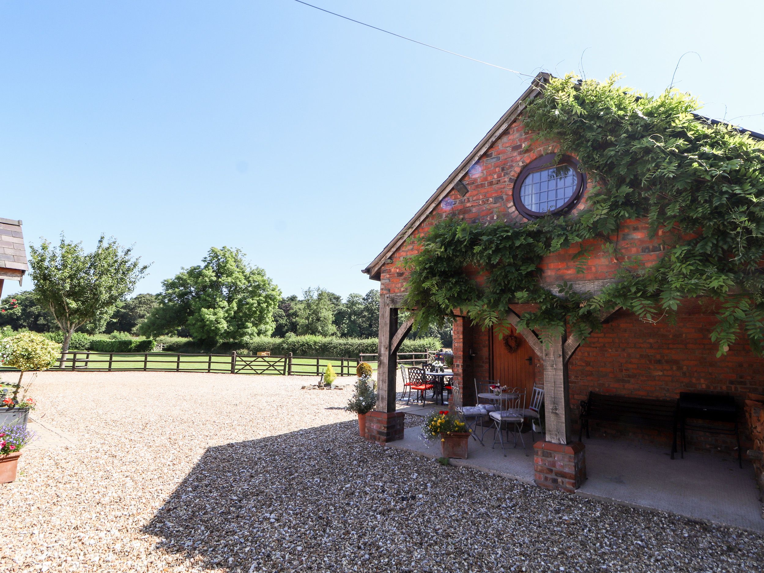 Holiday home Honeysuckle Farmhouse is a delightful cottage, situated near the village of Tarporley. Inside, you will find two bedrooms, comprising of a king size bedroom and a twin bedroom. You will also find a bathroom, complete with a bath, shower over bath, basin and WC. Additional rooms include a cosy sitting room and a well-equipped kitchen with a formal dining space. plus a conservatory with furniture. Outside, guests are welcome to use the owner’s 15 acres of paddock and horse stabling, as well as off-road parking. All in all, Honeysuckle Farmhouse is a cosy property, perfect for a family getaway. Note: Horse stabling and owner's honey is available on request. Note: Bathroom has sloping ceilings and height restriction over shower. Please note this property can only accept 2 guests and can only accept adults. Note: The ceiling in the twin bedroom is very low.