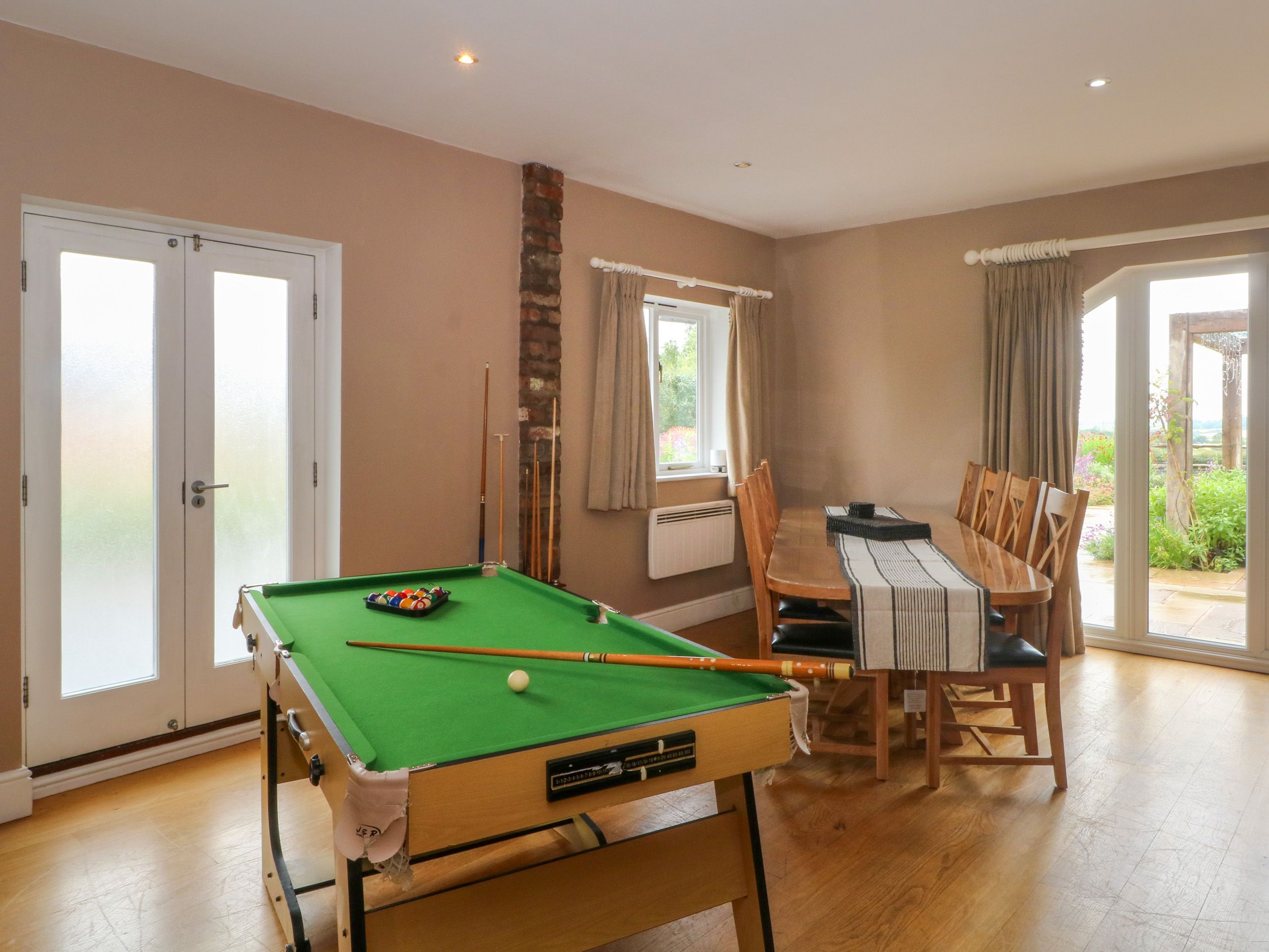 Holiday home Hillside House is a detached cottage housing an open-plan living space. Appliances include an electric oven and hob, microwave, fridge with ice box, woodburning stove, pool table, and Smart TV. Washing Machine and Dishwasher provided. Inflatable Hot Tub available at property. The bedrooms include three bedrooms: 1 x double with en-suite shower, basin and WC, 1 x family room with 4 singles beds and 1 ground-floor bedroom with 2 x single beds and 1 x double bed, served by a shower room. There is also a double sofa bed in the living area. Outside there is a patio with furniture and ample off-road parking. Within 0.8 miles there is a shop and pub and up too four pets are welcome, but sorry, there is no smoking. WiFi, fuel, power, bed linen and towels are all included in the price. EV charging available, please pay the owner direct. Hillside House is a wonderful retreat to Cheshire, whatever time of year.