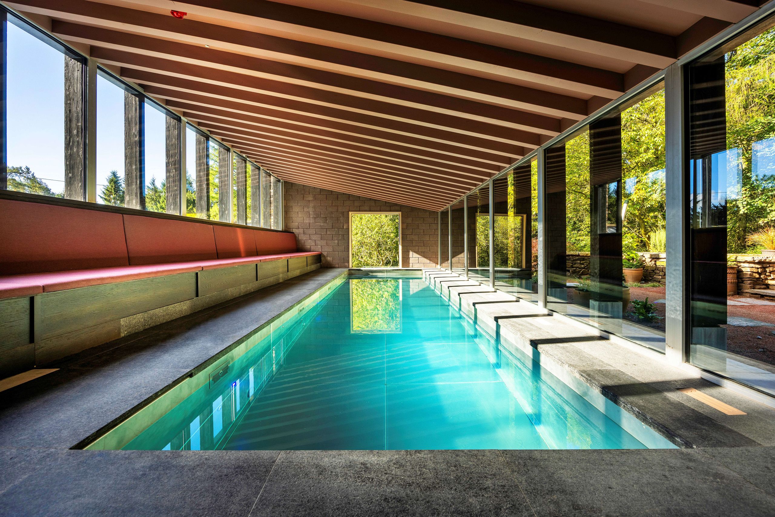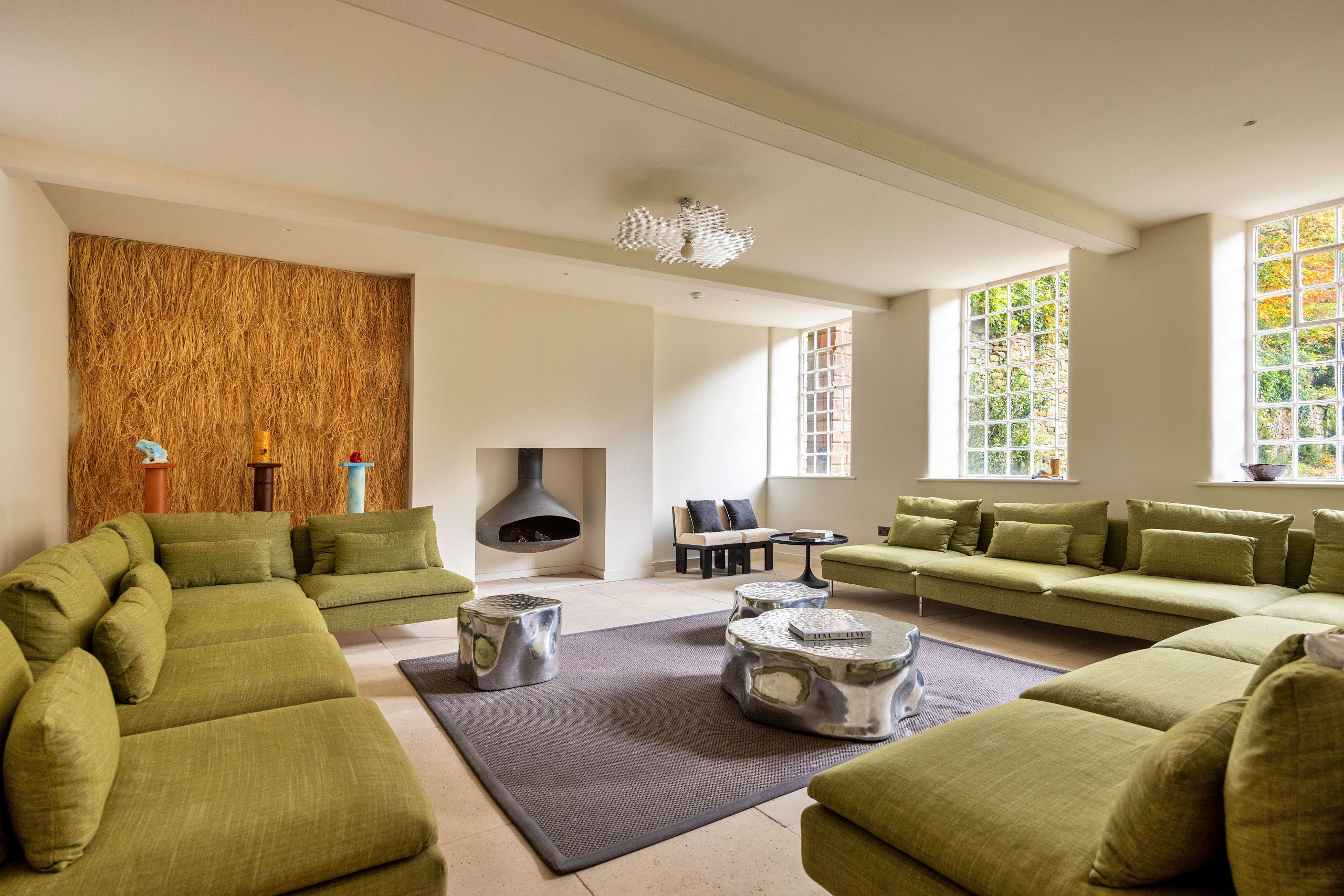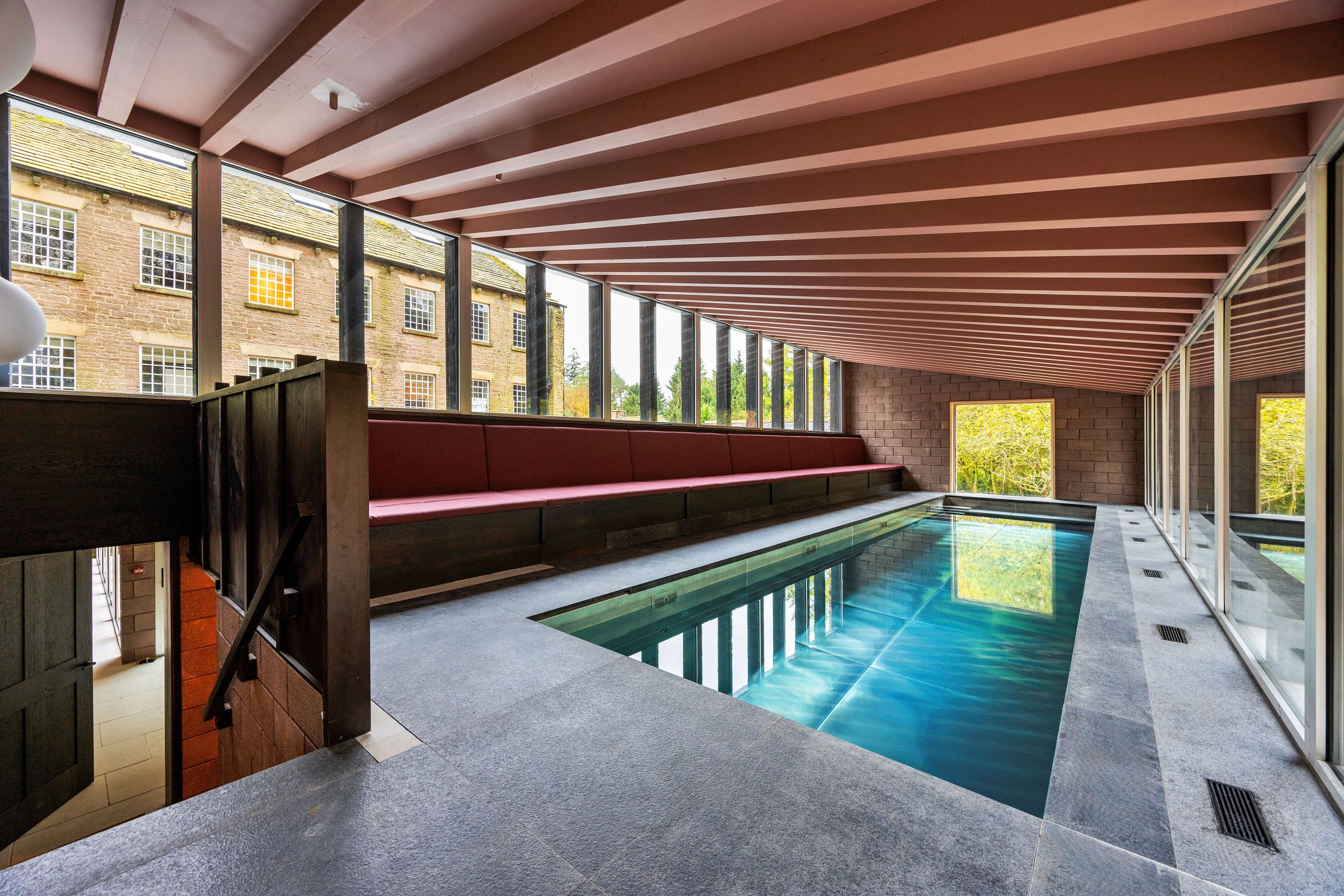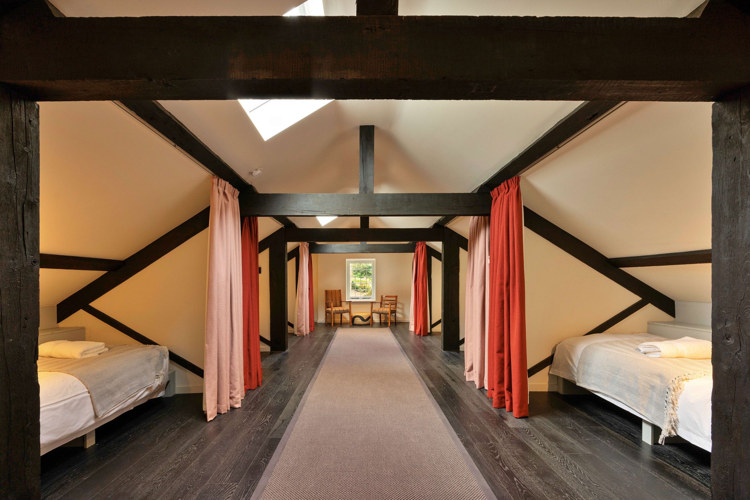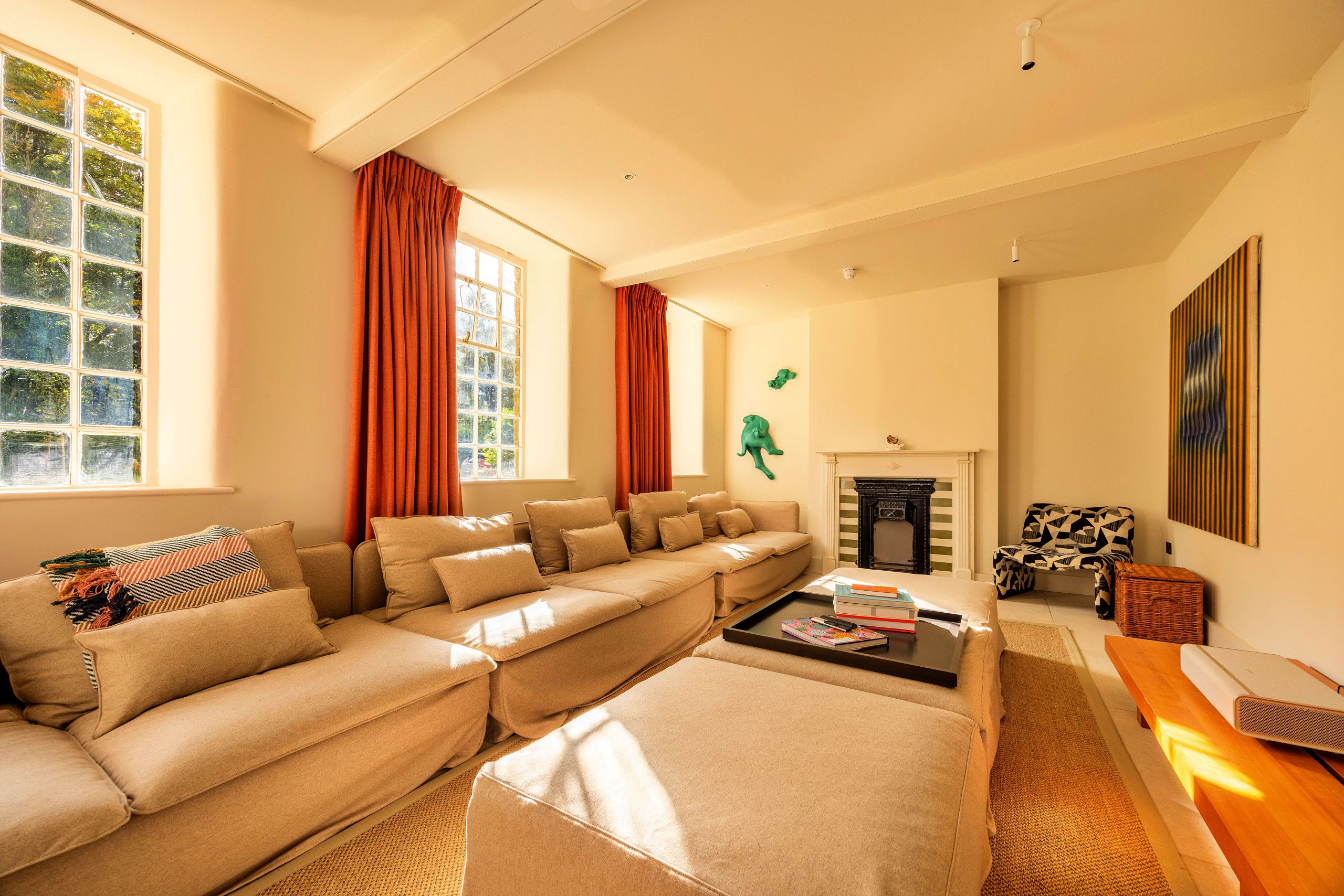In a secluded setting amid the valleys of the Peak District, this restored historic home offers a luxurious and unique stay for a large group, whether for a co-working retreat or a family reunion. Up to thirty guests can be accommodated, with ten sleeping in the curtained single beds in the attic room. You’ll be based in the idyllic village of Wildboarclough, with the River Dane surrounding the home on three sides – is there anything better than drifting off to sleep to the sound of rippling water? With wood-fired hot tubs, an indoor pool, and pizza ovens, you’ll have plenty to keep you entertained here.