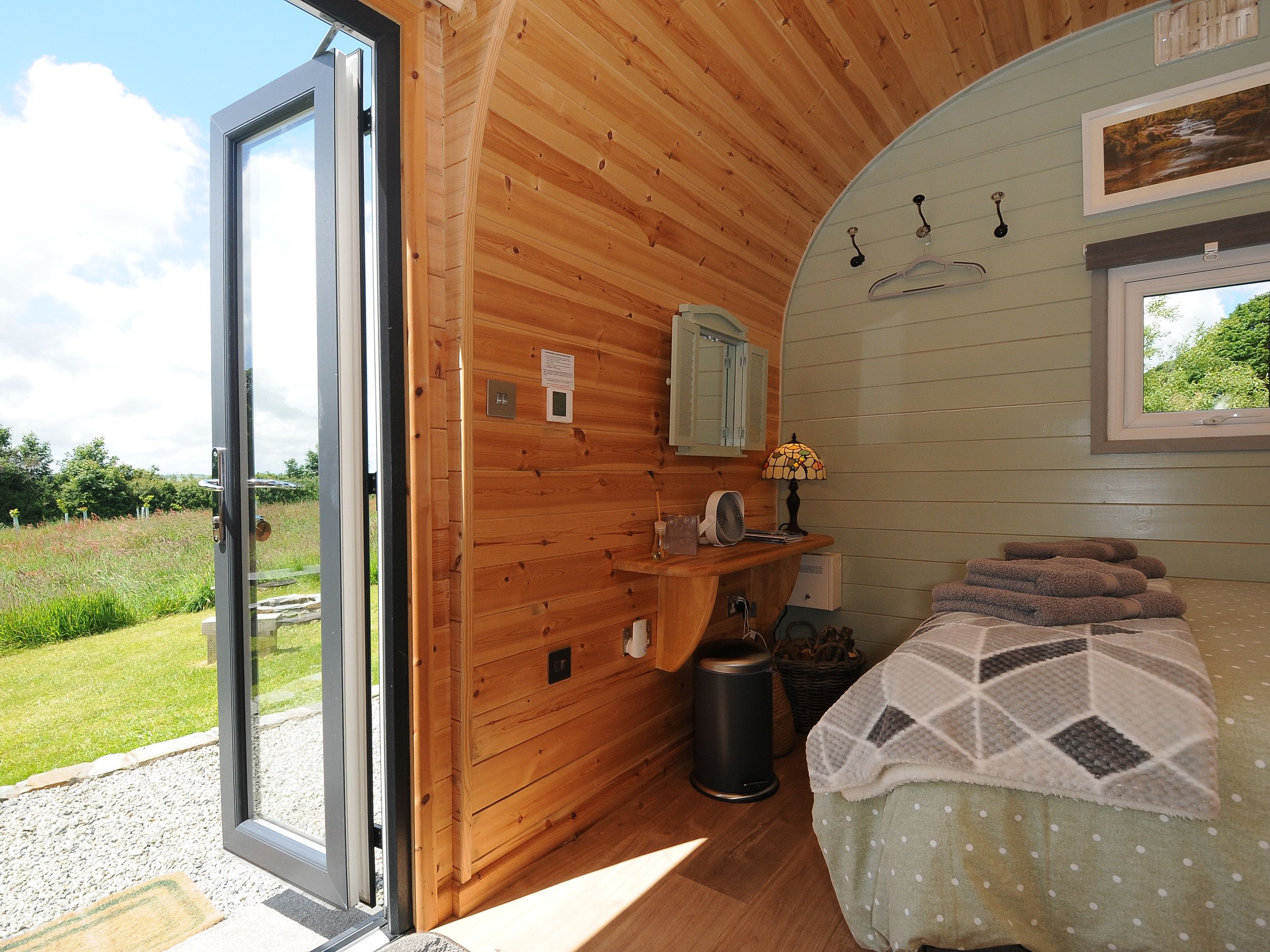 Holiday home Rowan has a studio-style layout with a double bed, a kitchen equipped with a 2-ring gas hob, microwave, fridge/freezer, kettle and toaster, and dining area. There’s a wet room with walk-in shower, basin, heated towel rail and WC. Gas central heating and underfloor heating, WiFi, fuel and power, bed linen and towels are included in the rent. Outside there’s a designated parking place for one car and non-enclosed front patio and lawn with furniture, picnic bench and fire pit. Sorry, no pets and no smoking. Shop 2 miles and pub 3.2 miles. A romantic getaway awaits at Rowan for you and your soulmate. Note: Check-in is from 3pm, check-out by 11am