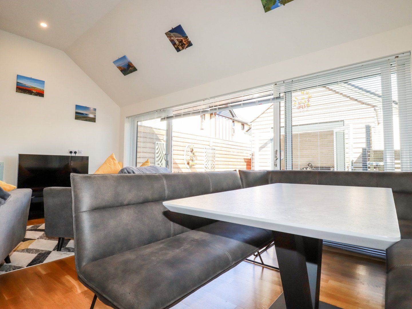 Accomodation Details Single-storey. Two bedrooms. 1 x king-size, 1 x bunk. Bathroom with bath, shower over, basin and WC. Open-plan living space with kitchen, dining area and sitting area with woodburning stove