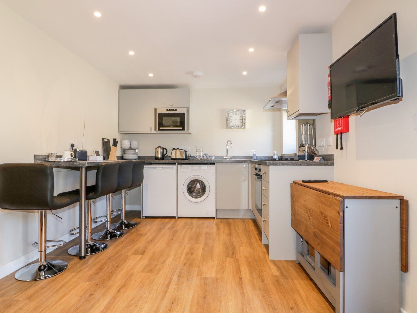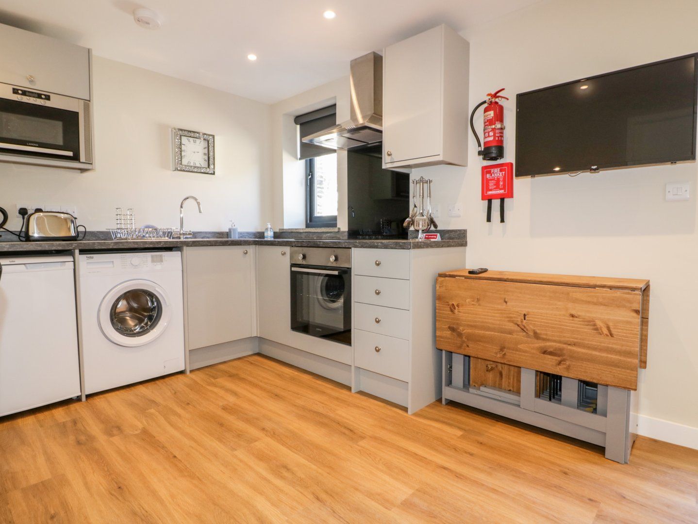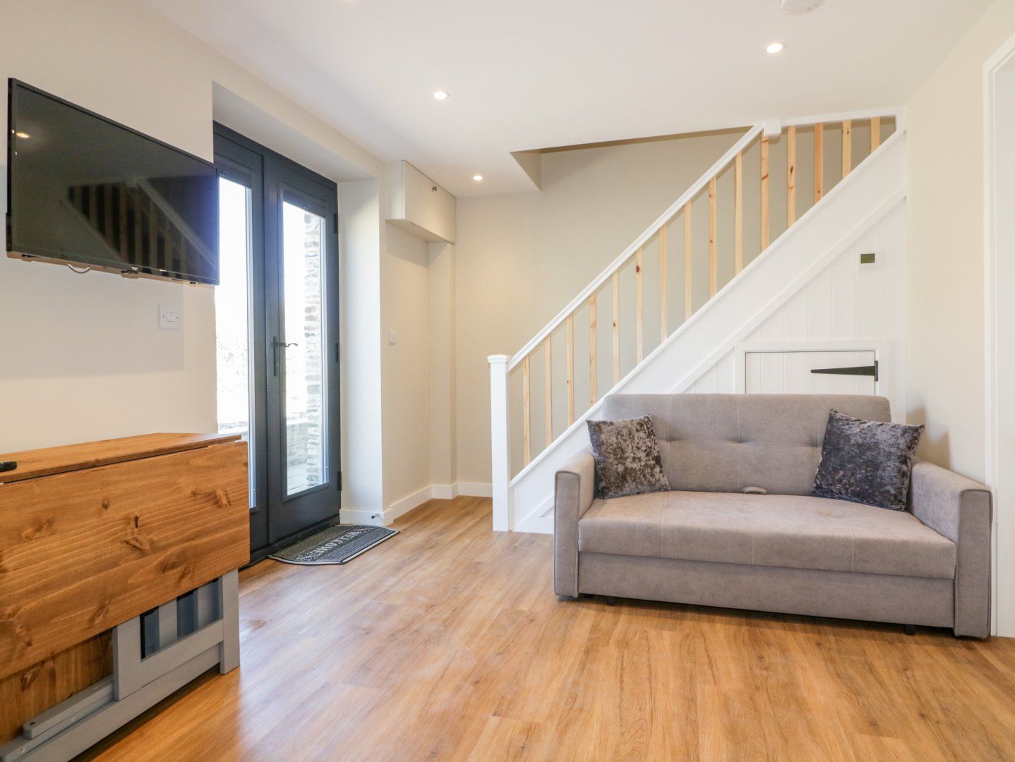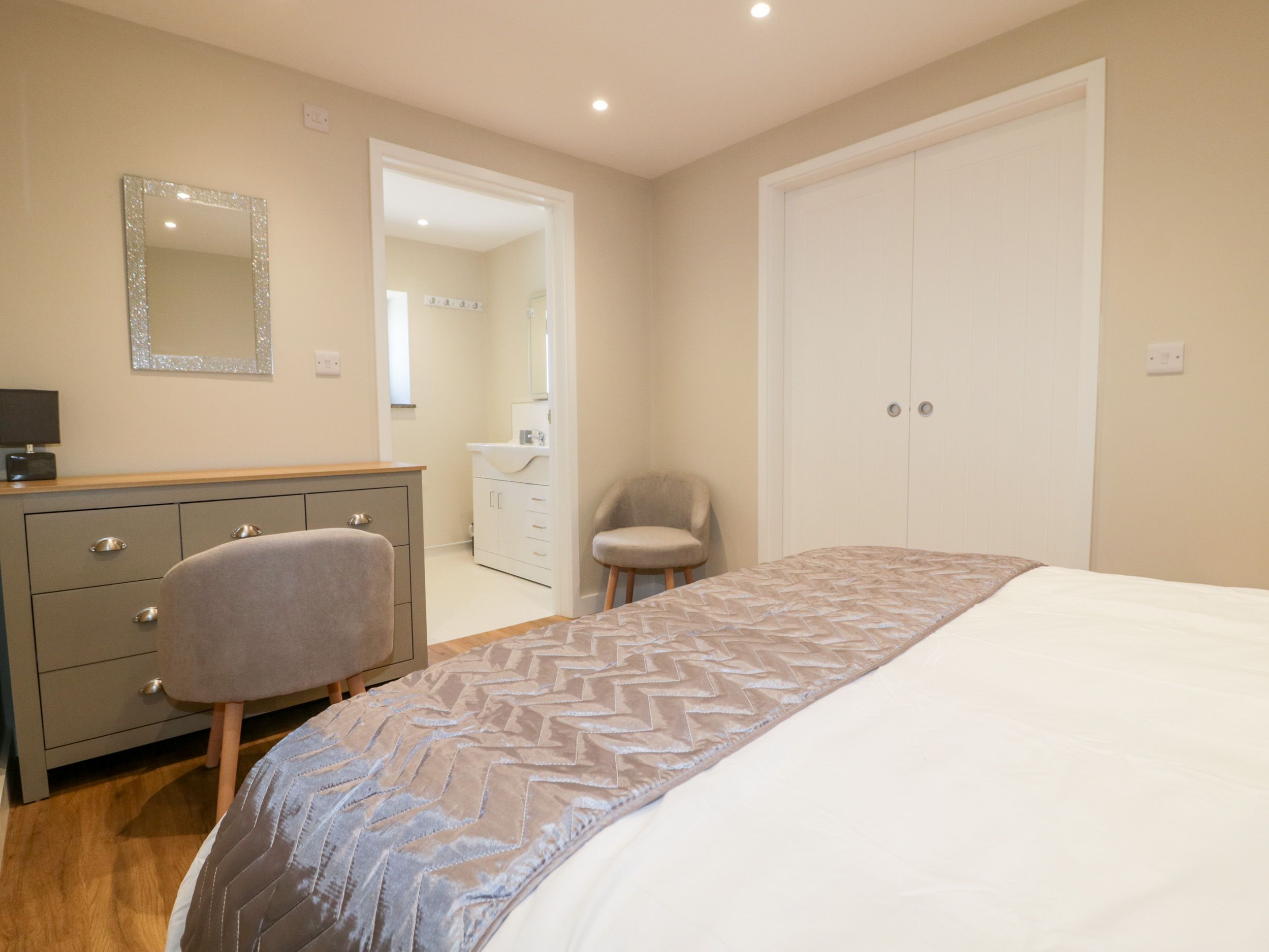 Accomodation Details Two bedrooms: 1 x ground-floor double with en-suite walk-in shower, basin, heated towel rail and WC, 1 x double with TV and en-suite walk-in shower, basin, heated towel rail and WC. Open-plan living space with a kitchen, dining area and sitting area