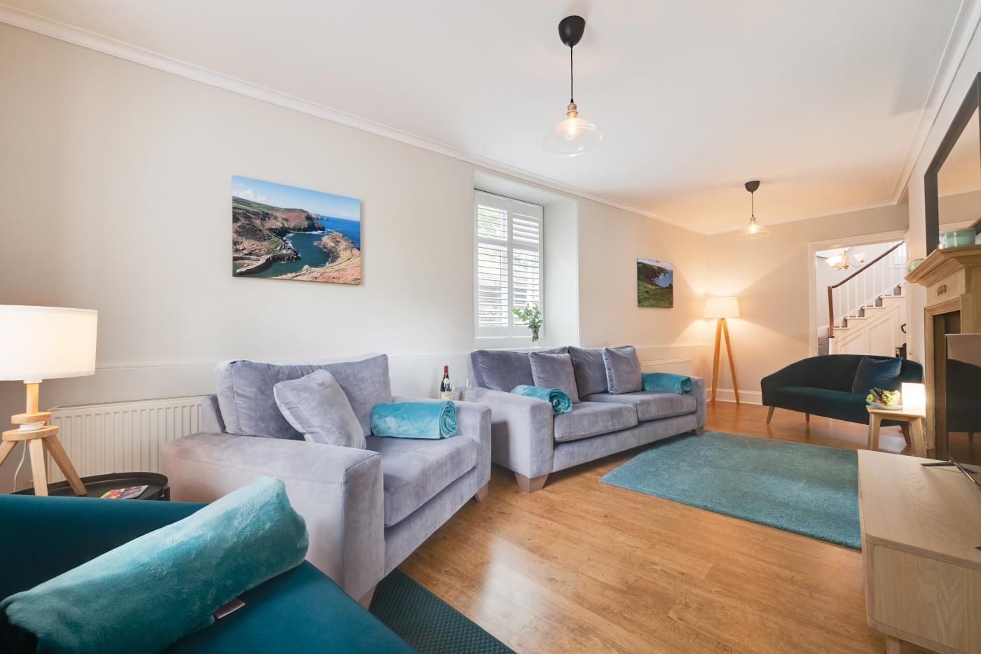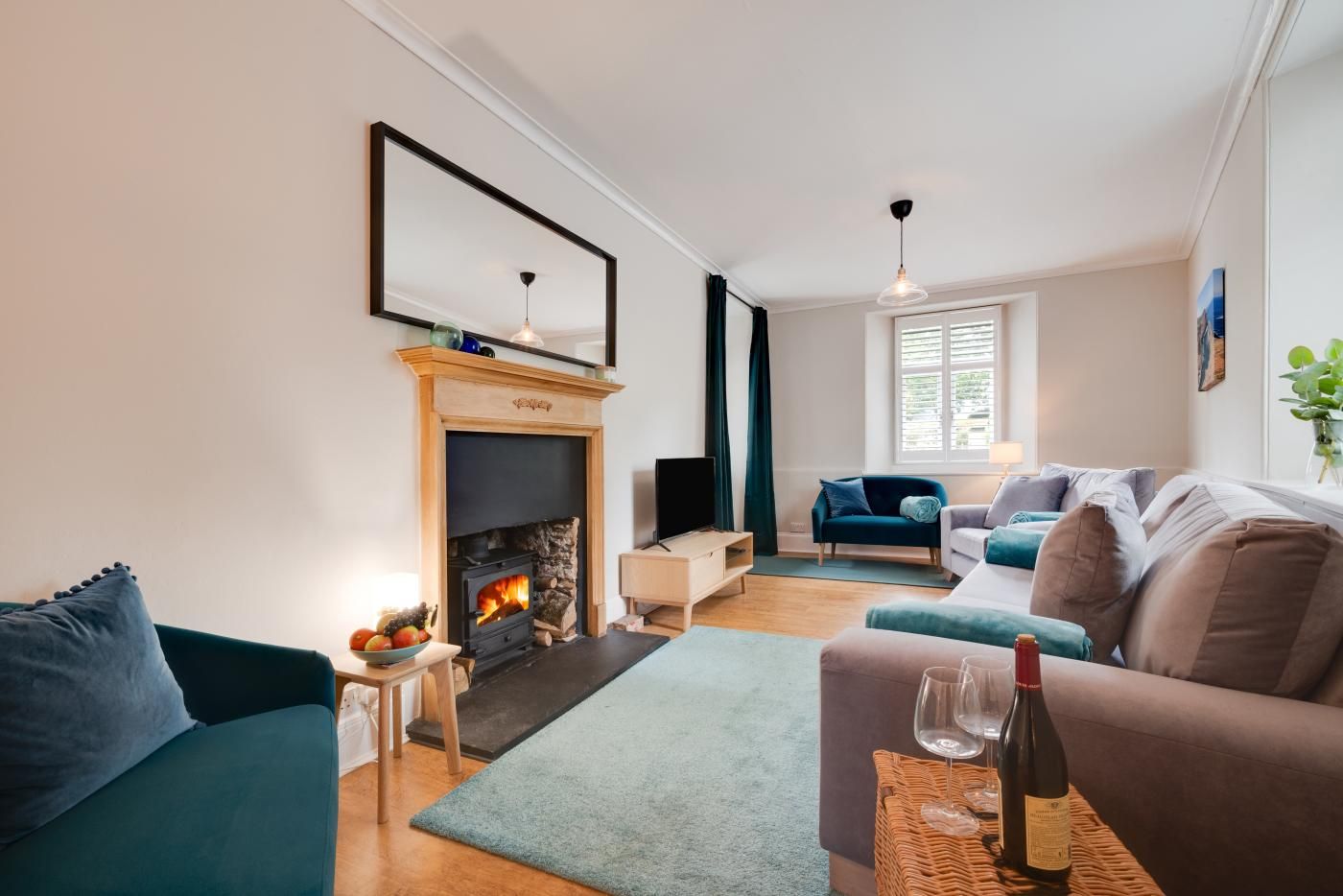 This inviting property, set over two floors, is elegantly furnished and has a spacious feel with a separate lounge and dining room, both of which feature cosy wood burners.