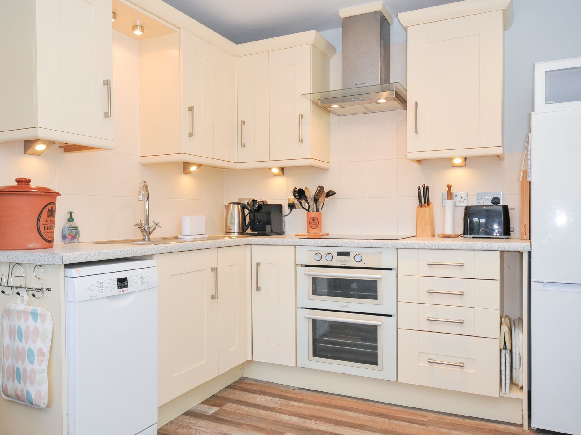 Amenities Electric heating with night storage heating. Microwave, fridge-freezer, De Longhi Nespresso coffee machine, shared indoor pool and laundry facilities (at an extra cost), including washing machines and tumble dryers, dishwasher, TV with Blu-ray, DVD, WiFi, Phone, Fuel and power inc. in rent. Bed linen and towels inc. in rent. Off road parking for one car. Two well-behaved dogs welcome, Sorry no smoking. Pub less than 1 mile from property.