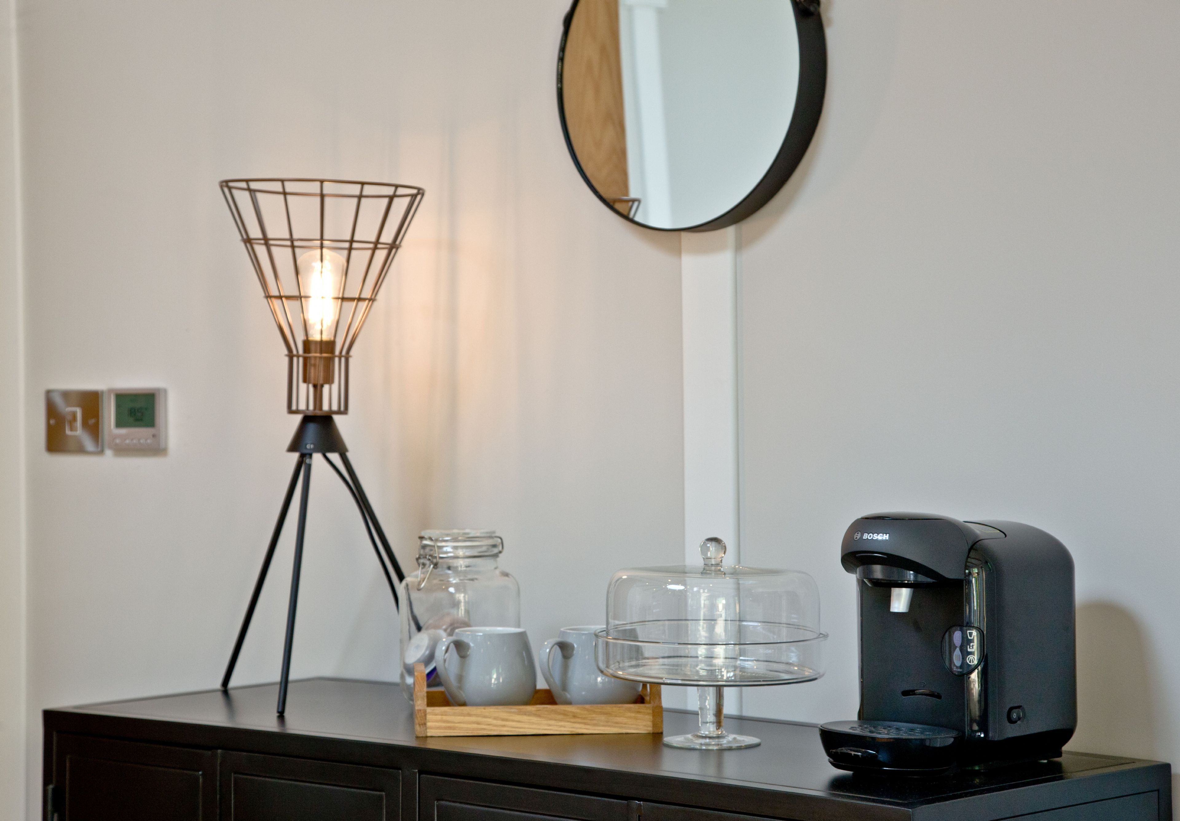 KitchenInduction hob, oven, fridge with freezer compartment, kettle, coffee machine. A washing machine and tumble dryer are located on site.