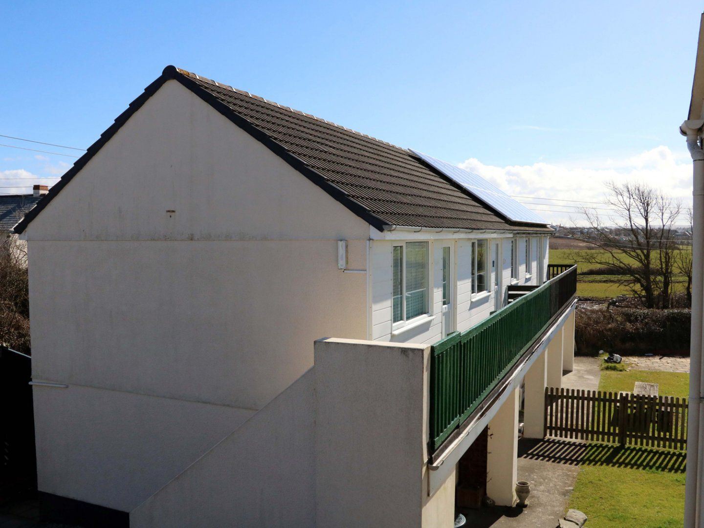 Amenities Electric central heating. Electric countertop oven, 2-ring electric hob, microwave, fridge with ice box. TV with Freeview, WiFi. Fuel and power inc. in rent. Bed linen and and one hand towel inc. in rent. Off-road parking for 1 car. Communal enclosed lawned garden with barbecue for quiet recreational activities. Outside seating on balcony with views of the sunset and views across to Bude. Sorry, no pets and no smoking. Shop 0.9 miles, pub 0.7 miles, beach 0.8 miles. Note: The property is accessed via steps. Note: Guests will be provided with a key to a separate laundry room which has two washing machines and a tumble dryer, all coin operated