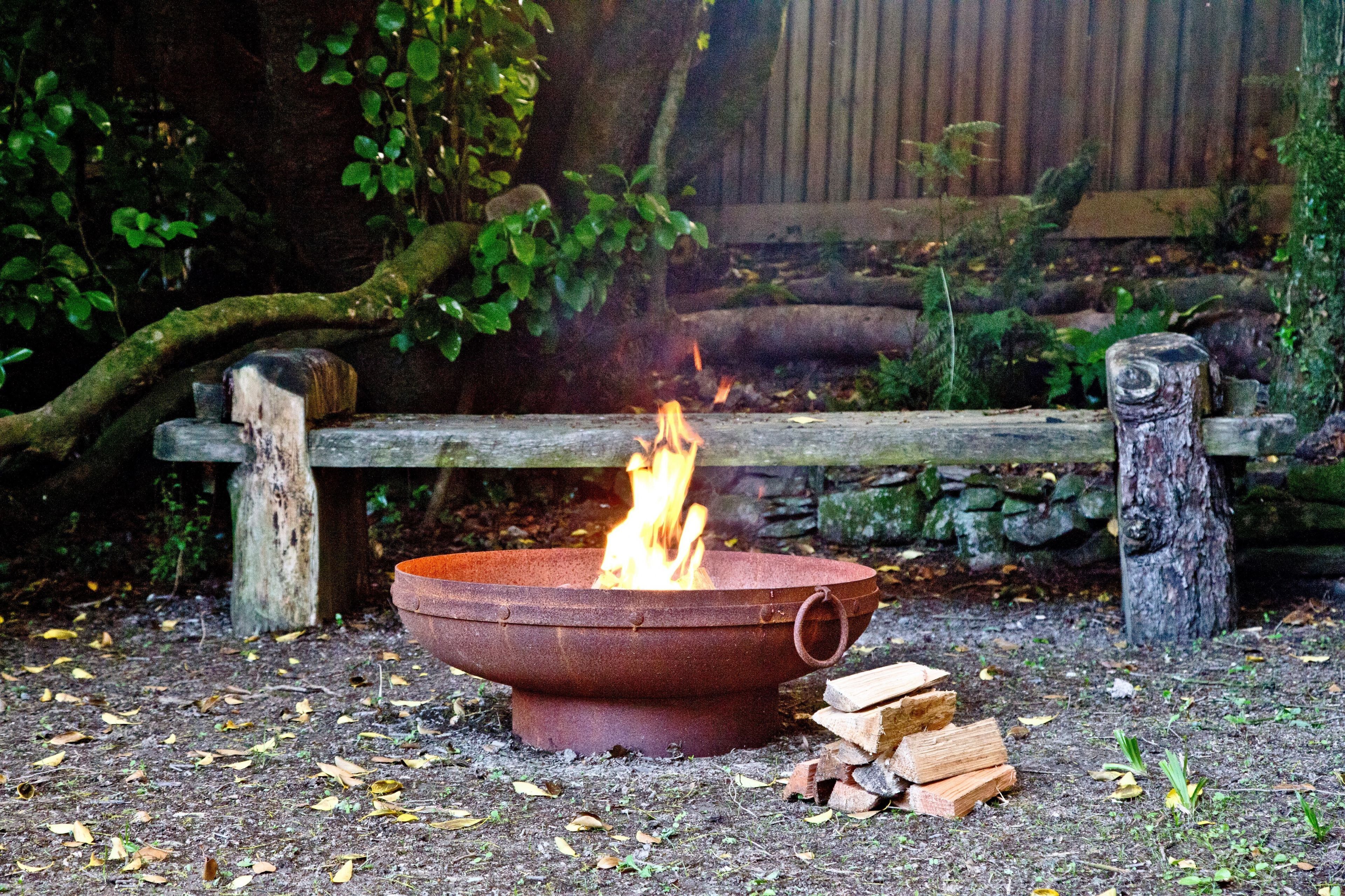 Outdoors Private enclosed garden with a wood-fired hot tub, patio with a table and chairs and a wooden kitchen cabin. Parking on site.