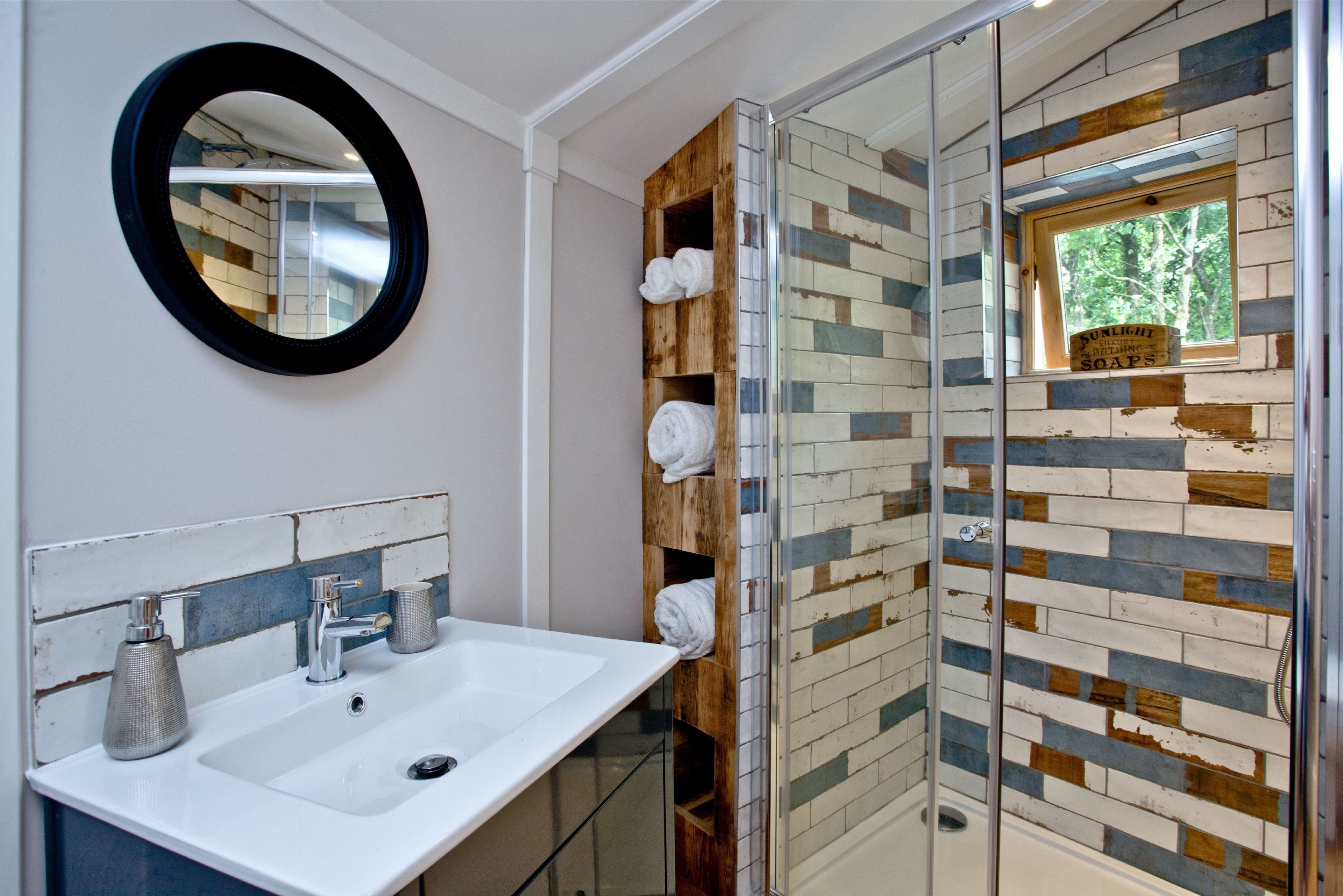 Family BathroomEn suite with a walk in shower, WC, heated towel rail and wash basin.