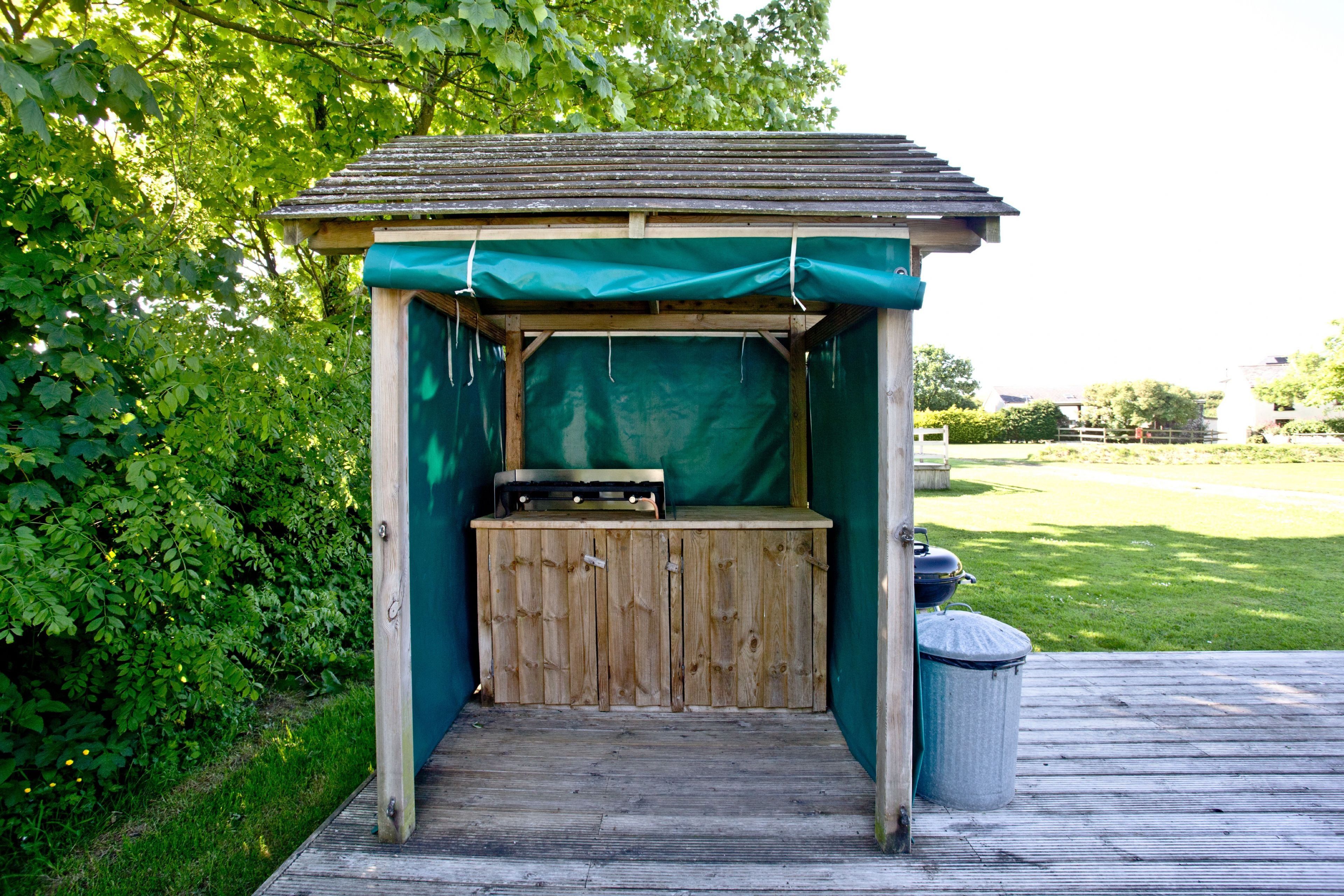 KitchenOutdoor undercover kitchen, three ring industrial gas burner, Webber barbeque, small fridge with freezer compartment and a kettle. There is a communal washing machine and tumble dryer on site.