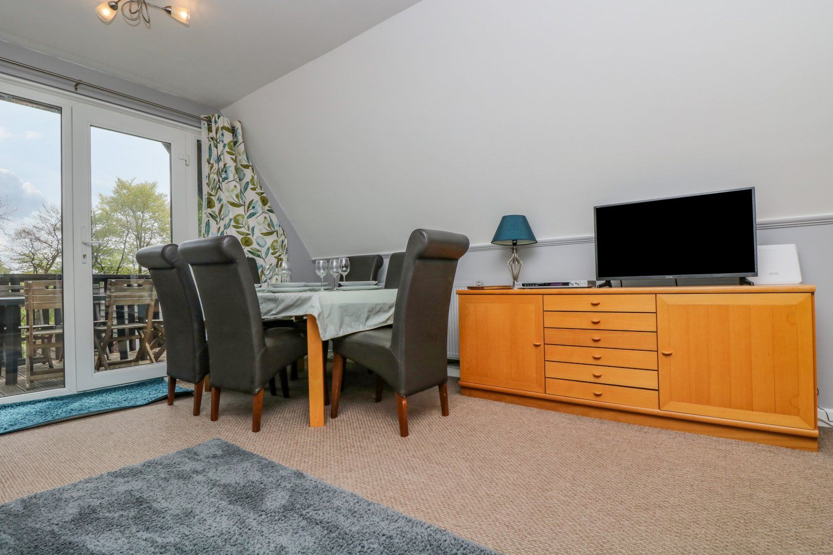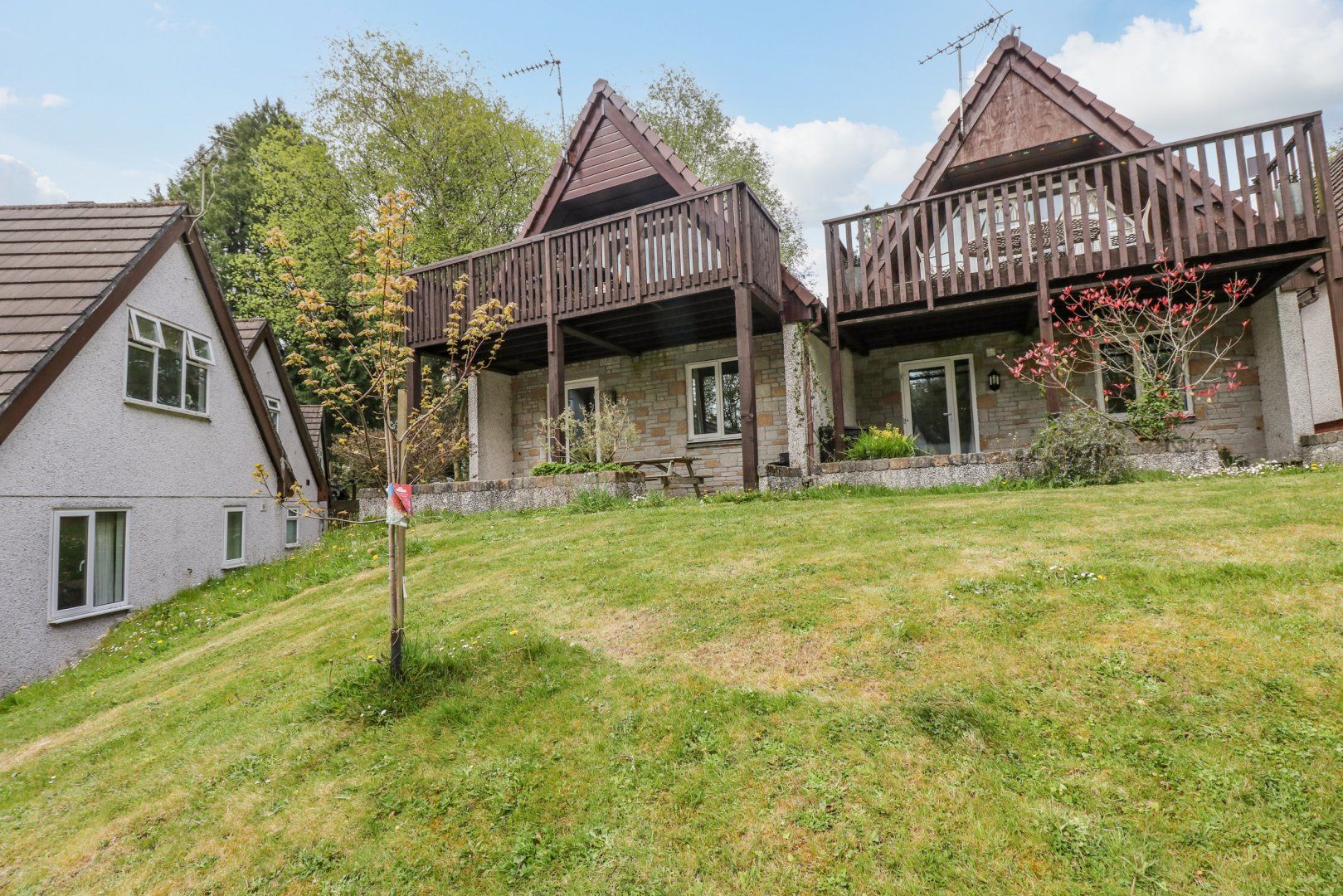 Accomodation Details Reverse level lodge. Three bedrooms: 1 x double with en-suite bath, shower over, basin and WC, 2 x twin. Shower room with walk-in shower, basin and WC. Open plan living area with kitchen, dining area and sitting area. Balcony with seating