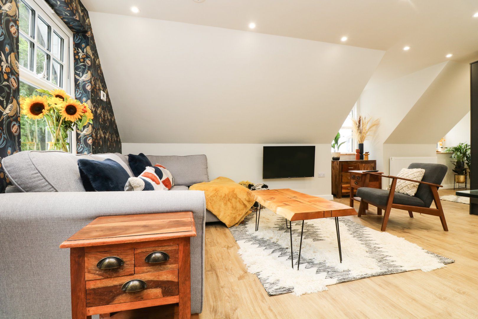 Amenities Gas central heating. Electric oven and hob, microwave, fridge/freezer, wine cooler, washer/dryer and dishwasher. 3 x Smart TVs and WiFi. Fuel and power inc. in rent. Bed linen and towels inc. in rent. Travel cot, highchair and stairgate available on request. Designated, off-road parking for 2 cars. Garden with lawn, patio, barbecue and furniture. Sorry, no pets and no smoking. Shop 1.2 miles, pub 0.1 miles. Note: Due to the layout and sloping ceilings, some parts of the property have limited head room, please take care. Note: There are a number of wooden steps up to the entrance of the property, please take care.
