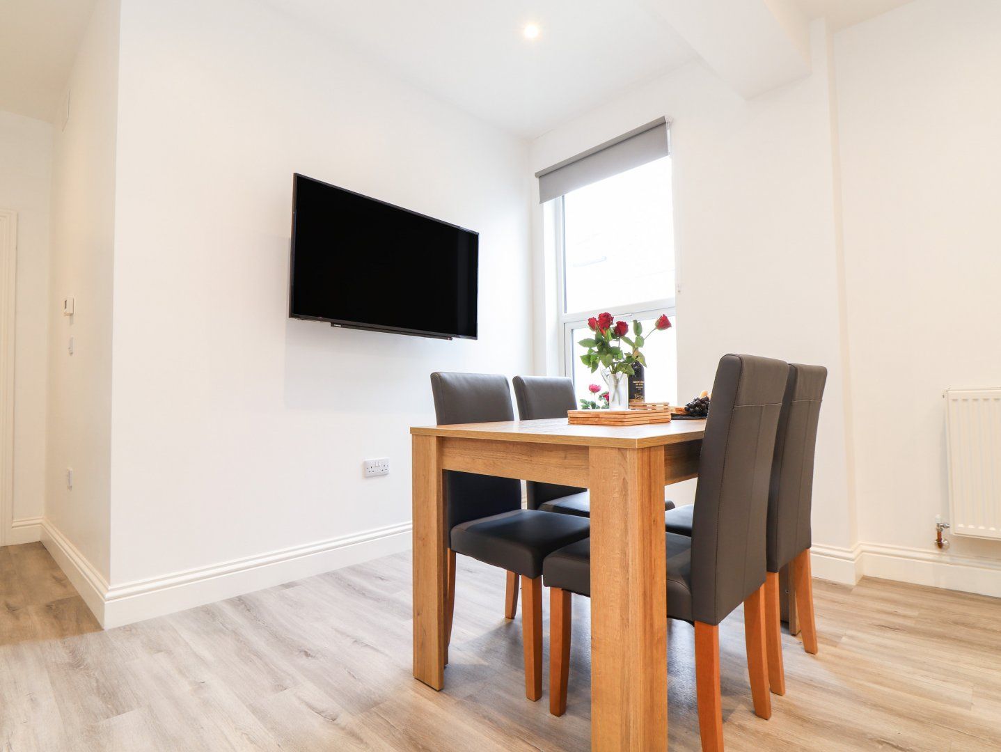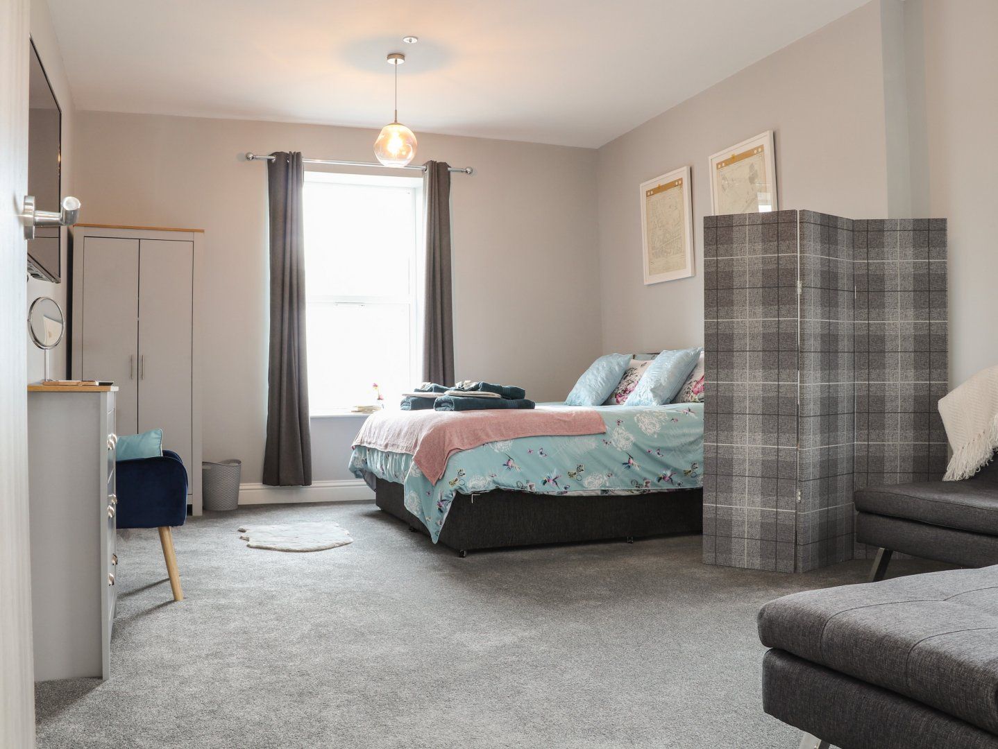 First-floor apartment. One super-king-size bedroom (zip/link, can be twin on request) with Smart TV with Netflix and en-suite walk-in shower, basin, heated towel rail and WC. Kitchen/diner with Smart TV with Netflix