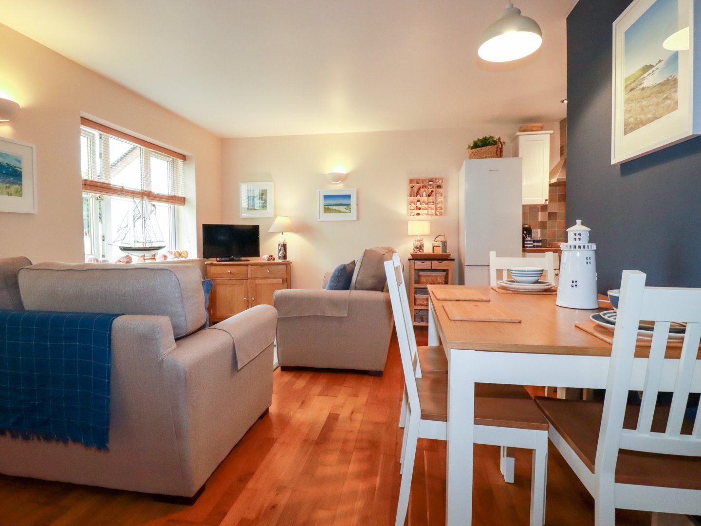 Accomodation Details Single-storey. Two bedrooms: 1 x double, 1 x bunk with TV. Bathroom with bath, shower over, basin and WC. Open-plan living space with kitchen, dining area and sitting area. Enclosed rear garden with patio area.