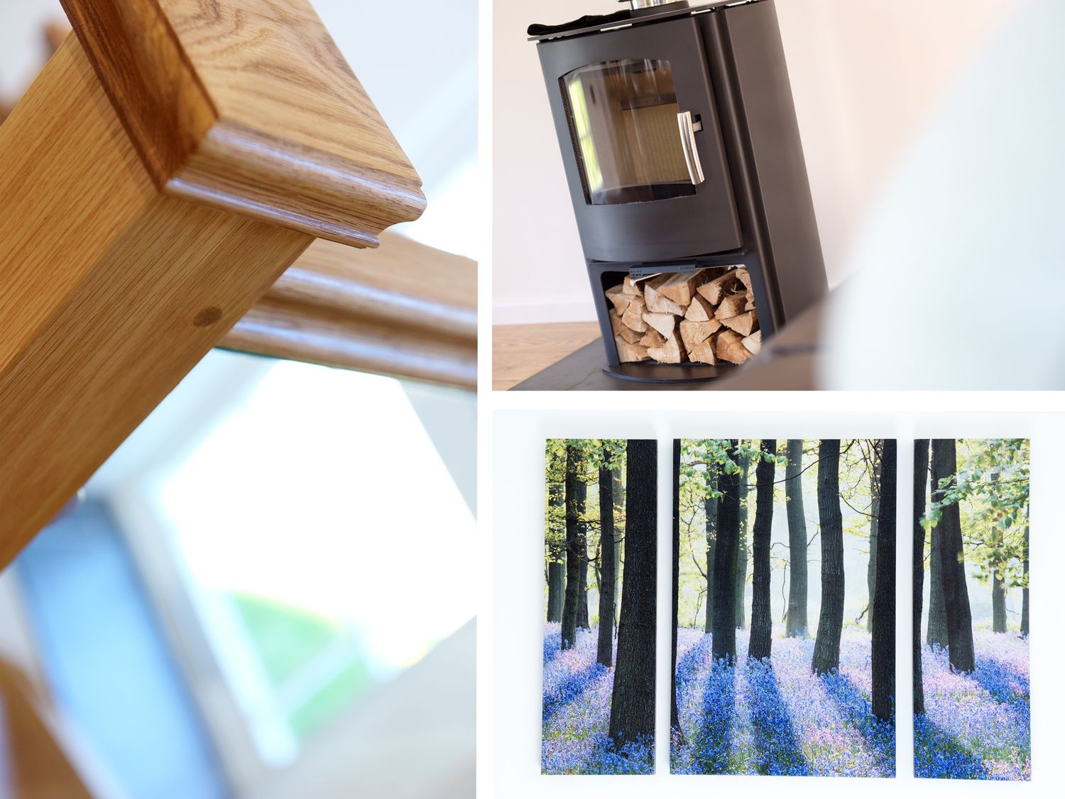 When pulling up after a long drive I wasn’t surprised to see that this remote, stand-alone building was exactly like the photos state in the advertisement: an old chapel. Upon entering through the original wooden door under its original stone lintel I removed my coat while looking around this anteroom with its exposed stonework I noticed a very handy large Dutch sink with its adjacent shelf. Underneath the shelf I was very glad to see a modern washing machine which takes a generous 6KG load. There was ample room on the solid stone floor for me and my family to move around and remove our outside footwear before going into the rest of the building through a very modern glass-panelled door. My first thoughts were on the extensive works done on this old place. The tiled ground floors are all heated independently by room, and every room is very nicely decorated with modern furniture and generously equipped with wall sockets in almost every corner. The tiled bathroom floor is heated, and so is the large towel rack by the door when entering. It has a large bath with a rounded shower door and a large porcelain sink in front of a large opening window next to it, allowing all the noises from the countryside in while you prepare for the day. The toilet is a good size with a very handy electric shaving point close-by so that you can carry two chores at the same time. The first, smaller bedroom on the left as you walk further along the floor-heated hallway has a sturdy modern bunk bed, a surprisingly large wardrobe and a bedside table with a light on top. It’s a good-sized airy room with plenty of room to get around without having to squeeze past your room-mate. The independently heated floor is newly-carpeted and clean; freshly hoovered by the owners before our arrival. The second, master bedroom at the end of the hallway, again, has an independently-heated carpeted floor. The comfortable king-size double bed has clean sheets and pillowcases, and there are a couple of solid wood bedside cabinets each side and a sturdy chest of drawers against the wall at the foot of the bed. It’s airy with a good-sized opening window and has plenty of sockets all round. Apart from the large impressive boiler and heating system in a custom-built room opposite the foot of the wooden stairs going up to the lounge and kitchen area, that’s my description of the ground floor.