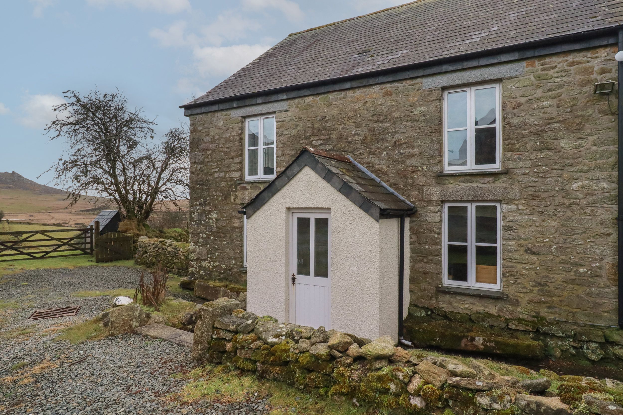 Holiday home Poldue House consists of a kitchen with a gas hob, electric oven, microwave, fridges, freezer, dishwasher, a dining area seating eight people, a utility with washing machine, tumble dryer, a sitting room with a woodburning stove and TV and and a conservatory. The bedrooms consist of two twins, a double, and a second-floor super-king-size with en-suite walk-in shower, serviced by a bathroom and cloakroom. Outside, you will find an enclosed rear garden with lawn, patio, furniture, and barbecue plus off-road parking for 3 cars. You'll find a shop in 2.2 miles and a pub in 2.6 miles. No smoking is allowed. WiFi, fuel, power, starter pack for woodburning stove, bed linen and towels are all included in the price. Poldue House, a house in the hills in Cornwall.