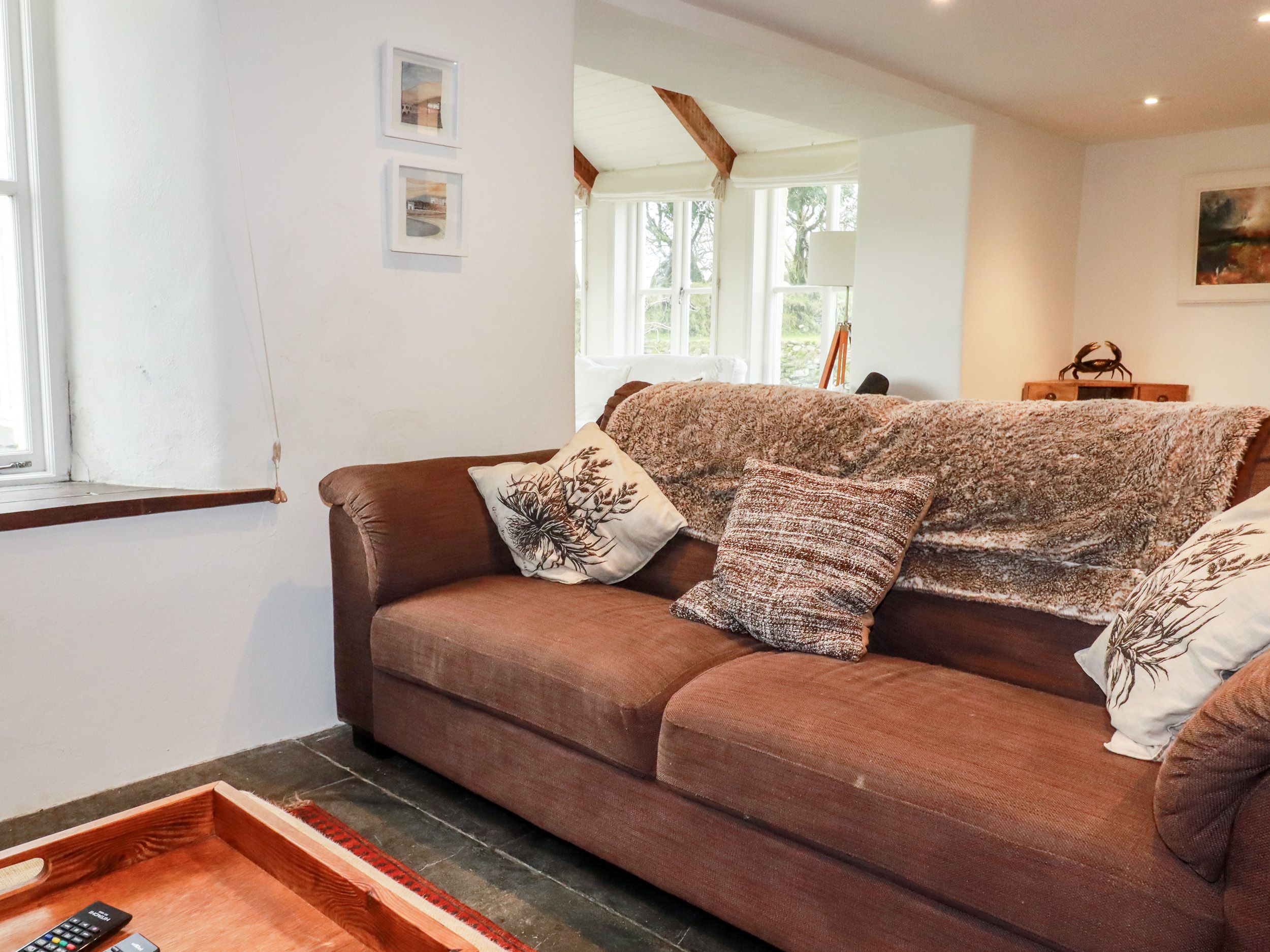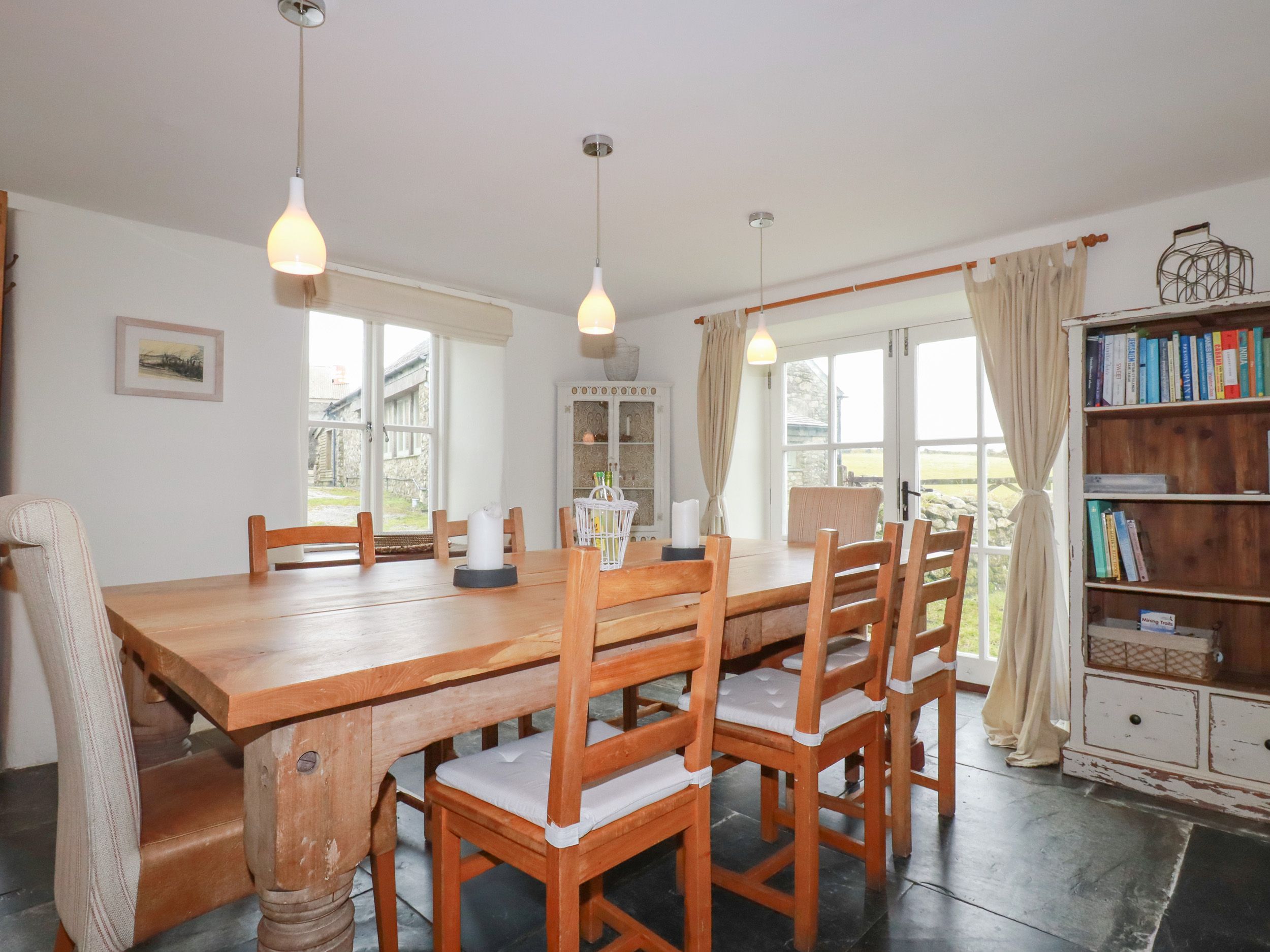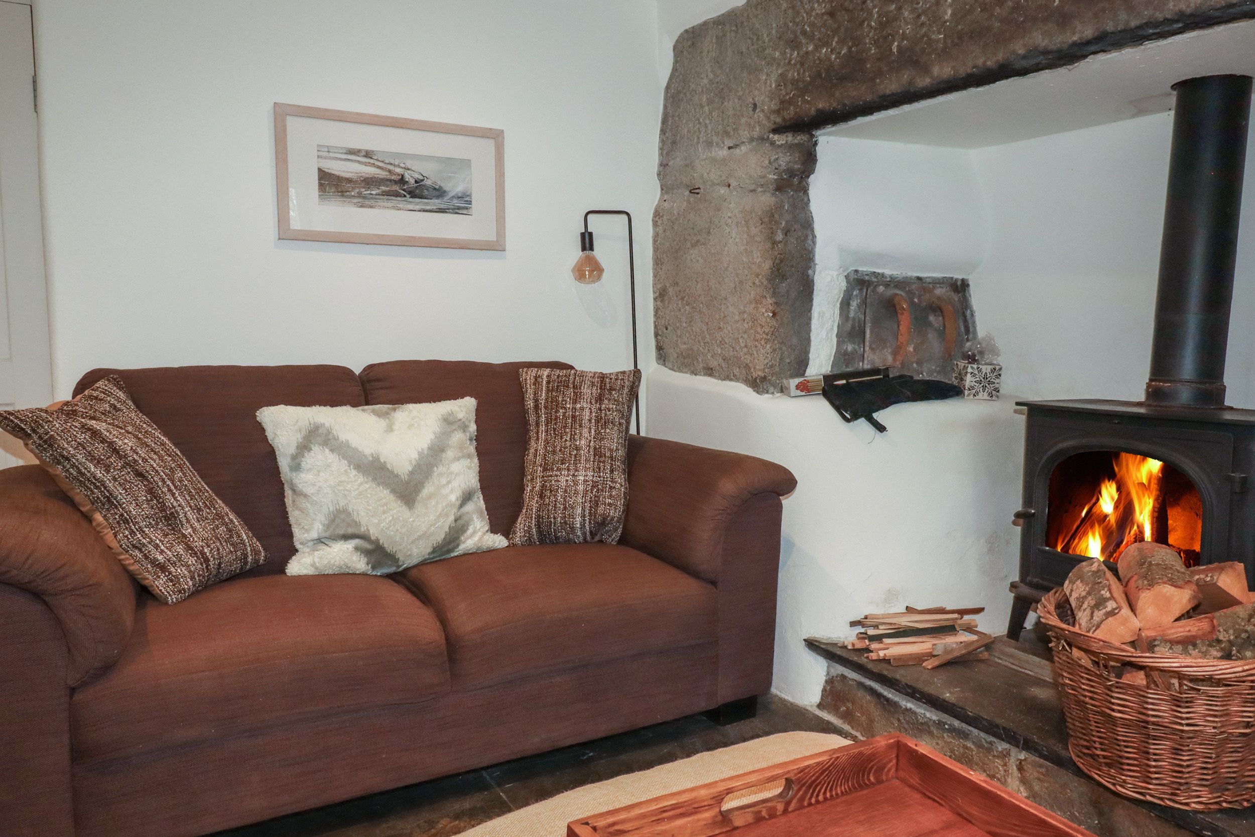 Amenities Underfloor heating. Gas hob, electric oven, microwave, fridge, freezer, washing machine, tumble dryer, dishwasher. TV, DVD player, books, WiFi. Fuel, power, and starter pack for woodburning stove inc. in rent. Bed linen and towels inc. in rent. Highchair and travel cot available on request. Off-road parking for 3 cars. Enclosed rear garden with lawn, patio, furniture, and barbecue. Sorry, no smoking. Shop 2.2 miles, pub 2.6 miles