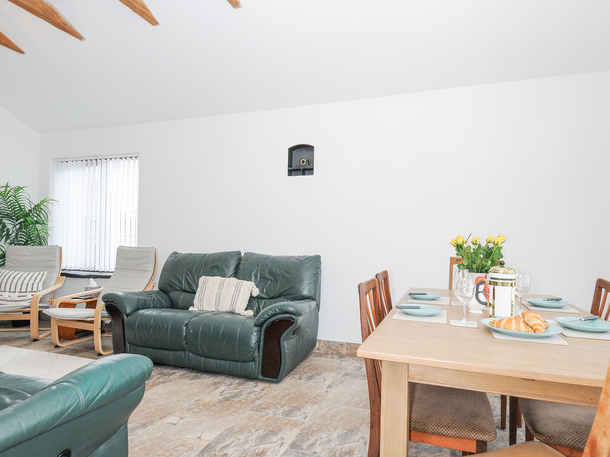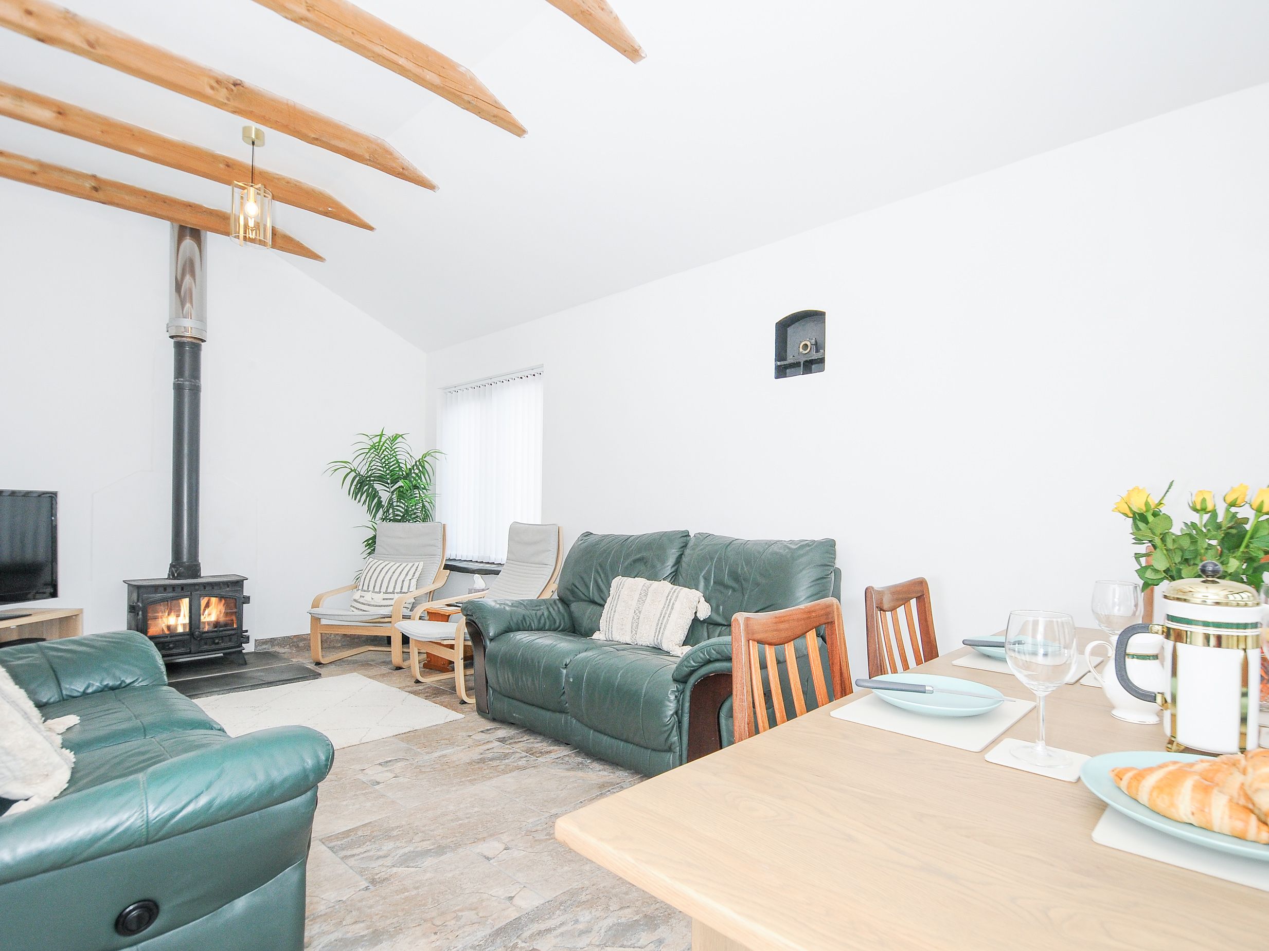 Amenities Biomass central heating. Oven, hob, fridge/freezer, dishwasher, washing machine, kettle, toaster. TV and WiFi. Fuel, power, and starter pack for woodburning stove inc. in rent. Bed linen and towels inc. in rent. Off-road parking for 4 cars. Non-enclosed, front courtyard. Two well-behaved pets welcome. Sorry, no smoking. Shop 1.3 miles, pub 1.5 miles