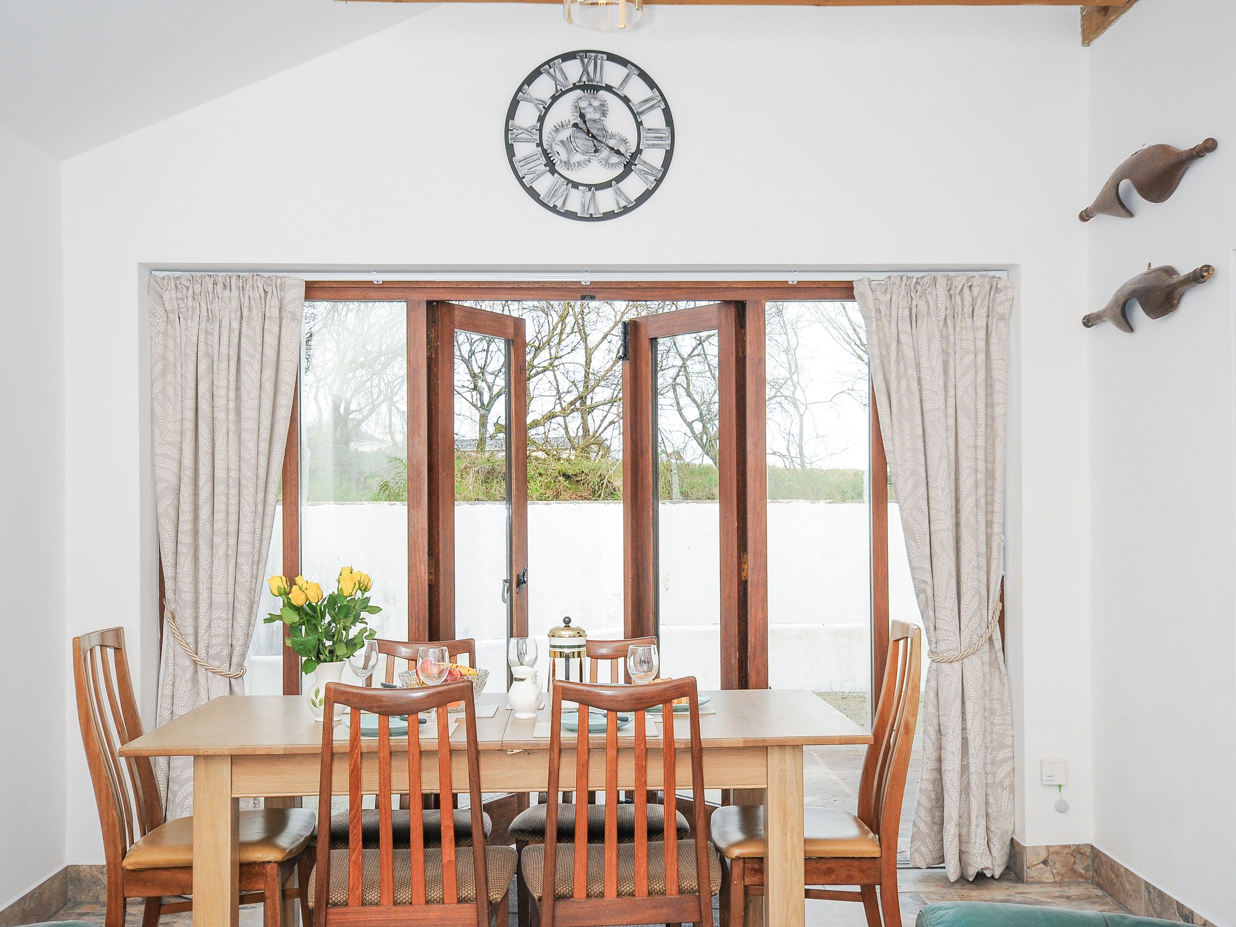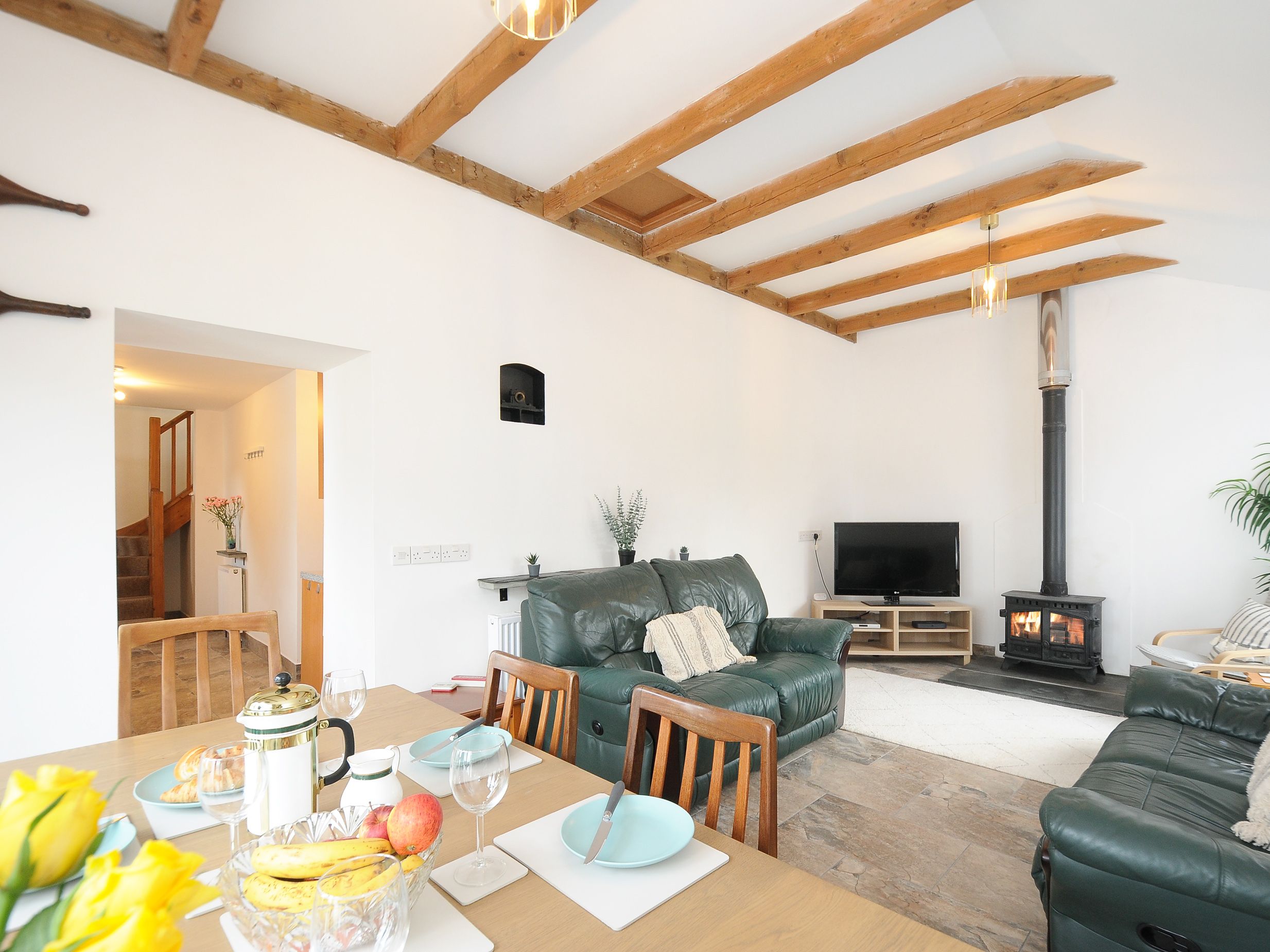Holiday home Dairy Barn consists of a kitchen with oven, hob, fridge/freezer, dishwasher, washing machine, kettle, and toaster, and a living/dining room with dining seating for six people, TV, and woodburning stove. The bedrooms consist of a ground-floor king-size with en-suite wet room, along with a double, and twin, serviced by a shower room. Outside, there is a non-enclosed front courtyard, along with off-road parking for four cars. Two well-behaved pets welcome. Sorry, no smoking. You'll find a shop in 1.3 miles and pub in 1.5 miles. WiFi, fuel, power, starter pack for woodburning stove, bed linen, and towels are all inc. in rent. Dairy Barn is a welcoming base for a Cornwall retreat.