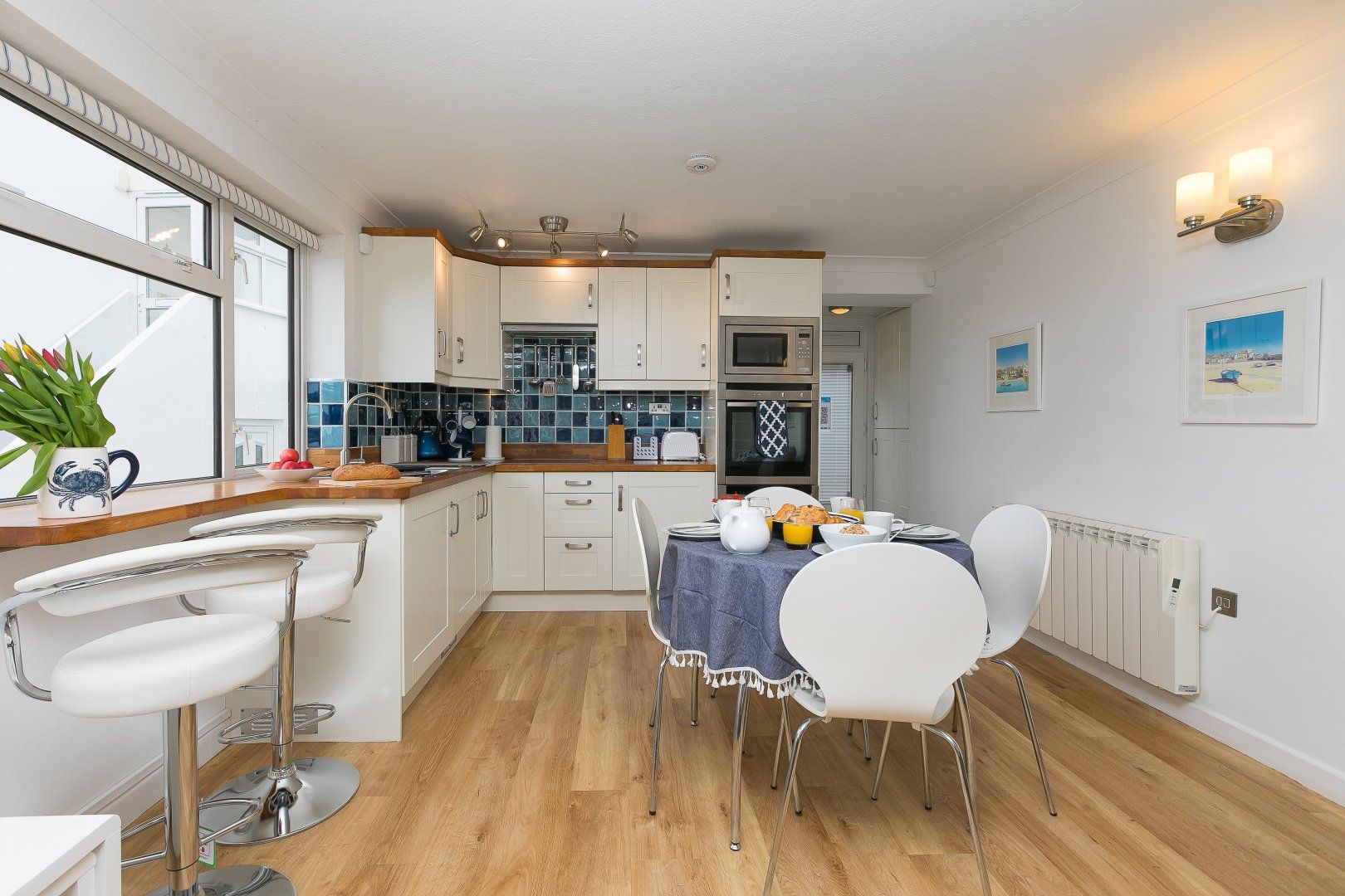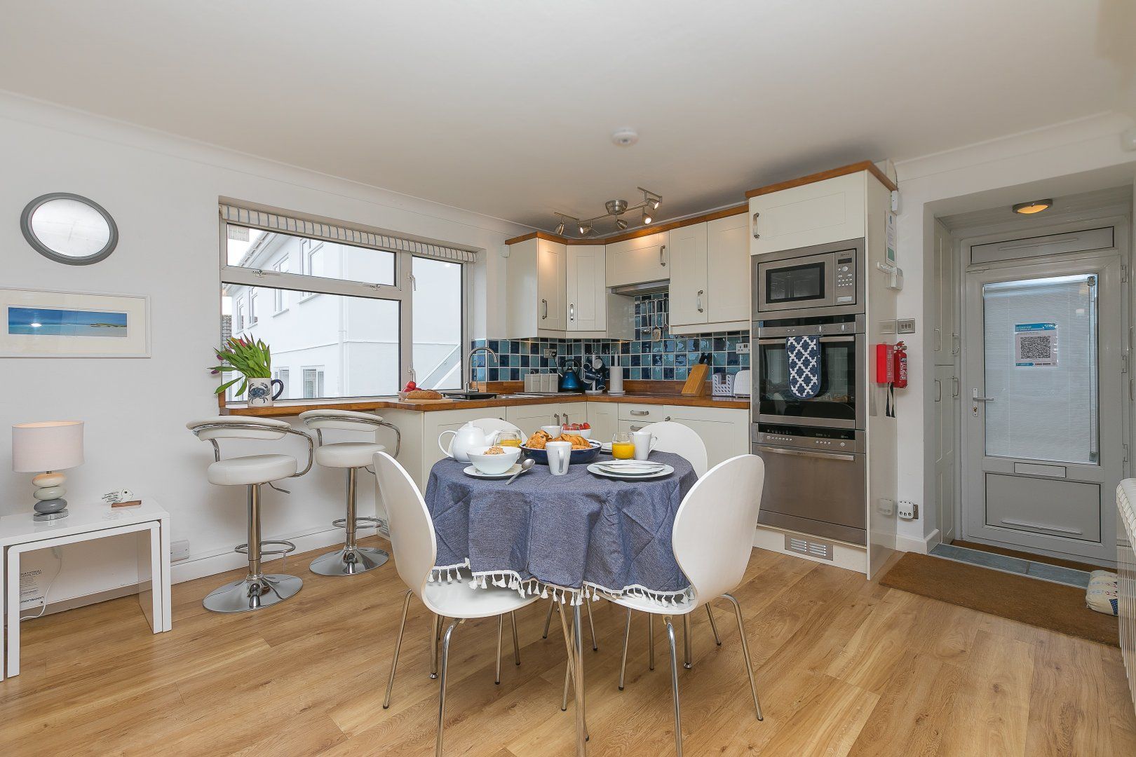 Holiday home The open-plan living space includes a kitchen with electric oven and hob, microwave, dishwasher and coffee machine, a sitting area with TV and a dining table for four. The bedrooms include a king-size (zip/link, can be twins on request) and a double, along with a shower room. To the outside is a communal garden and designated parking for 1 car. Within 0.5 miles there is a shop, 0.3 miles a pub and 0.7 miles, a beach. This is a pet and smoking free property. WiFi, fuel, power, bed linen and towels are included in the price. Atlantic Waves is an attractive base for exploring St Ives and Carbis Bay. Please note, this property has a good housekeeping bond of £100 and check-in is 4pm and check-out is 9am.