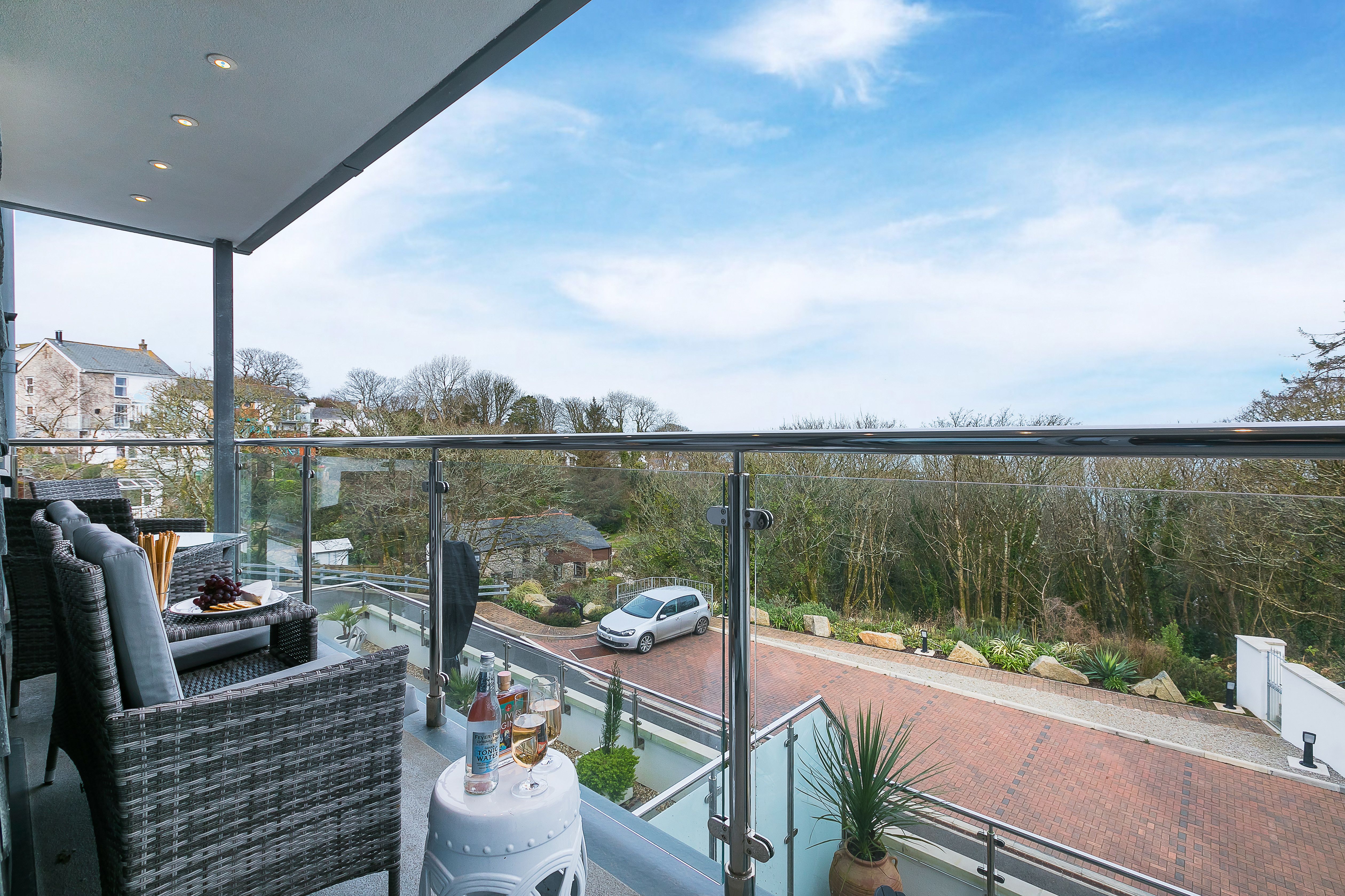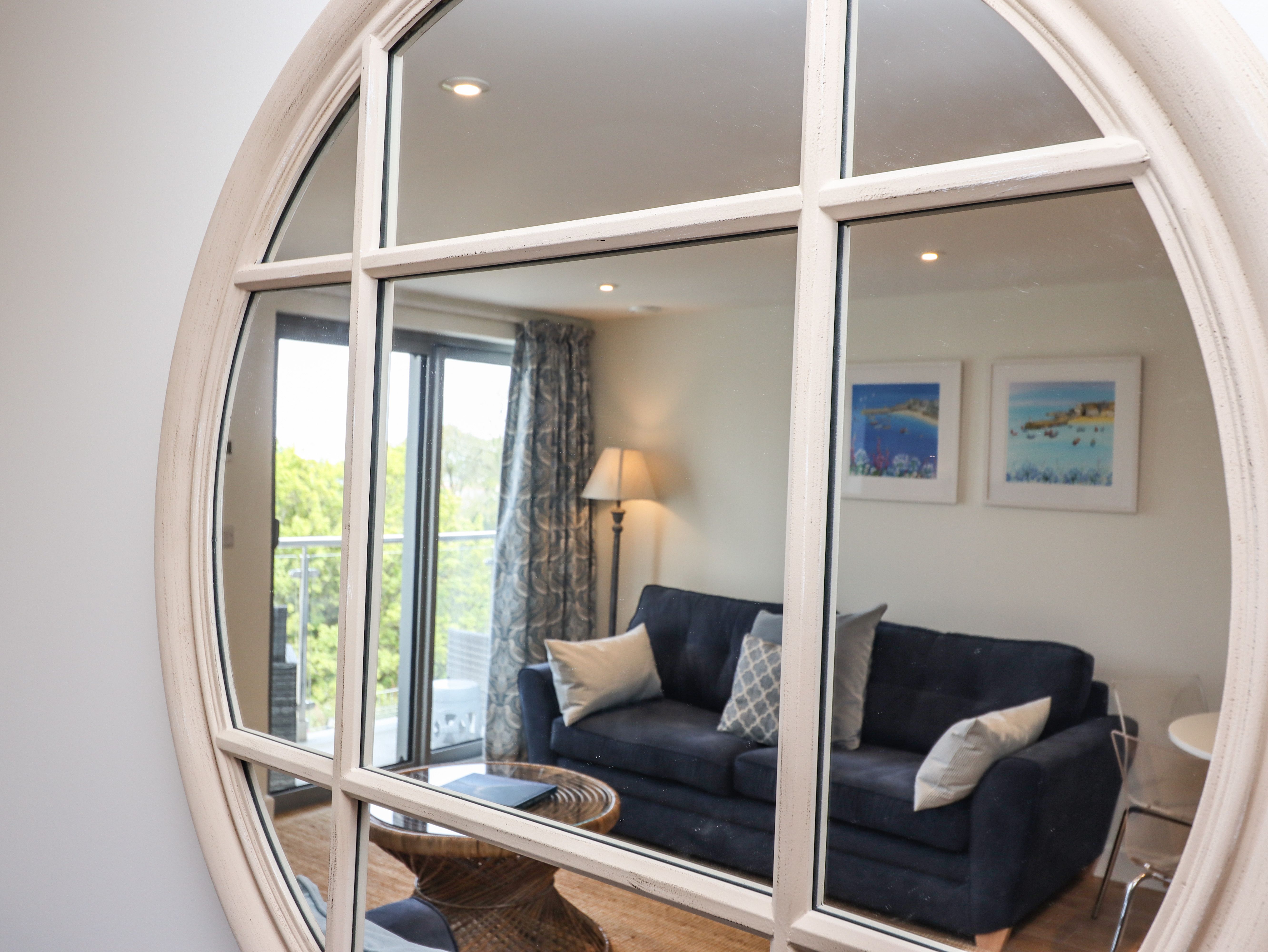 Accomodation Details First-floor apartment. Two bedrooms: 1 x king-size with Smart TV and en-suite walk-in shower, basin and WC, 1 x twin. Bathroom with bath, shower over, basin, heated towel rail, and WC. Open-plan living space with kitchen, dining area and sitting area with balcony