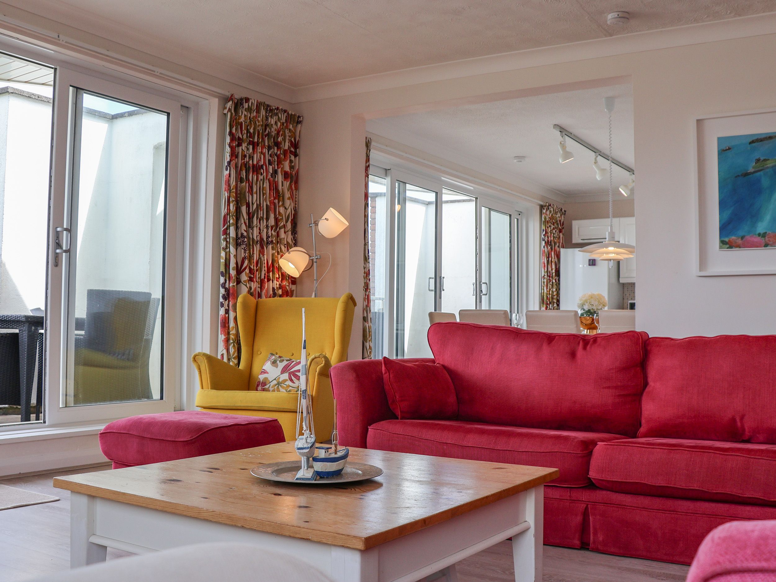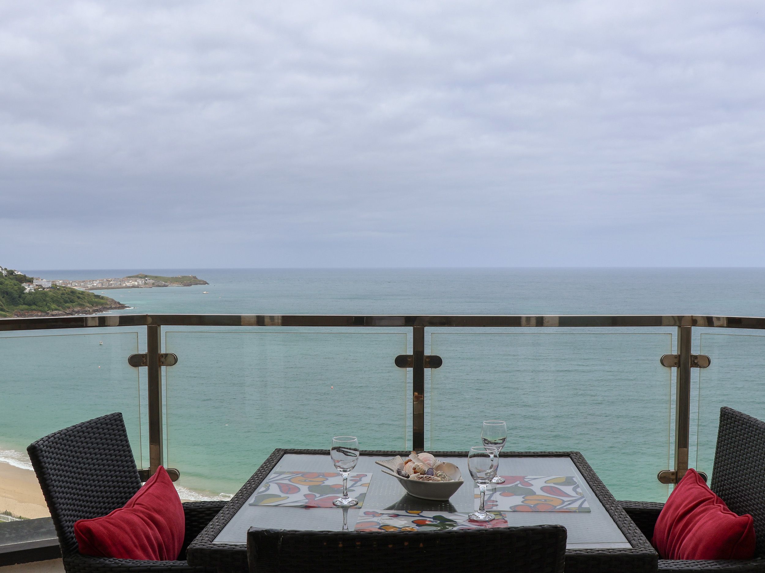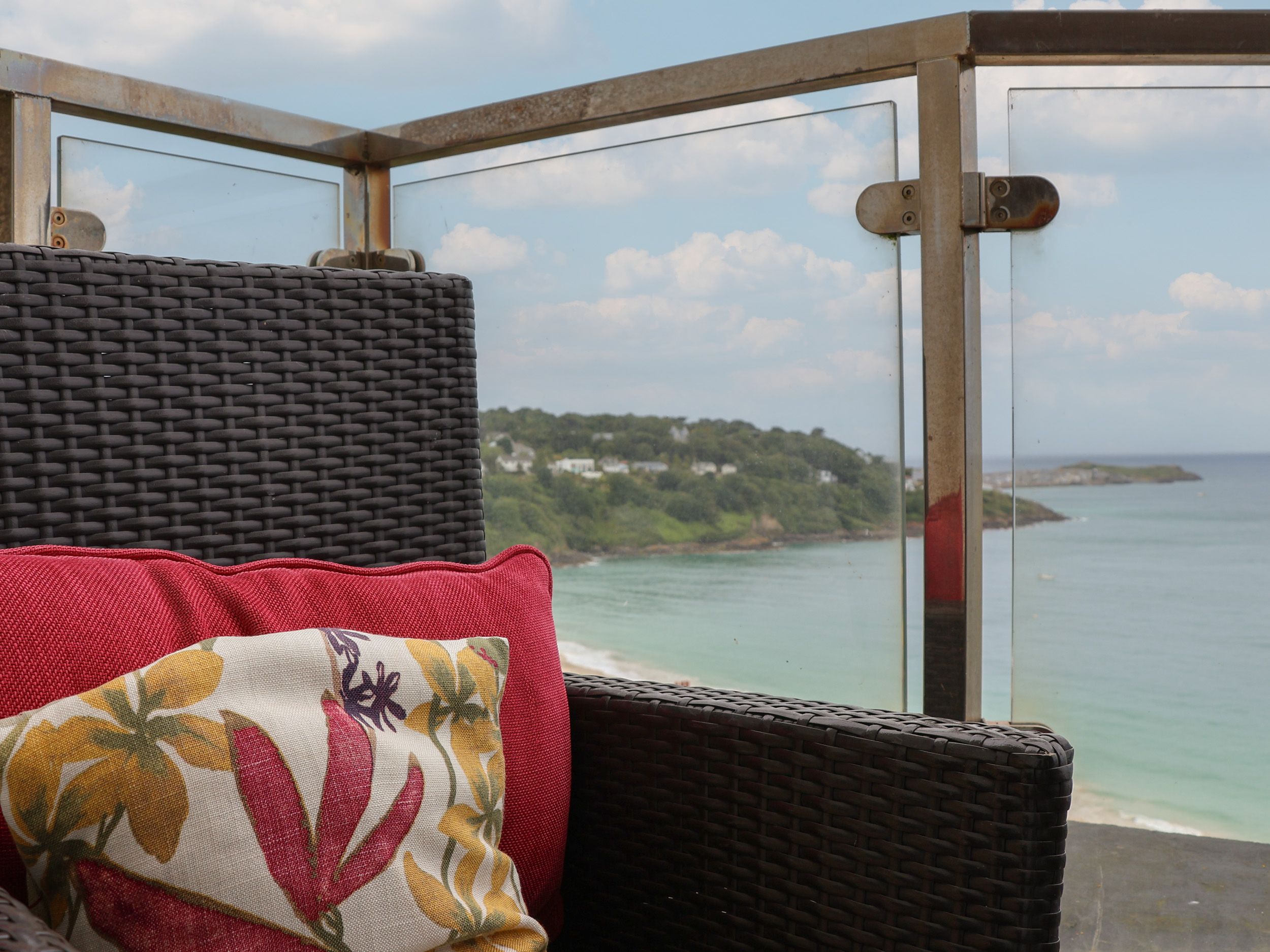 Holiday home The living areas in the third-floor apartment consist of an open-plan living space with a kitchen containing an oven/grill, hob, microwave, fridge/freezer, coffee machine, washer/dryer and dishwasher, a dining area with seating for eight people, and a sitting area with a TV with BT Sport and Netflix, TV, Bose Soundtouch 10 wireless speaker, and a PS4 with a selection of games. The bedrooms include a king-size with en-suite bathroom, a king-size, a twin with TV, Nintendo Wii and games, and a twin, along with a bathroom and shower room. Two cots and highchairs are provided, however guests are asked to bring their own cot bedding. Outside, there is a seaward facing balcony with furniture, a south facing decked terrace with furniture, a seaward facing communal gardens with furniture, and off-road parking for one car. Within 0.3 miles, you will find a shop, a pub and a beach. Please note that this is a pet-free and non-smoking property. WiFi, fuel, power, bed linen and towels are all included in the price. Blue Vista is a family-friendly apartment in Cornwall for the perfect coastal retreat. Note: Check-in at 4.00pm, check-out by 10.00am.