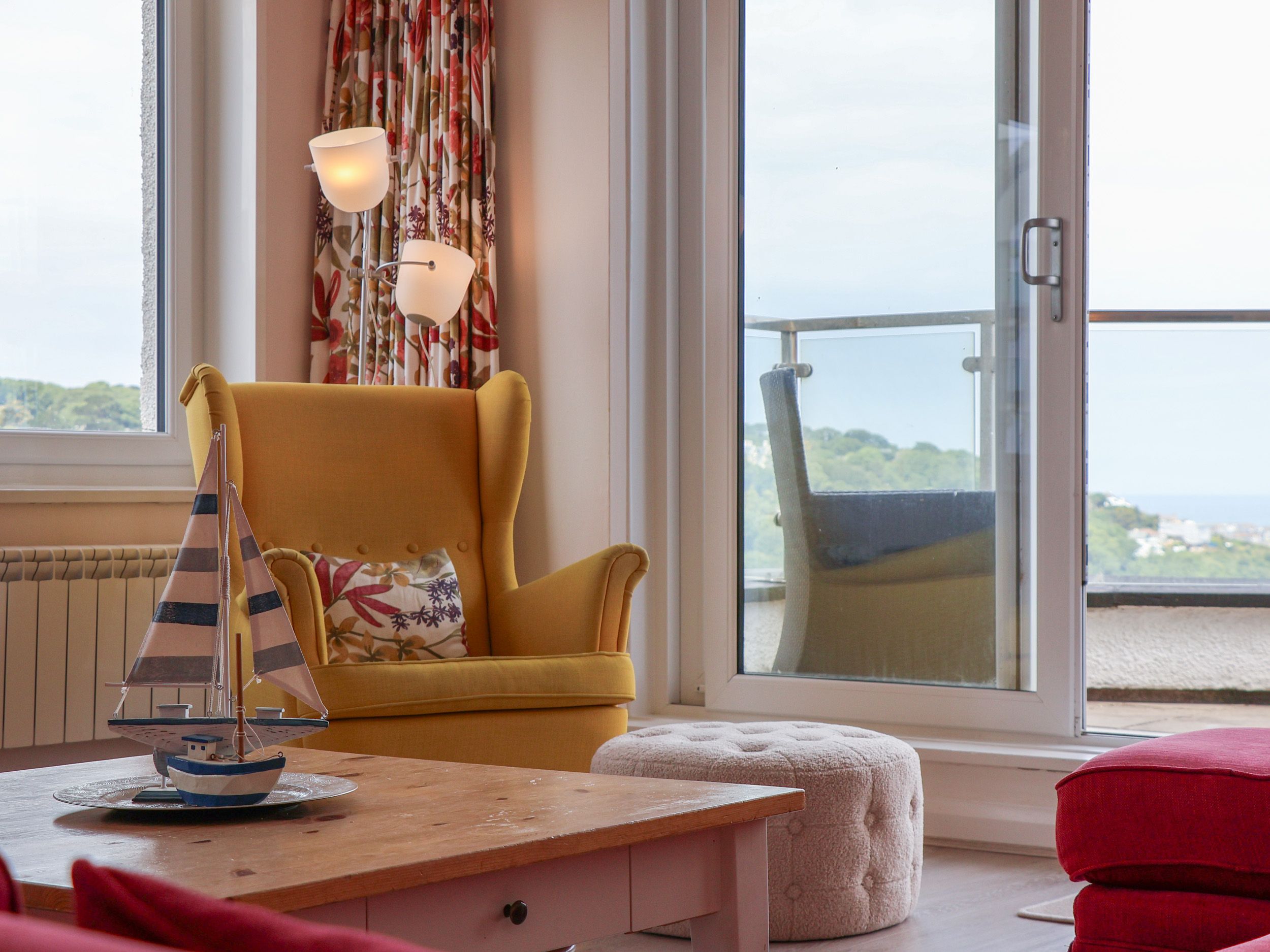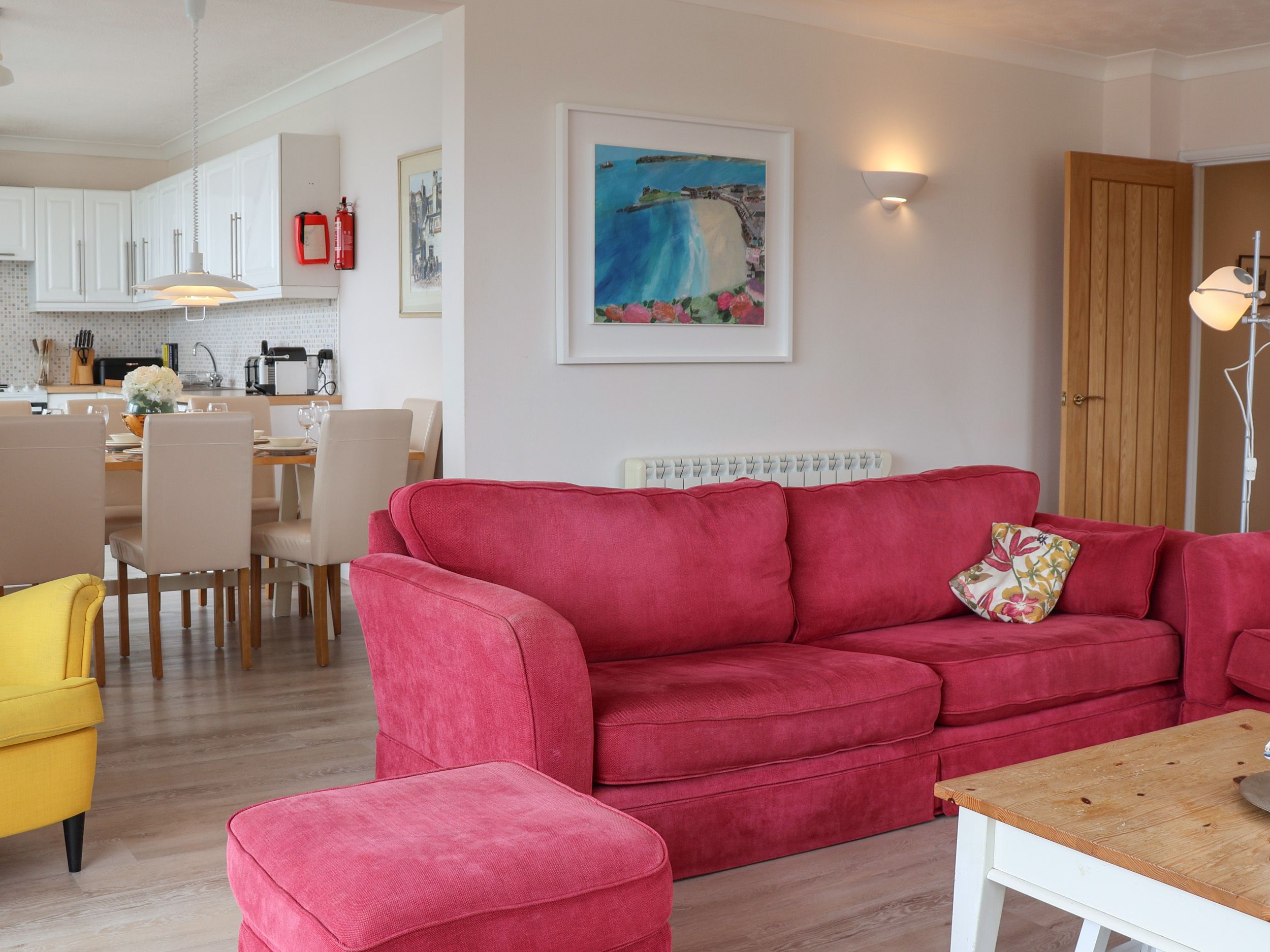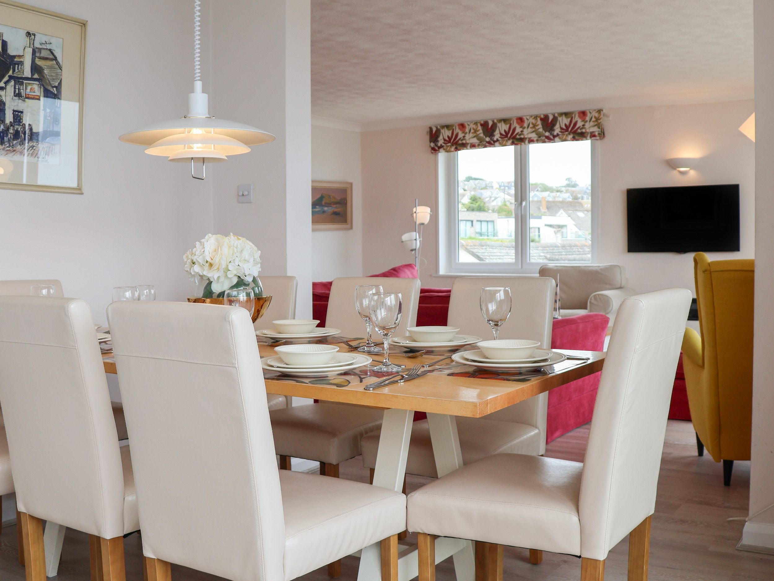 Holiday home The living areas in the third-floor apartment consist of an open-plan living space with a kitchen containing an oven/grill, hob, microwave, fridge/freezer, coffee machine, washer/dryer and dishwasher, a dining area with seating for eight people, and a sitting area with a TV with BT Sport and Netflix, TV, Bose Soundtouch 10 wireless speaker, and a PS4 with a selection of games. The bedrooms include a king-size with en-suite bathroom, a king-size, a twin with TV, Nintendo Wii and games, and a twin, along with a bathroom and shower room. Two cots and highchairs are provided, however guests are asked to bring their own cot bedding. Outside, there is a seaward facing balcony with furniture, a south facing decked terrace with furniture, a seaward facing communal gardens with furniture, and off-road parking for one car. Within 0.3 miles, you will find a shop, a pub and a beach. Please note that this is a pet-free and non-smoking property. WiFi, fuel, power, bed linen and towels are all included in the price. Blue Vista is a family-friendly apartment in Cornwall for the perfect coastal retreat. Note: Check-in at 4.00pm, check-out by 10.00am.