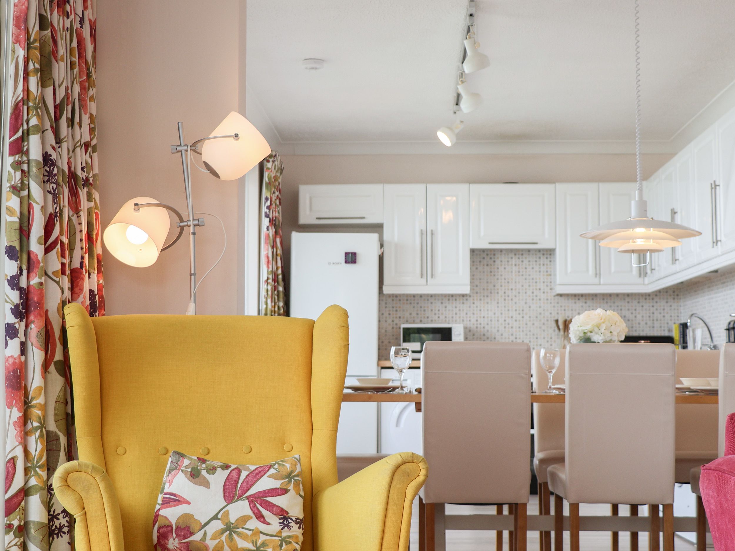 Amenities Electric heating. Oven/grill, hob, microwave, fridge/freezer, washer/dryer, dishwasher, coffee machine. TV with BT Sport and Netflix, TV, Bose Soundtouch 10 wireless speaker, Playstation 4 with a selection of games, Nintendo Wii with a selection of games, USB wall plates, WiFi. Fuel and power inc. in rent. Bed linen and towels inc. in rent. 2 x cot and highchair available. Off-road sheltered parking for 1 car. Seaward facing balcony with furniture. South facing decked terrace with furniture. Seaward facing communal gardens with furniture. Sorry, no pets and no smoking. Shop, pub and beach 0.3 miles. Note: Check-in at 4.00pm, check-out by 10.00am. Note: Guests are to bring their own bedding for the cots.