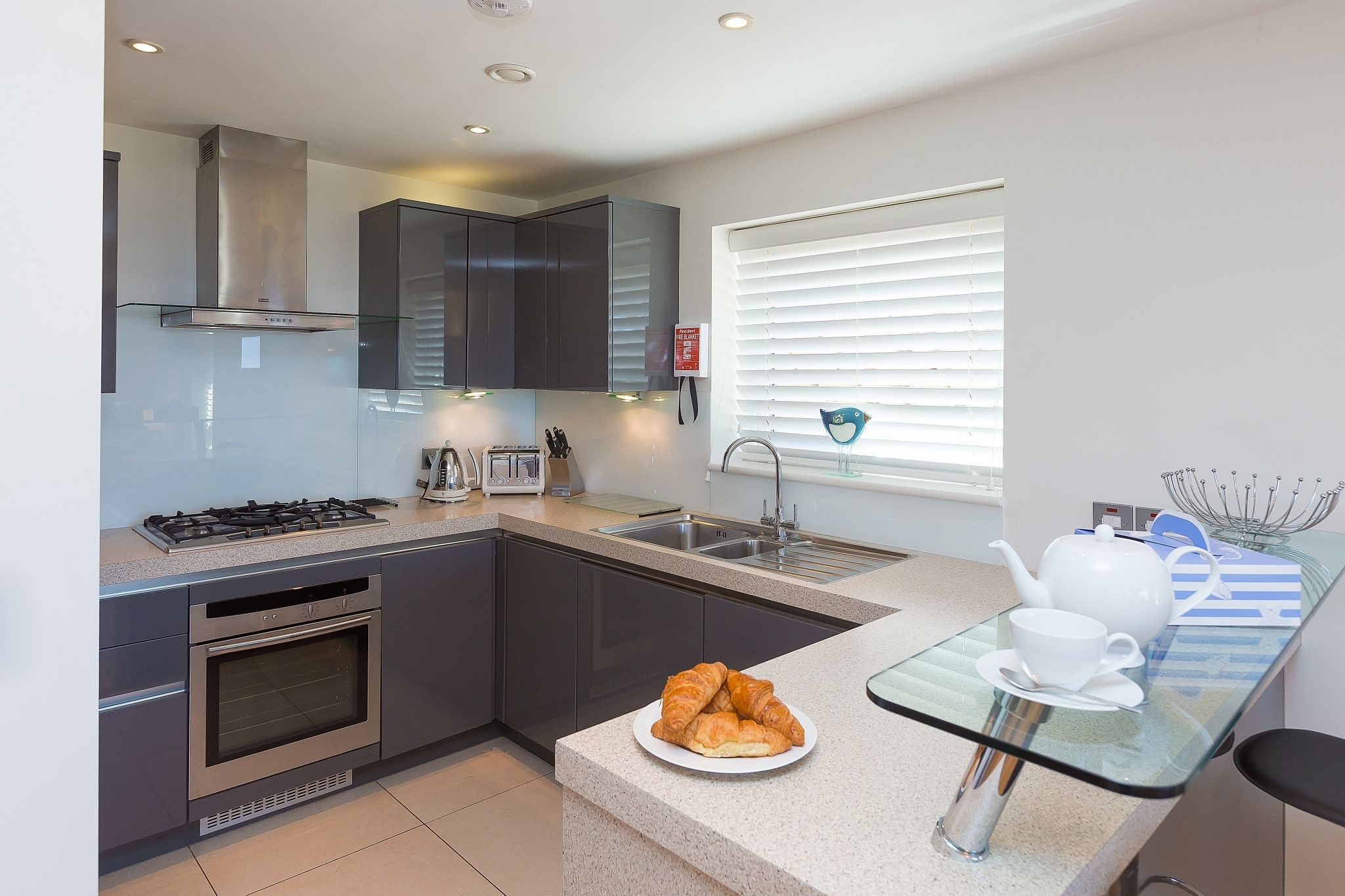 Ground-floor apartment. Two bedrooms: 1 x king -size with Smart TV with Sky Q and en-suite walk-in shower, basin and WC, 1 x twin (zip/link, can be super-king-size on request) with Smart TV and DVD player. Bathroom with bath, shower over, basin, heated towel rail, and WC. Open-plan living space with kitchen, dining area and sitting area
