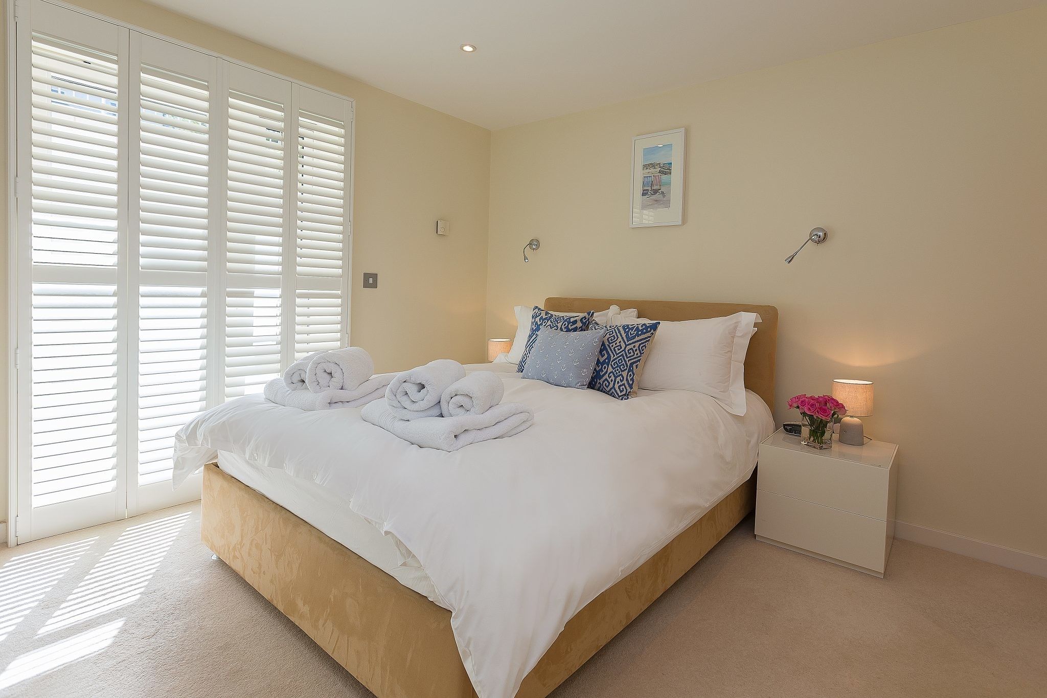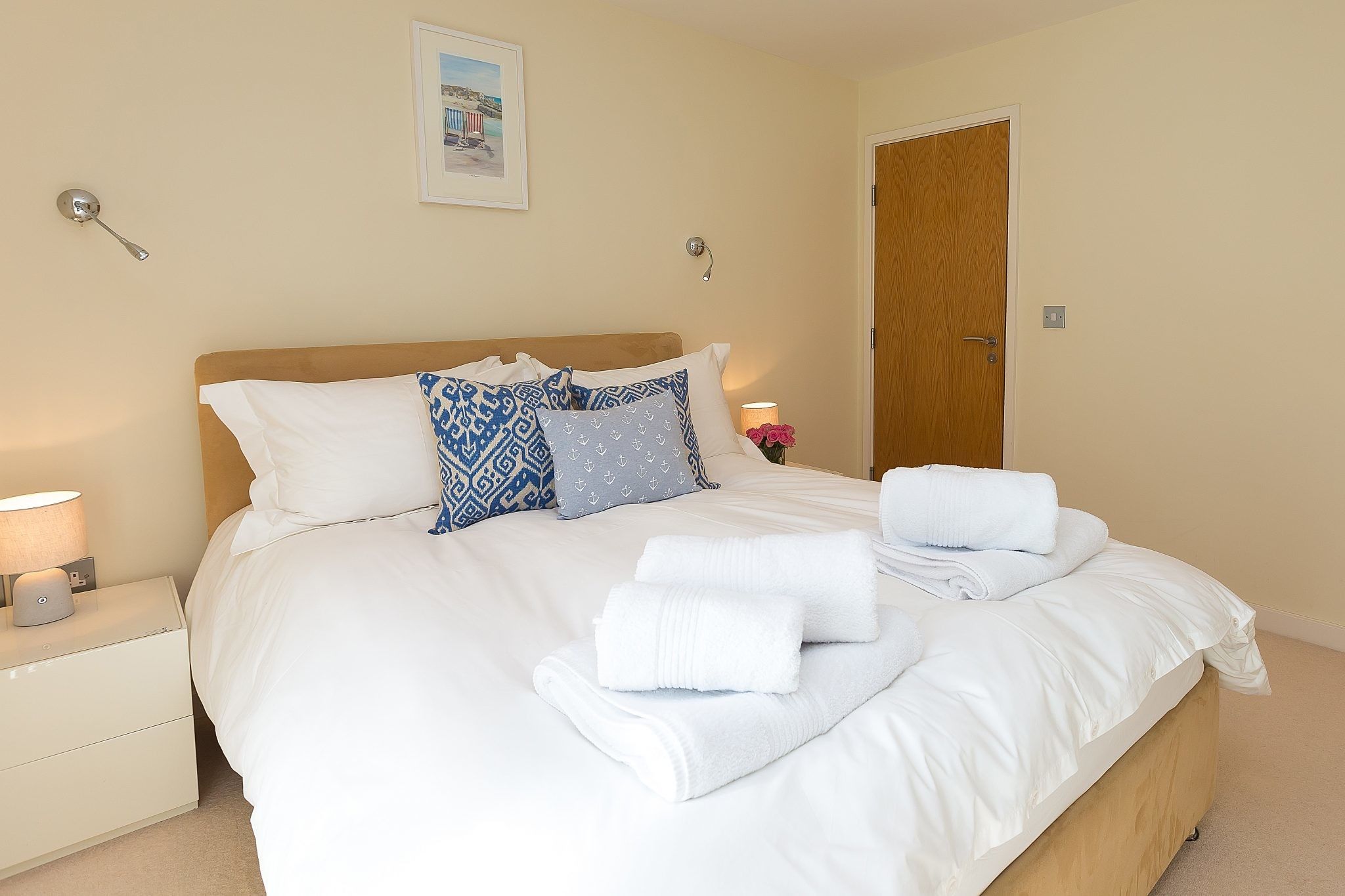 The living areas in the property consist of an open-plan living space with a kitchen equipped with an oven/grill, 5 ring gas hob with wok ring, microwave, fridge, freezer, Nespresso Vertuo machine, washer/dryer and dishwasher, a dining area with seating for four people, and a sitting area with Smart TV with Sky Q package and Netflix including Sport and Movies, Blu Ray DVD player with selection of DVDs, BOSE Sound Touch system and a PS3 with selection of games. The bedrooms include a king-size with a Smart TV with Sky Q and en-suite shower room, and a twin (zip/link, can be super-king-size on request) with a Smart TV and DVD player. A cot and highchair are provided, however guests are asked to bring their own cot bedding. Outside, there is a seaward facing patio with furniture, a rear, enclosed seawrd facing terrace with furniture, a shared, seaward facing garden with furniture and barbecue, and off-road gated parking for one car. Within 0.3 miles, you will find a shop, a pub and a beach. Please note that this is a pet-free and non-smoking property. WiFi, fuel, power, bed linen and towels are all included in the price. Carbis Sands is a family-friendly apartment in Cornwall for a coastal retreat. Note: Check-in at 4.00pm, check-out by 10.00am.