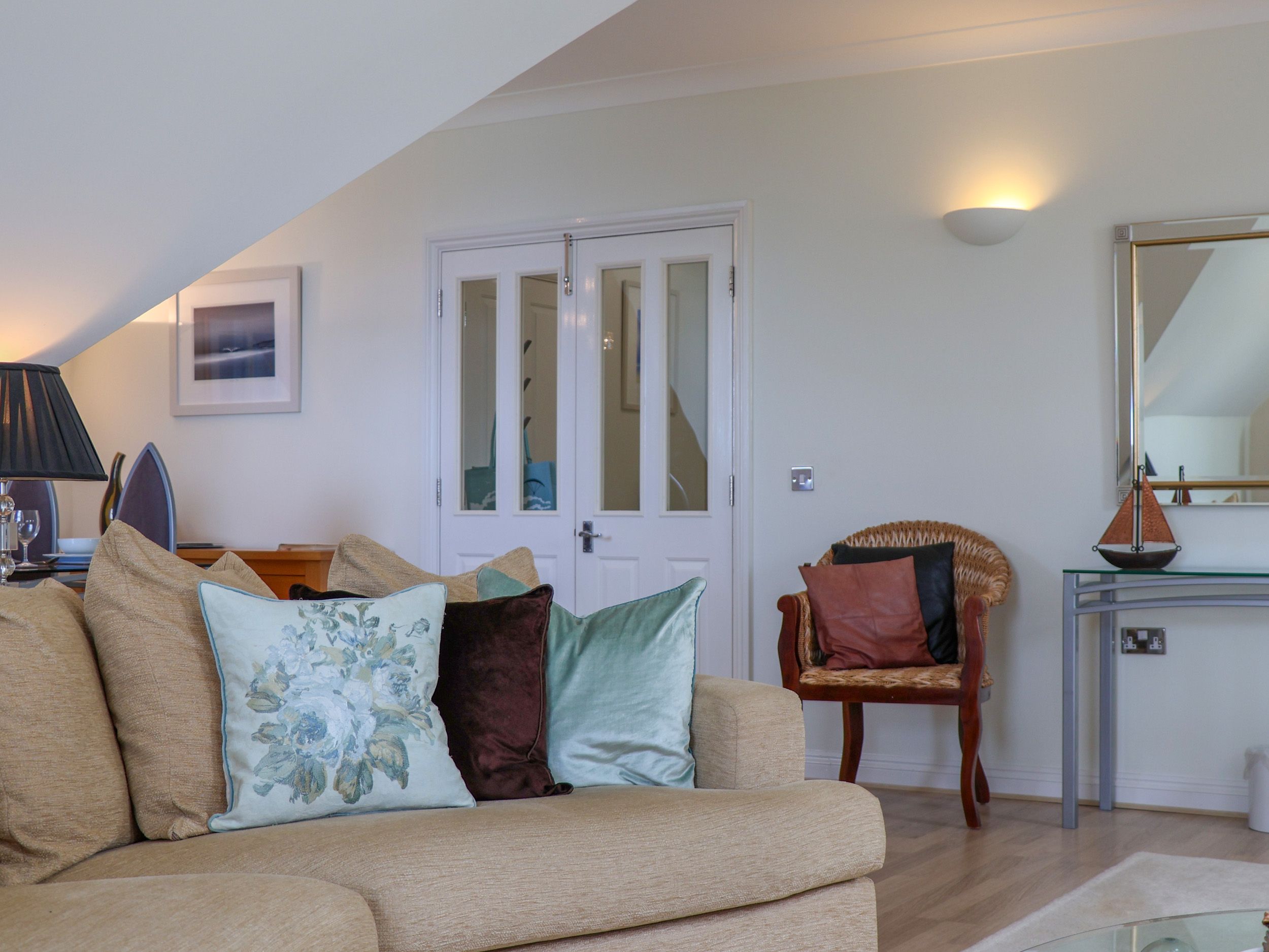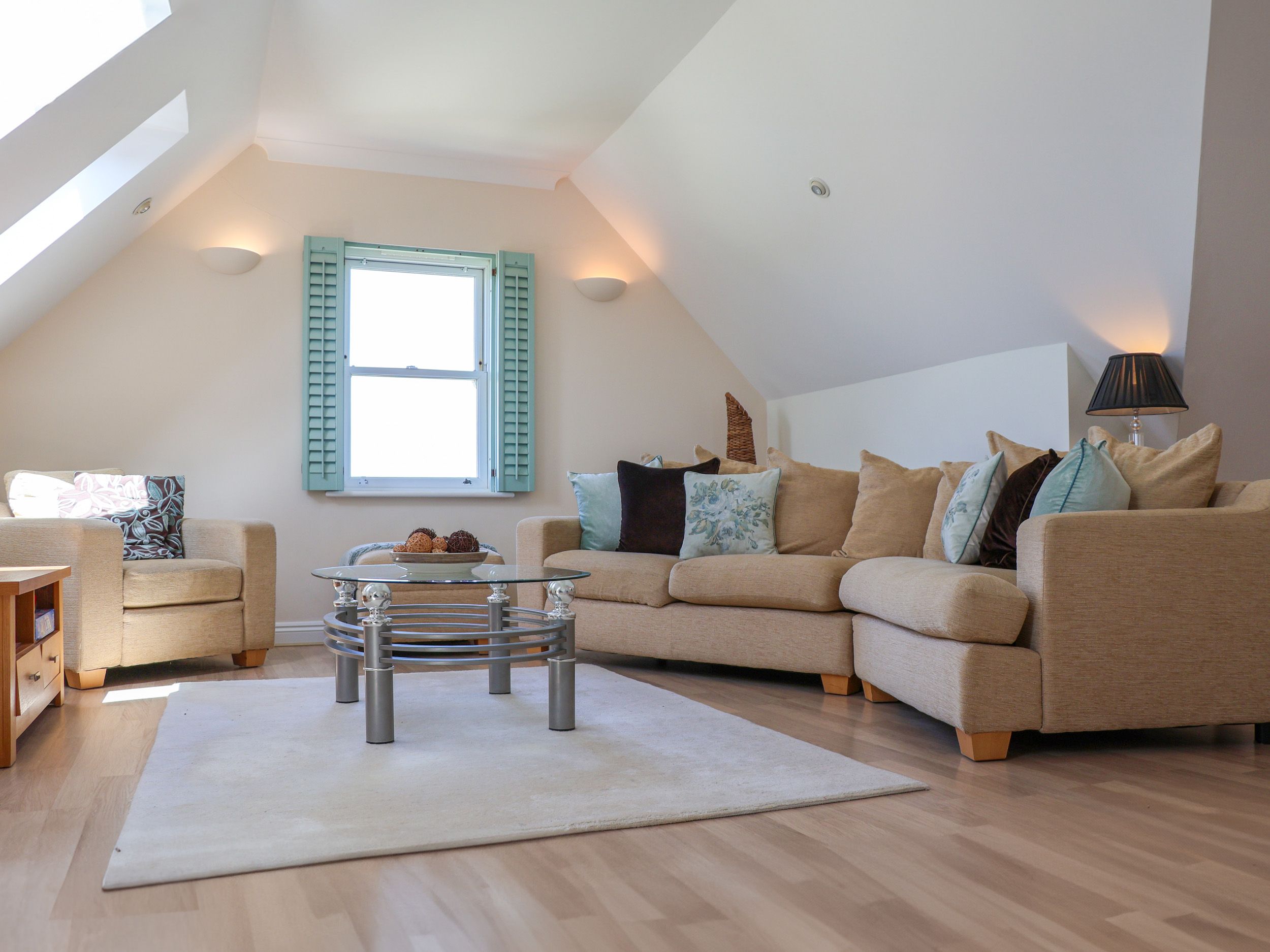 Accomodation Details Top-floor apartment. Two bedrooms: 1 x king size with Smart TV and en-suite bath, handheld shower, walk-in shower, basin, heated towel rail and WC, 1 x twin with Smart TV. Bathroom with walk-in shower, basin and WC. Kitchen/diner. Living/dining room