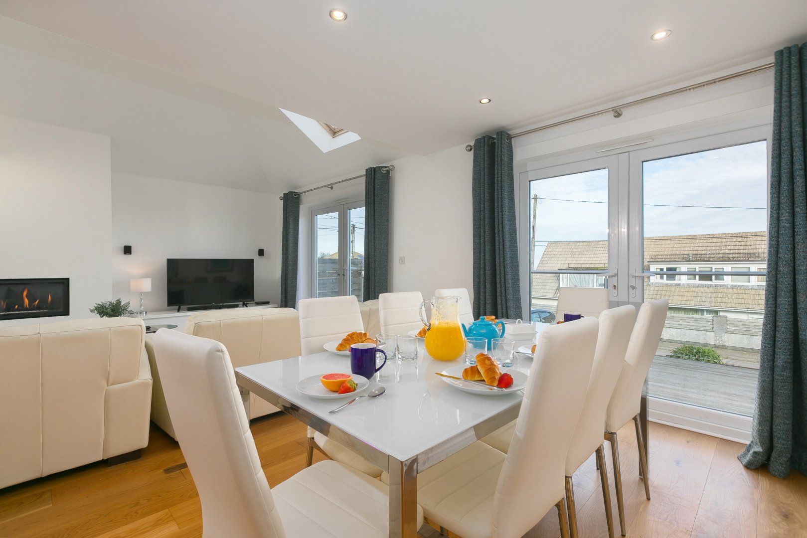 Holiday home The open-plan living areas include a kitchen with a double electric oven, gas hob, microwave, fridge/freezer, dishwasher, coffee machine and a dining table with seating for eight and a gas fire, TV with Sound Bar and Sky TV. The bedrooms consist of a super-king-size with en-suite bathroom, a king-size with en-suite shower room, a double with en-suite shower and a twin (zip/link, can be twins on request), served by a bathroom. To the outside is an elevated decking, balcony and enclosed rear garden with furniture, along with off-road parking for five cars. Fuel, power, bed linen, towels, travel cot, highchair and WiFi are included in the price. Two pets are welcome however smoking is not permitted. Within 0.7 miles there is a shop and within 0.4 miles there is a pub and beach. Chy Lowen is a superb getaway to Carbis Bay, whatever time of year. Please note, there is a good housekeeping bond of £100. Check-in from 4pm, check-out by 10am.