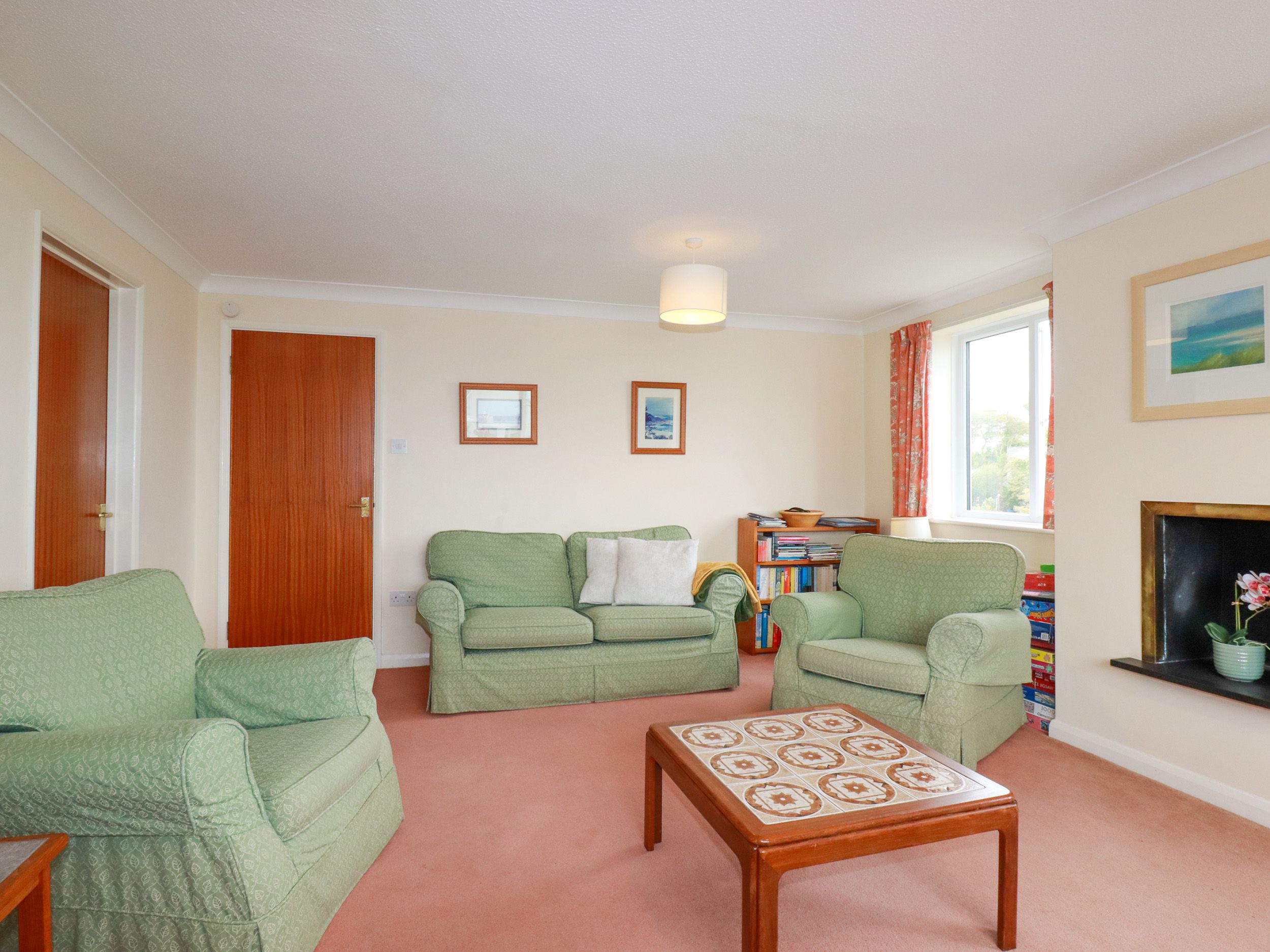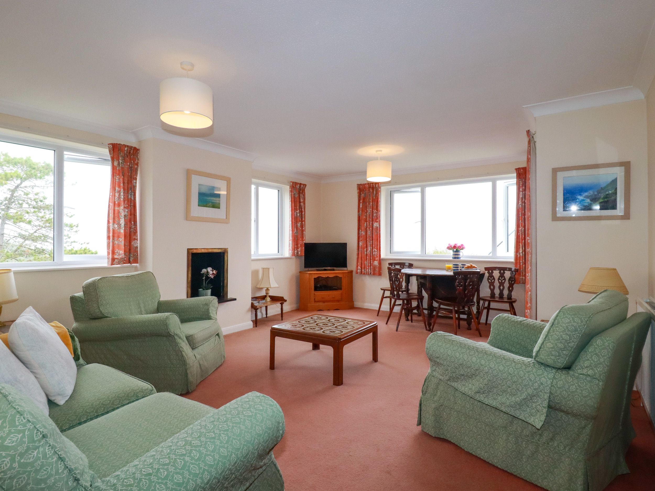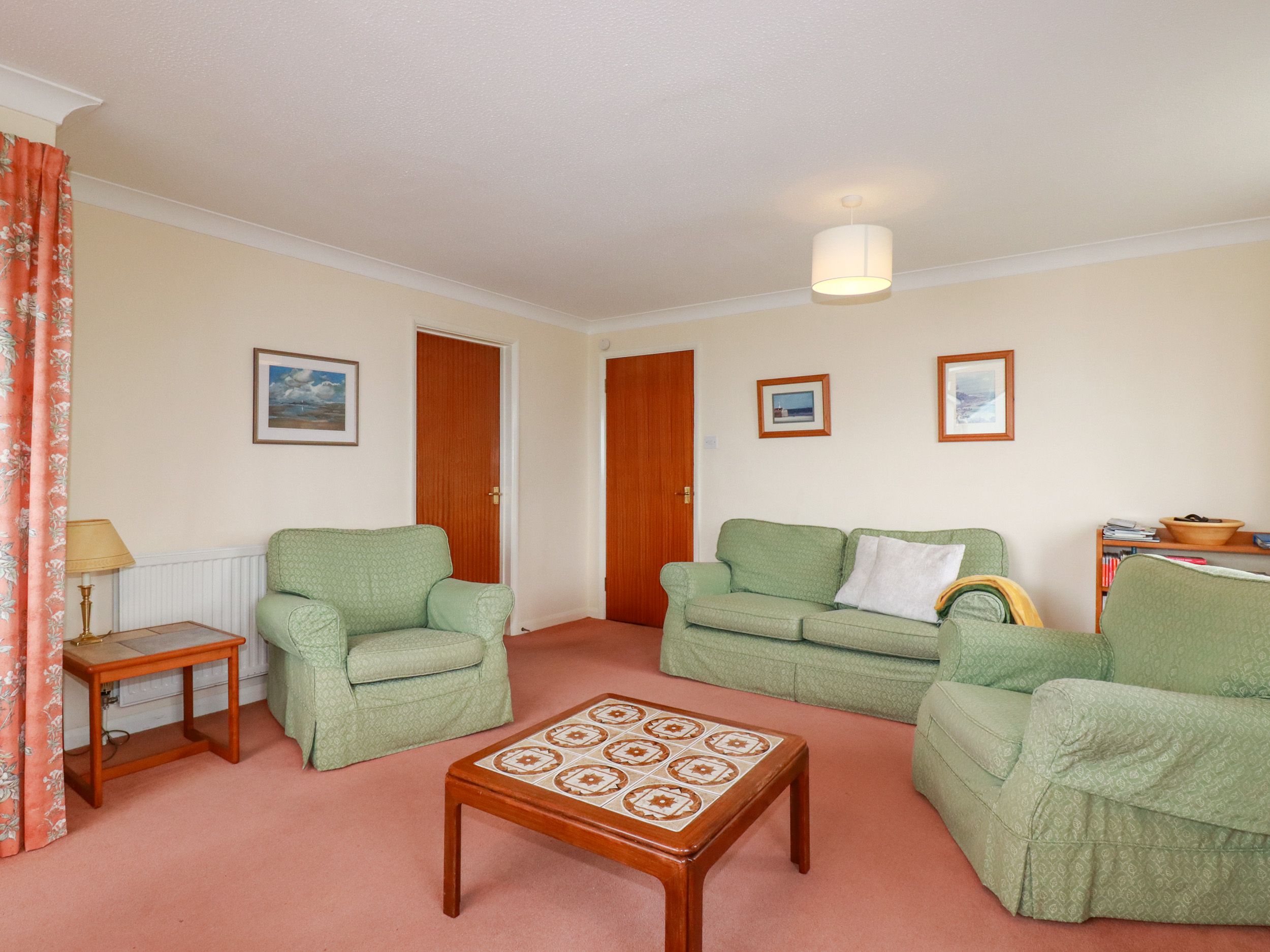 Accomodation Details First-floor apartment. Two bedrooms: 1 x double with en-suite with walk-in shower, basin, and WC, 1 x twin. Bathroom with bath, basin and WC. Kitchen. Living/dining room