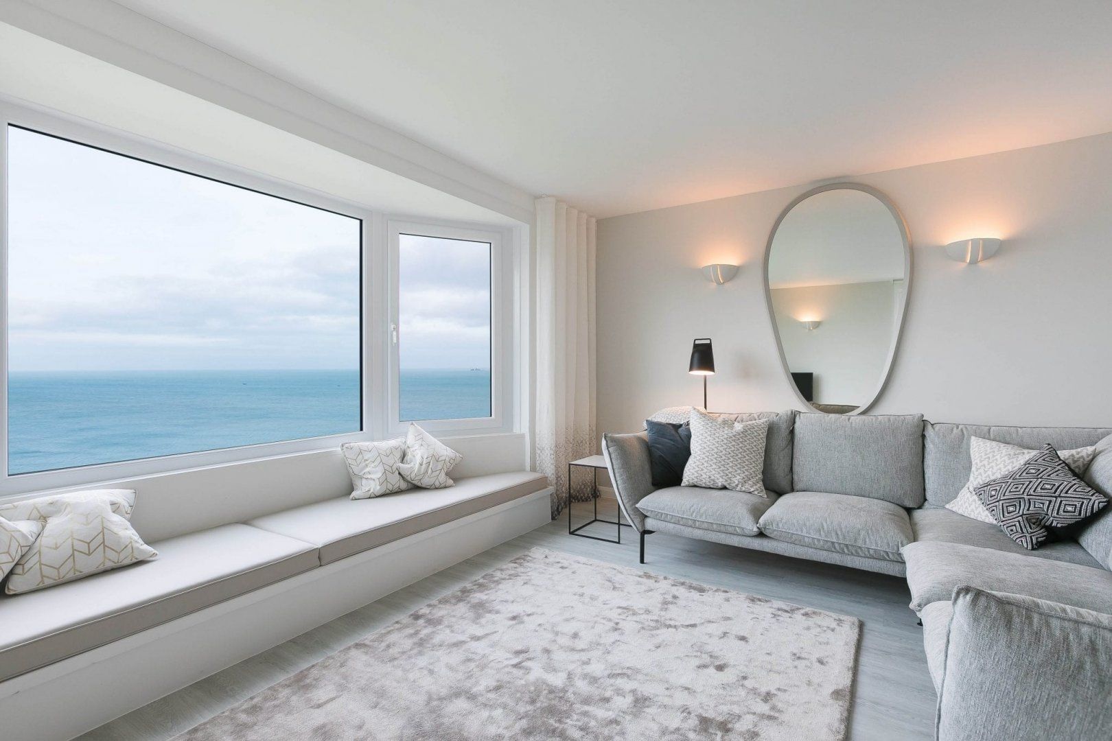 Holiday home The living areas in the first-floor apartment consist of an open-plan living space with a kitchen containing an electric oven/grill, four ring electric hob, microwave, fridge/freezer, coffee machine, Bosch washing machine, Miele dryer and dishwasher, a dining area with seating for four people, and a sitting area with an Ultra HD 4K Smart TV with built-in streaming services on the Samsung Smart Hub including Netflix. The bedrooms consist of a king-size with an en-suite shower room and a twin, along with a bathroom. A cot and highchair are provided, however guests are asked to bring their own cot bedding. Outside, there is a seaward facing communal garden and sheltered off-road parking for one car. Within 0.3 miles, you will find a shop and beach, and within 1.1 miles, a pub. Please note that this is a pet-free and non-smoking property. WiFi, fuel, power, bed linen and towels are all included in the price. Golden Heights offers a family-friendly holiday home in Cornwall for four guests to enjoy a seaside escape. Note: Check-in at 4.00pm, check-out by 9.00am.