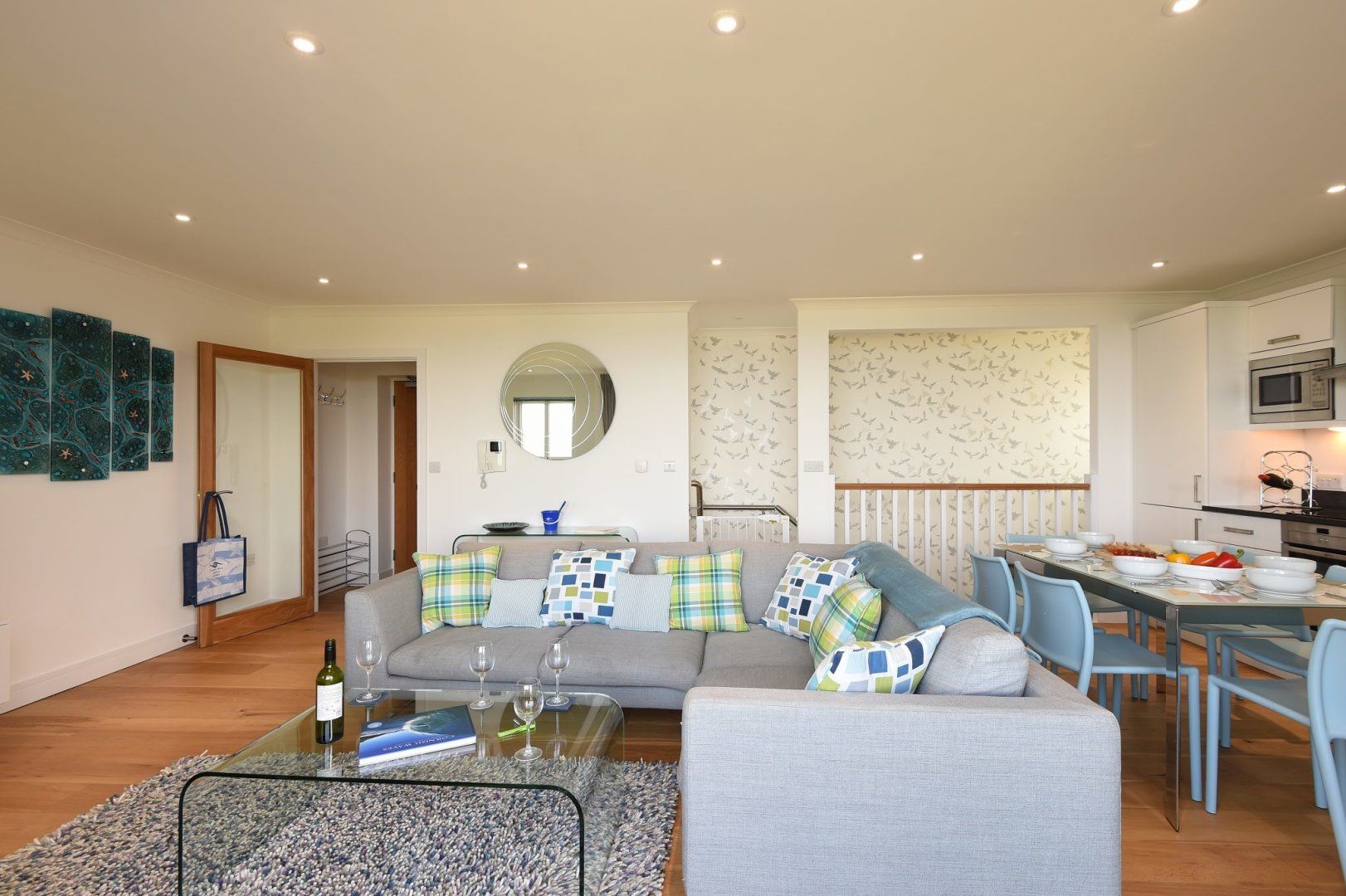 Accomodation Details Duplex apartment. Two bedrooms: 1 x ground-floor king-size with en-suite shower, basin and WC, 1 x ground-floor twin (zip/link, can be super-king-size on request). Ground-floor family bathroom with bath, shower over, basin, heated towel rail and WC. First-floor open-plan living space with kitchen, dining and sitting area. Utility