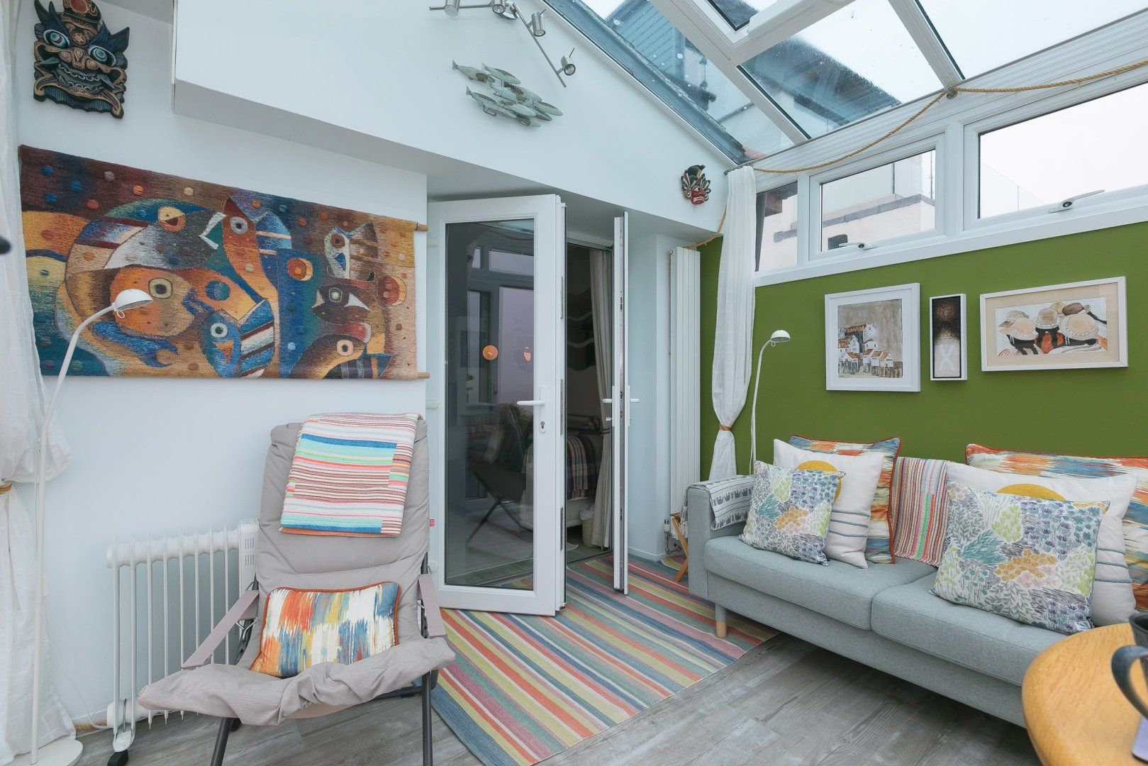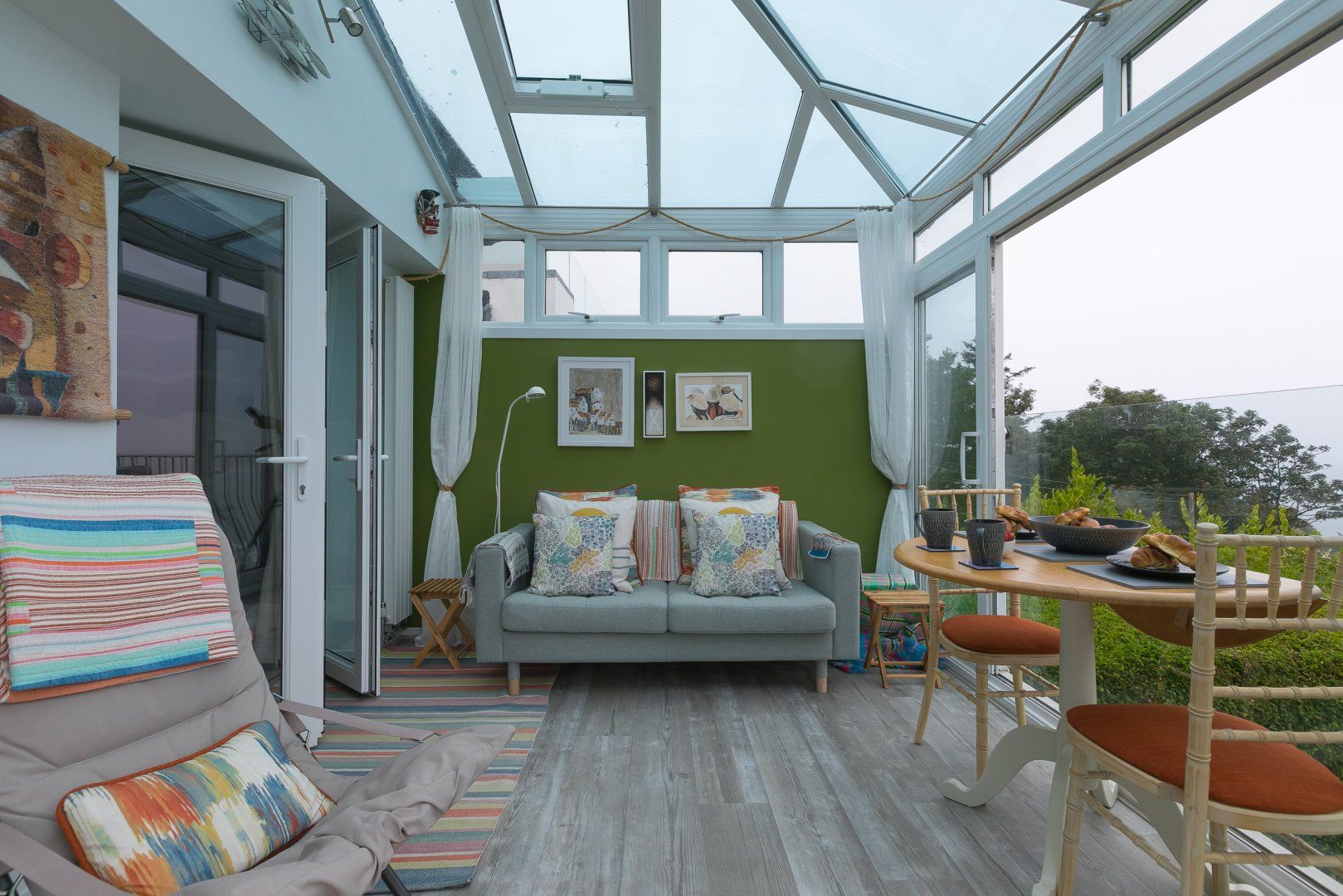 Holiday home The living areas in the property consist of a kitchen/diner hosting an oven, gas hob, microwave, fridge/freezer, washing machine, dishwasher, coffee maker, seating for two people, a sitting room with an internet-enabled flatscreen TV with Freeview, DVD player and a large selection of DVDs and CDs, along with a conservatory. There is a king-size bedroom with study and a bathroom. Outside, there is a private deck with furniture and communal gardens with furniture, as well as off-road parking for one car. Within 0.3 miles, you will find a shop, within 1.1 miles, a pub, and within 0.2 miles, a beach. Please note that this is a pet-free and a non-smoking/vaping property. WiFi, fuel, power, bed linen and towels are all included in the rent. Choose Huers Hide for a fantastic getaway with your partner. Note: Check-in is from 4pm, check-out by 10am. Note: Check-in is from 4pm, check-out by 10am. Note: There are steps from the deck leading down to the garden, please take care. Note: The owners of Huers Hide will undertake a bathroom refurbishment in November 2023 and replace the spa bath through a large walk-in shower