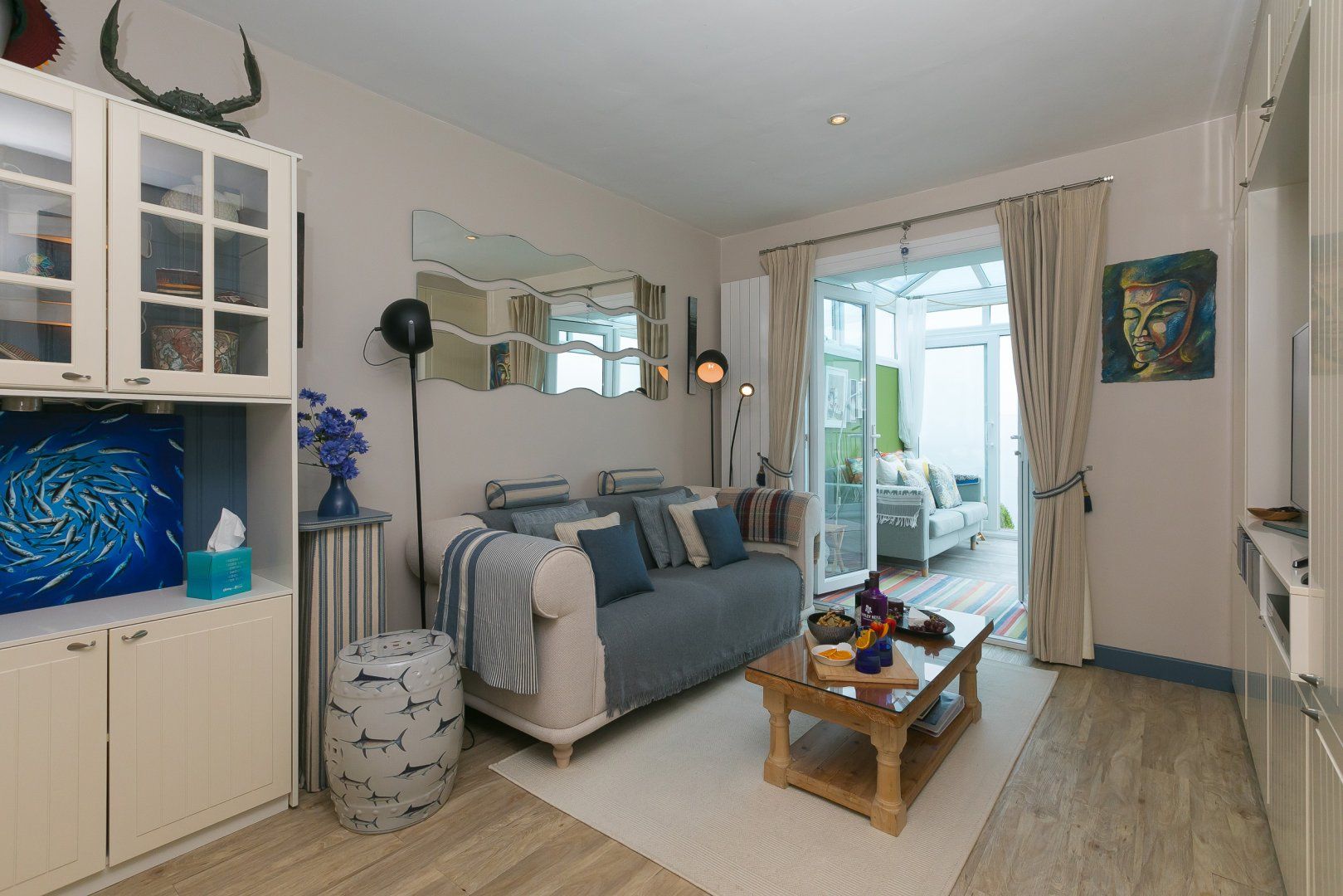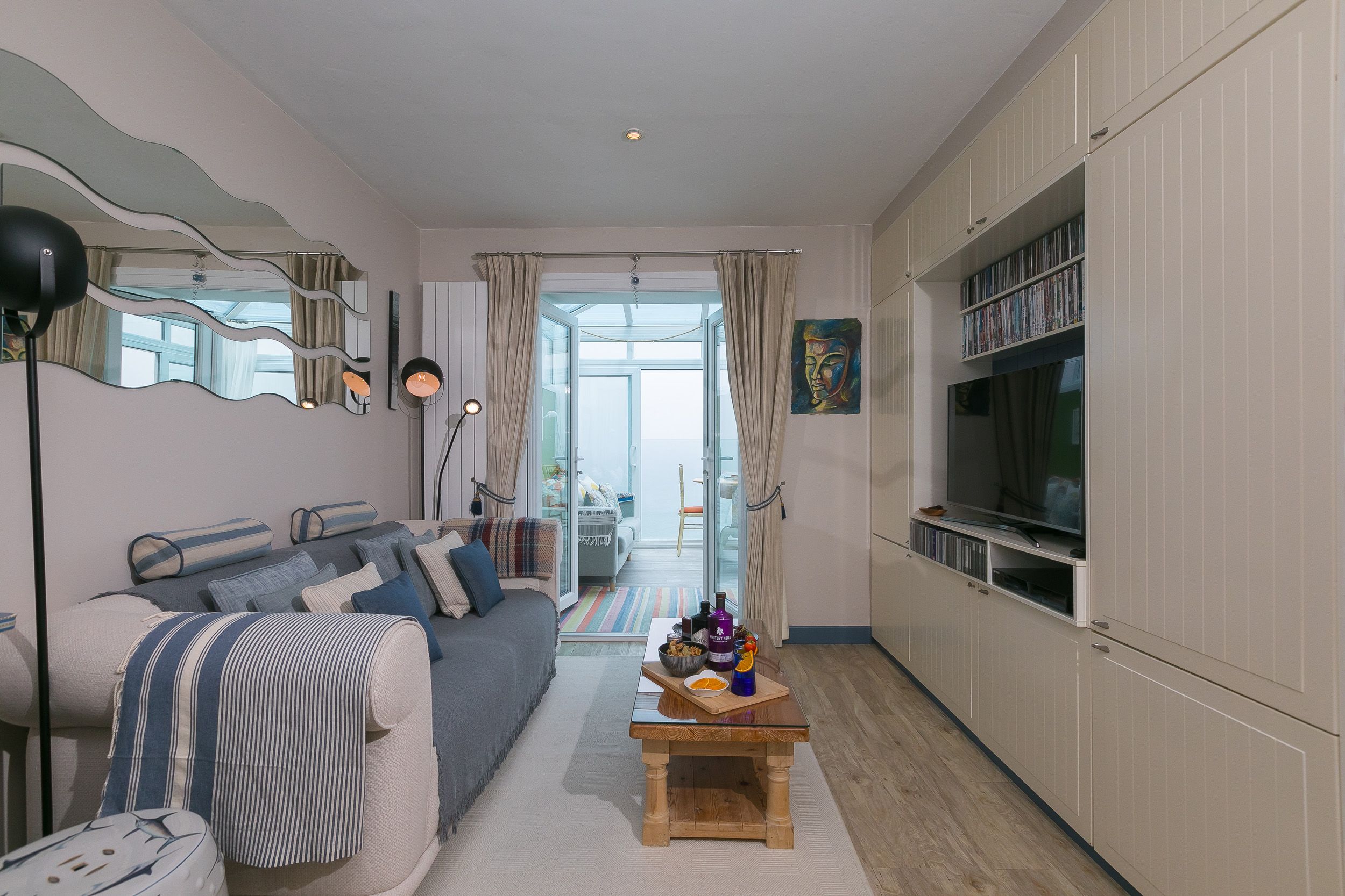 Amenities Gas central heating. Oven, gas hob, microwave, fridge/freezer, washing machine, dishwasher, Tassimo coffee machine. Internet-enabled flatscreen TV with Freeview, DVD, WiFi, telescope, large selection of DVDs and CDs. Fuel and power inc. in rent. Bed linen and towels inc. in rent. Off-road parking for 1 car. Seaward facing deck with sun loungers. Communal garden with furniture. Sorry, no pets and no smoking/vaping. Shop 0.3 miles, pub 1.1 miles, beach 0.2 miles. Note: Check-in is from 4pm, check-out by 10am. Note: There are steps from the deck leading down to the garden, please take care. Note: The owners of Huers Hide will undertake a bathroom refurbishment in November 2023 and replace the spa bath through a large walk-in shower