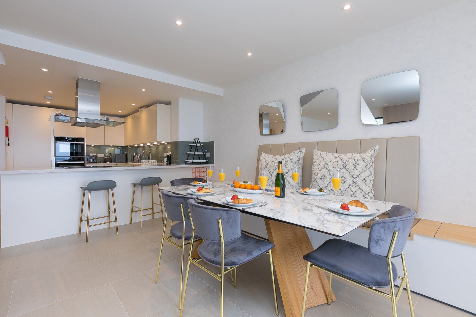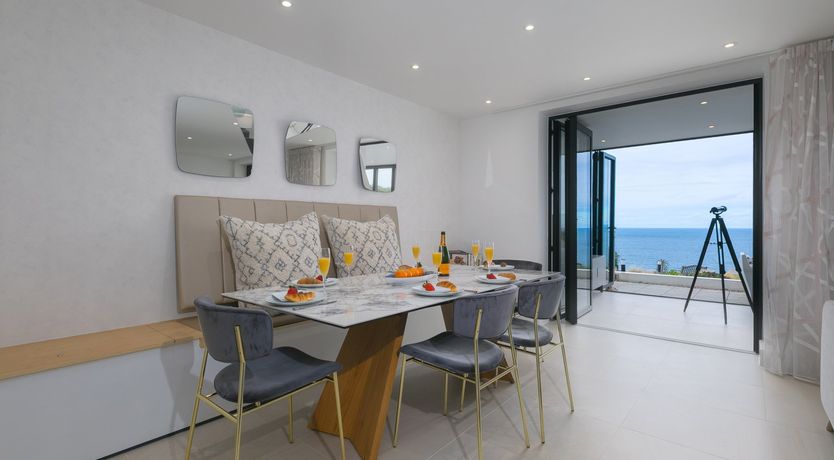 Amenities Underfloor heating. Double electric oven, electric hob, microwave, fridge/freezer, Nespresso coffee machine, washer/dryer, dishwasher, wine cooler. Smart TV, WiFi. Fuel and power inc. in rent. Bed linen and towels inc. in rent. 1x Travel cot and 1x highchair available. We request that guests provide their own cot bedding. Allocated parking for 1 car. Front patio with furniture and fire pit, rear patio with furniture and barbecue, communal gardens with lawn and gravelled area. Sorry, no smoking. Shop 0.4 miles, pub 0.6 miles, beach 0.3 miles. Note: The property is accessed down a flight of stairs or lift. Note: There are steps to the exterior and leading down to the coastal path. Note: Check-in from 4pm, check-out by 10am