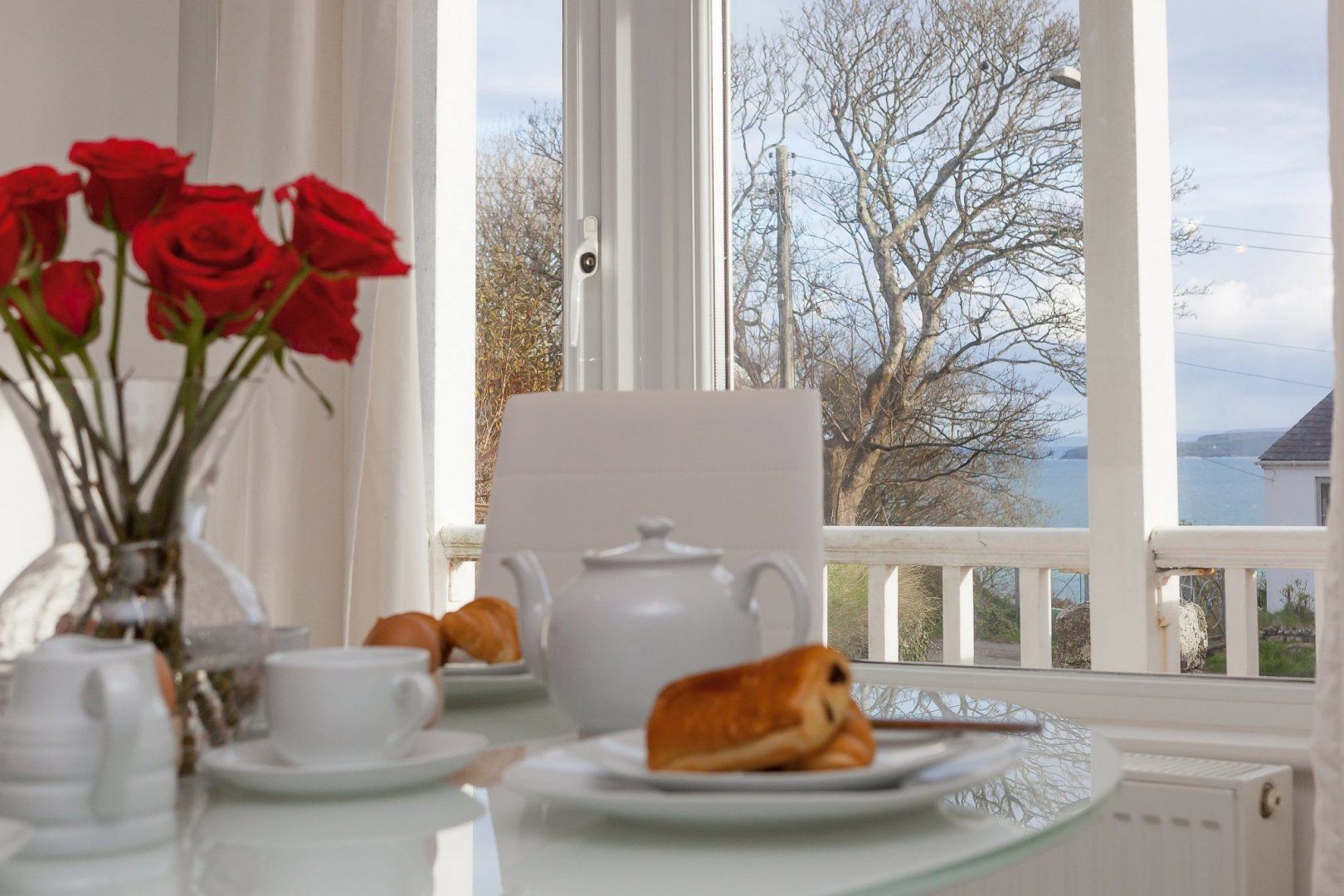 Accomodation Details Ground-floor apartment. Two double bedrooms. Bathroom with bath, shower over, basin, heated towel rail and WC. Open-plan living space with kitchen, dining area and sitting area with a forward facing veranda