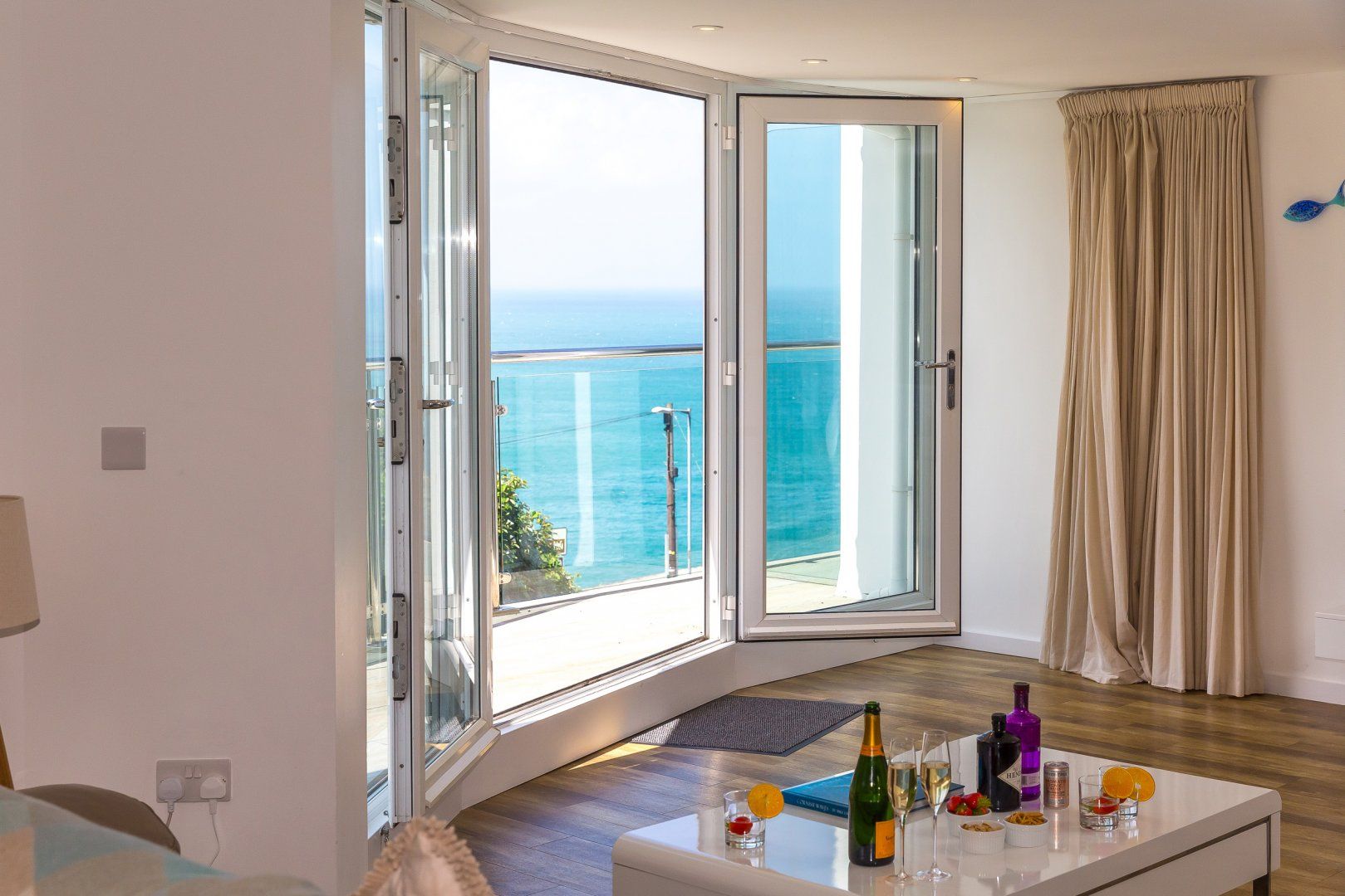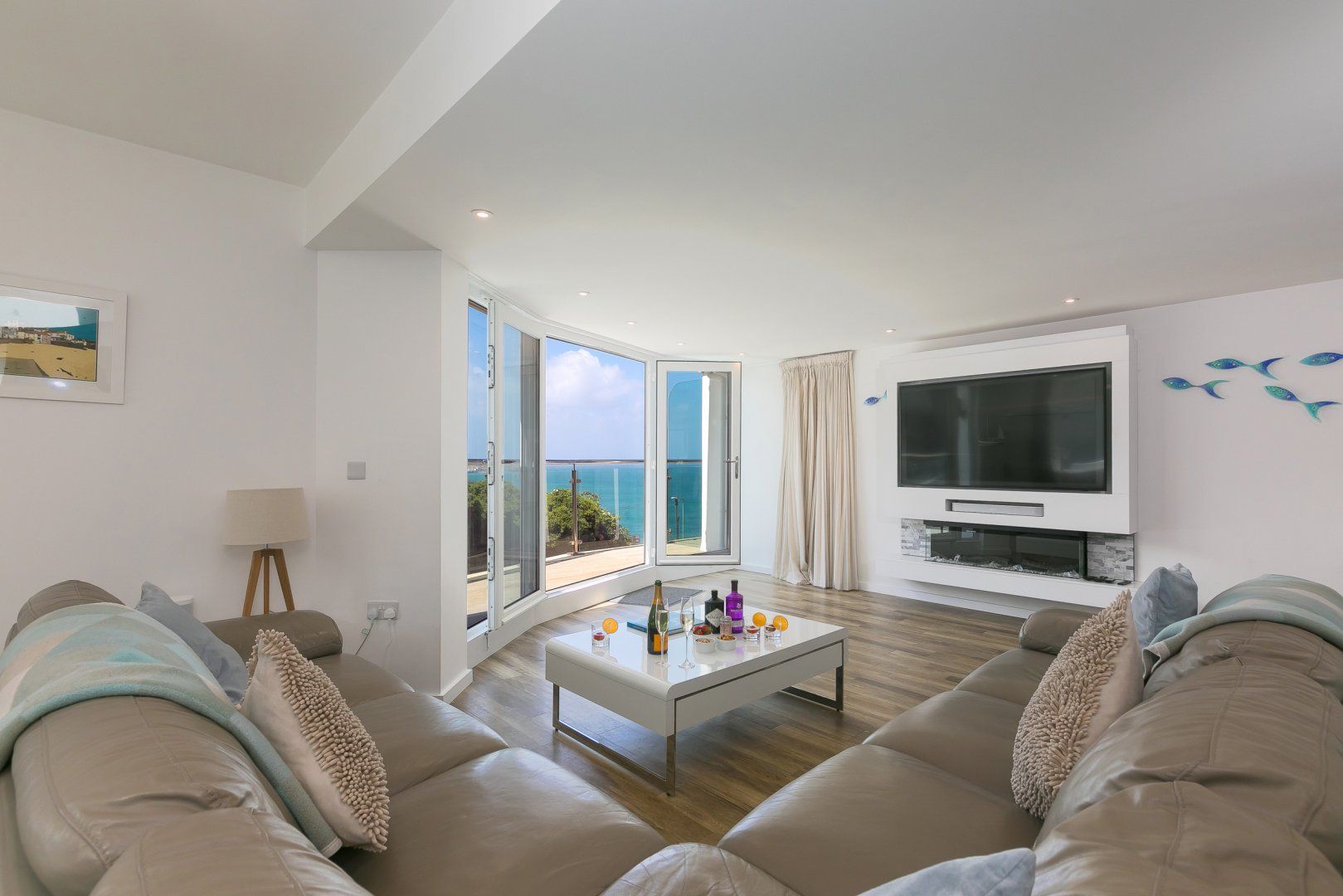 Holiday home The living areas in this reverse level property consist of a first-floor open-plan kitchen, dining area and sitting area with a Siemens cooker, hob, microwave, American fridge/freezer with ice and water dispenser, washer/dryer, dishwasher, 'Bean to Cup' coffee machine, Smart TV with full Sky Q package, including Sky Sports HD, Sky Cinema, Kids and Netflix, and a selection of games. The basement-level bedrooms consist of a king-size with Smart TV and en-suite, a twin (zip/link) with Smart TV, and a single with Freeview TV, DVD player and Playstation, along with a ground-floor bathroom. Outside there is off-road parking for one car, a seaward facing first floor balcony, a seaward facing terrace with hot tub, outside furniture including table and chairs. This is a pet-free and smoke-free property. Two highchairs and travel cots available; we request that guests provide their own cot bedding. WiFi, fuel, power, bed linen and towels are all included in the price. You'll find a shop in 0.4 miles, a pub in 0.8 miles, and the beach in 0.1 miles. Portside is a wonderful base to enjoy the Cornish coastline. Note: Check-in from 4pm, check-out by 10am.