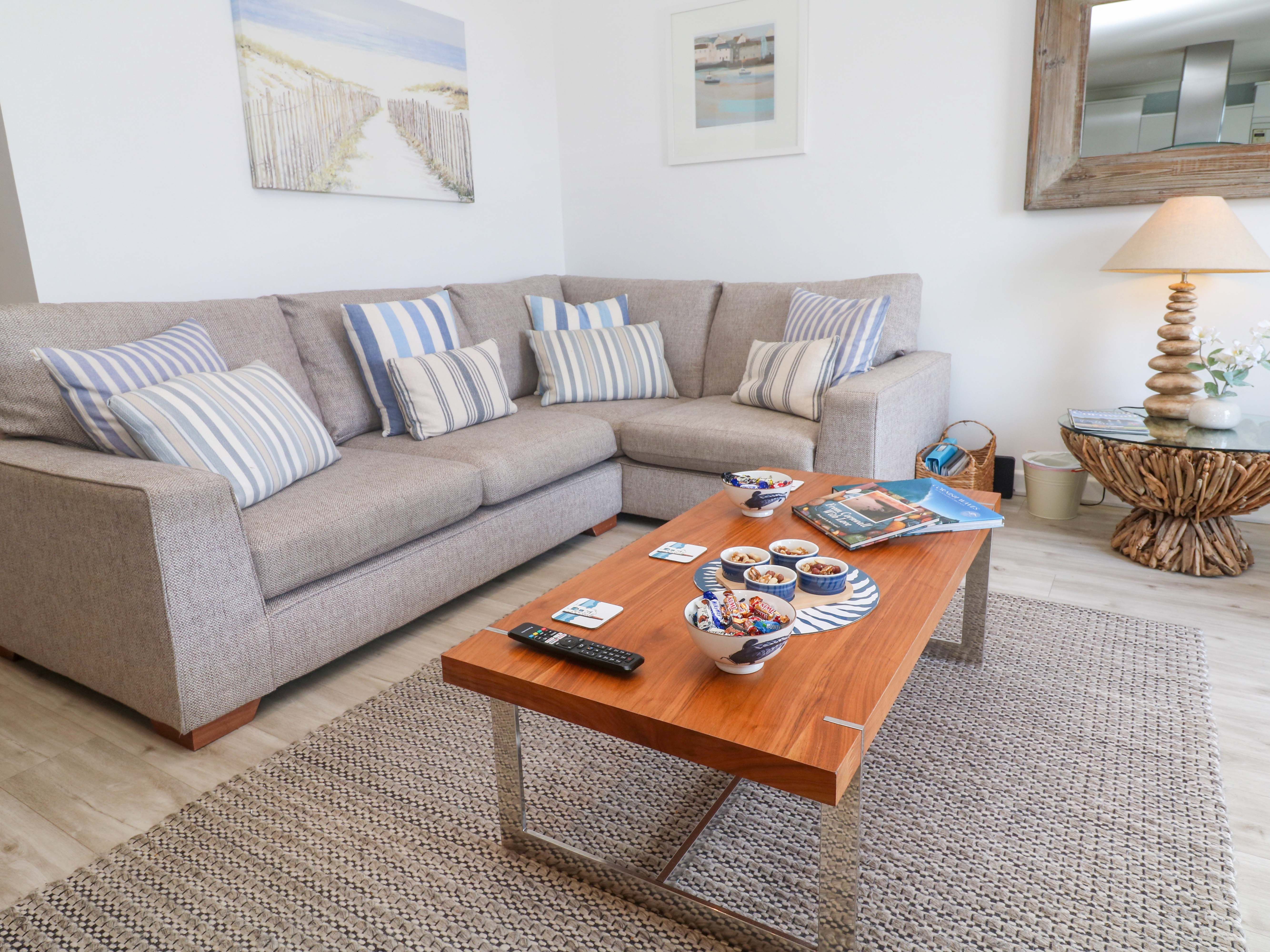 Holiday home The living areas include an open-plan living space with kitchen, dining and sitting area housing a double oven and induction hob, microwave, fridge, freezer, dishwasher, washer/dryer, coffee machine, TV with Full Sky Package until 31st October 2024, Freeview and DVD player. The bedrooms include a king-size with and en-suite bathroom and a twin, serviced by a bathroom. To the outside is a garden with furniture and barbecue. WiFi, fuel, power, bed linen, selection of DVDs and games, travel cot and highchair are included in the price. This property does not accept pets or smoking. Within 0.2 miles there is a shop, 0.1 miles a pub and 0.4 miles, a beach. Sea Breeze is a special retreat, whatever time of year.