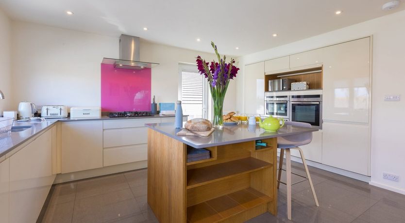 Holiday home The living areas in this holiday home consist of an open-plan living space with kitchen equipped with double oven, hob, microwave, fridge, freezer, washer/dryer and dishwasher, a dining area and a sitting area with balcony and Smart TV. The bedrooms consist of a super-king-size, a king-size with en-suite shower room and a double serviced by bathroom and cloakroom. Outside there is off-road parking, balcony and enclosed courtyard. Shops, pubs and beach are all within a short walk. One well-behaved dog welcome, but sorry, no smoking. WiFi, fuel, power, bed linen and towels are all included in the price. Enjoy a seaside getaway at Secret Beach.